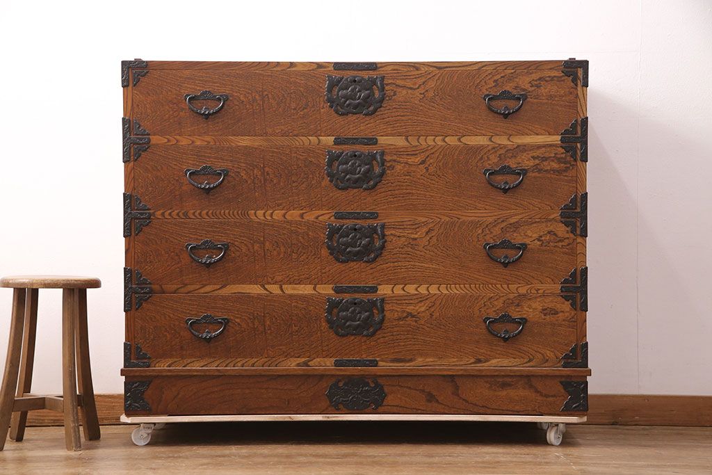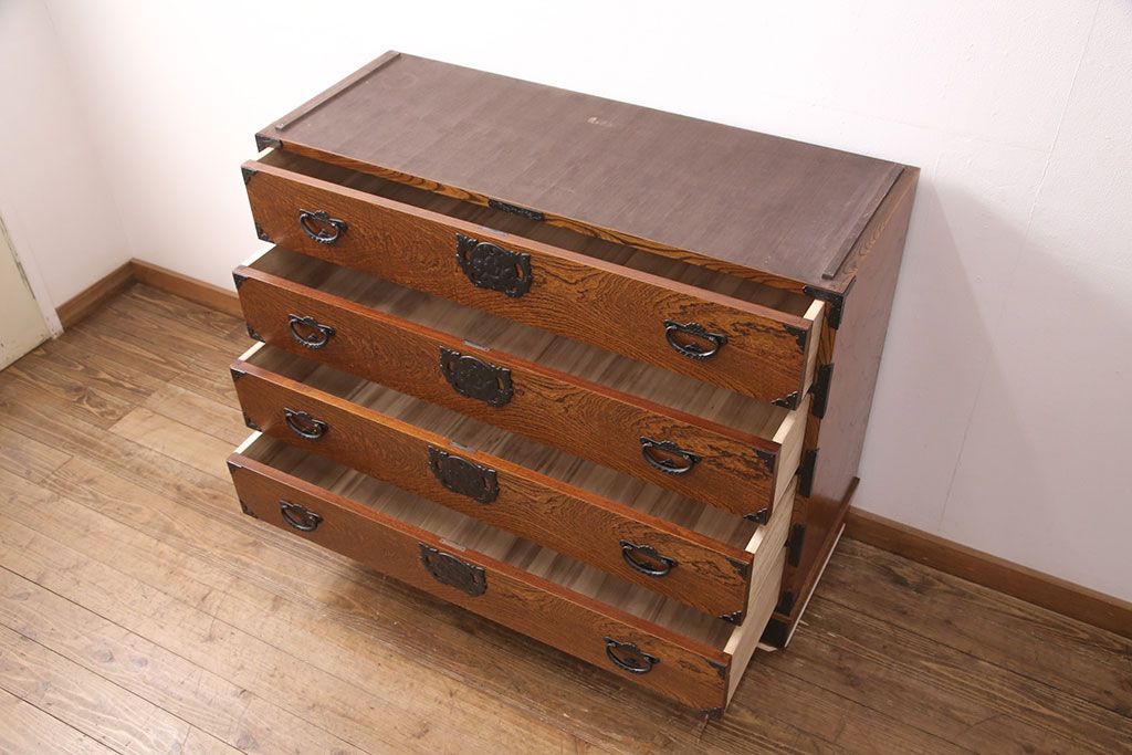 和箪笥> 衣装箪笥 > 中古 岩谷堂箪笥 天板リメイク 趣きのある和を感じさせる渋い佇まいのチェスト(衣装箪笥、収納箪笥、引き出し、和タンス、サイドボード)(R-051377)