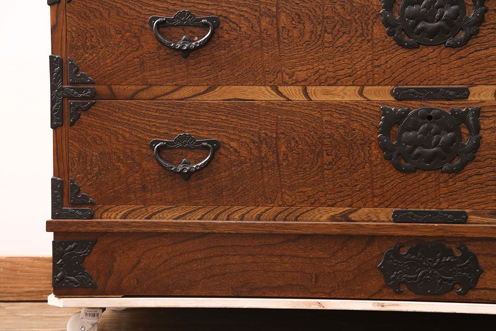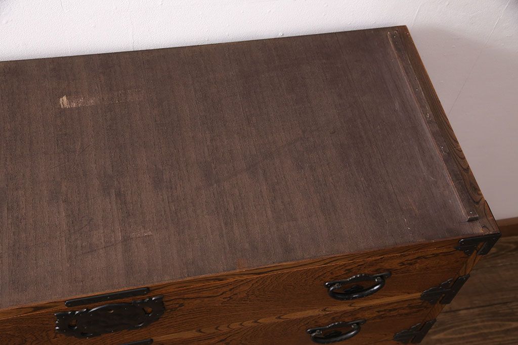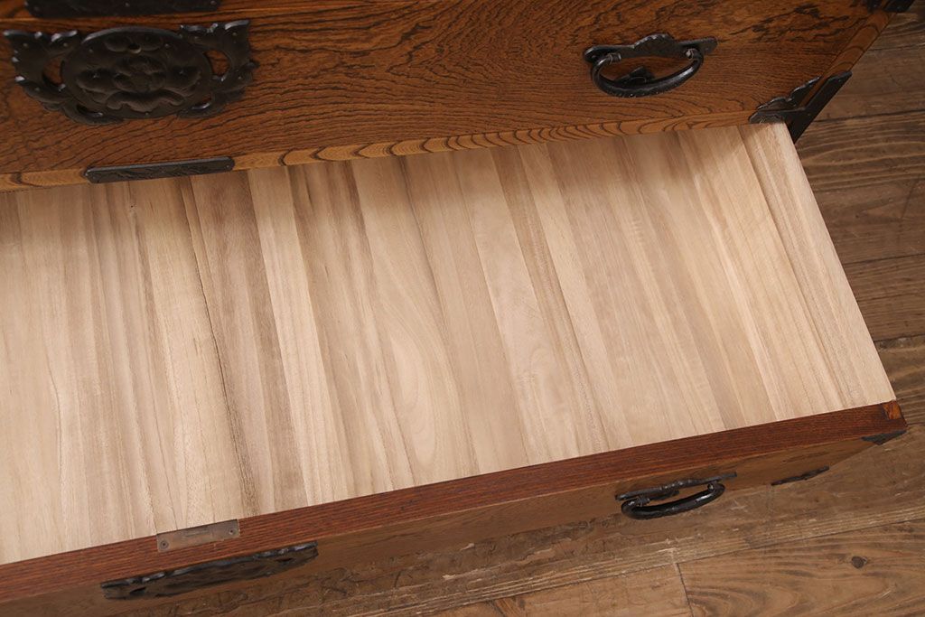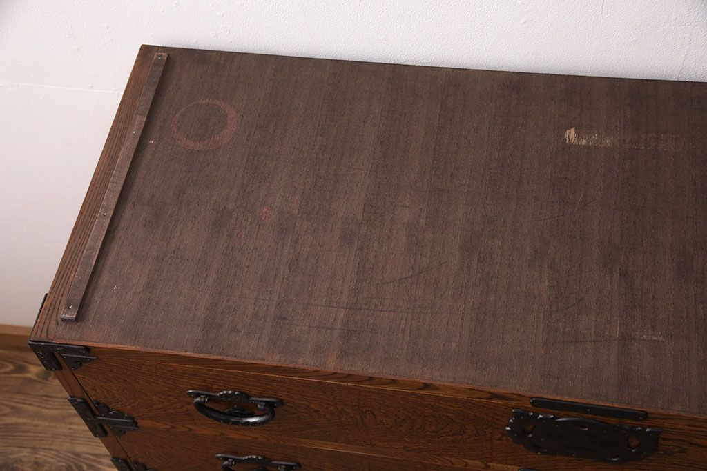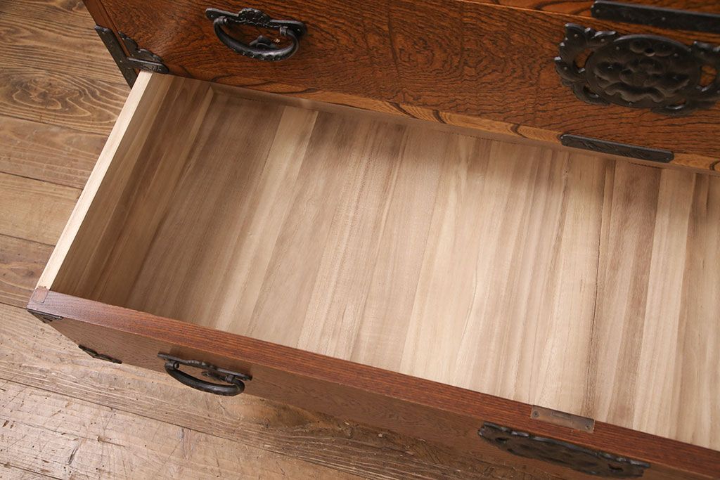 和箪笥 > 中古 岩谷堂箪笥 天板リメイク 趣きのある和を感じさせる渋い佇まいのチェスト(衣装箪笥、収納箪笥、引き出し、和タンス、サイドボード)(R-051377)