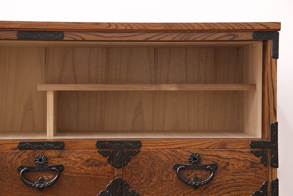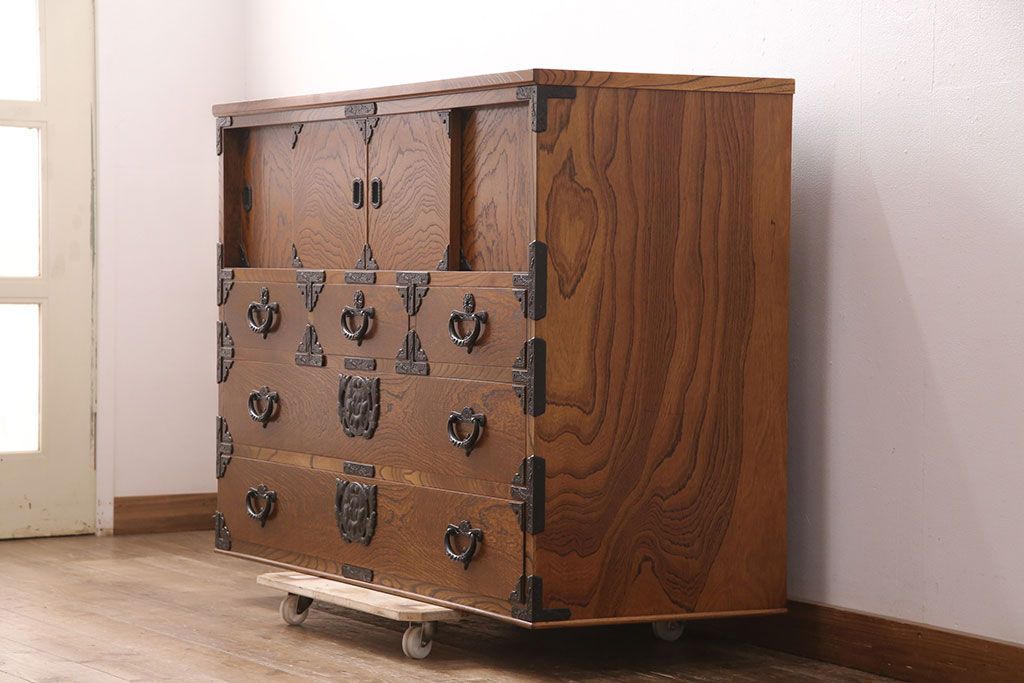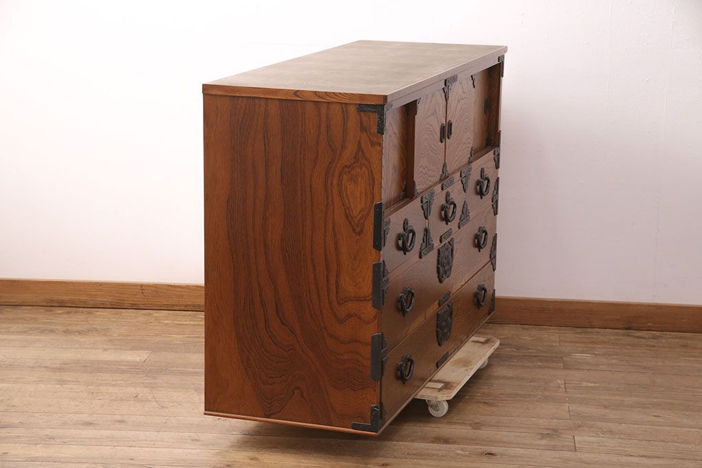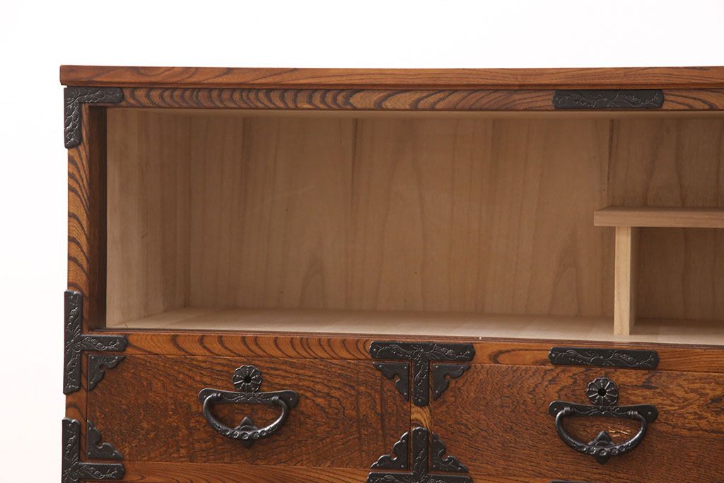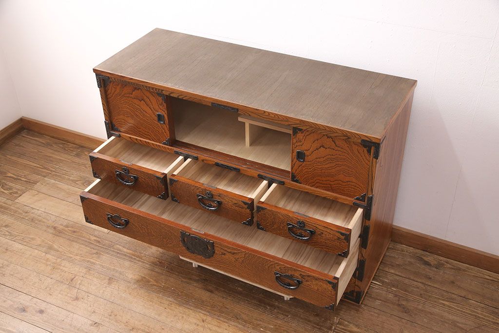 ラフジュ工房> 民芸家具 > 中古 岩谷堂箪笥 台輪・脚付きリメイク 和の趣を感じさせる渋い佇まいの箪笥サイドボード(衣装箪笥、引き出し、和タンス、チェスト)(R-051376)