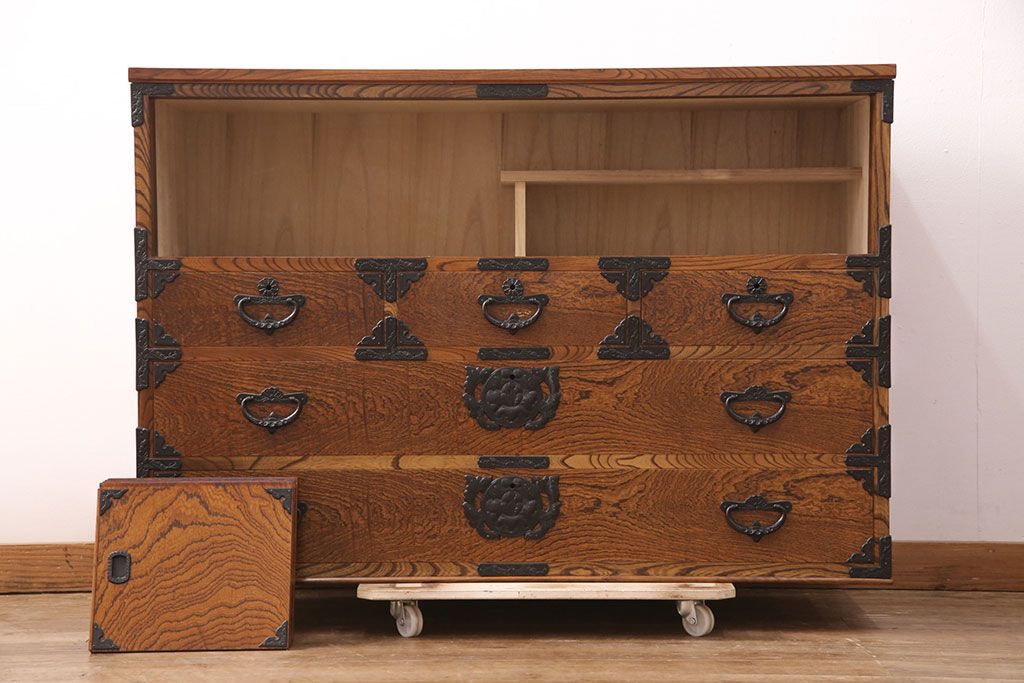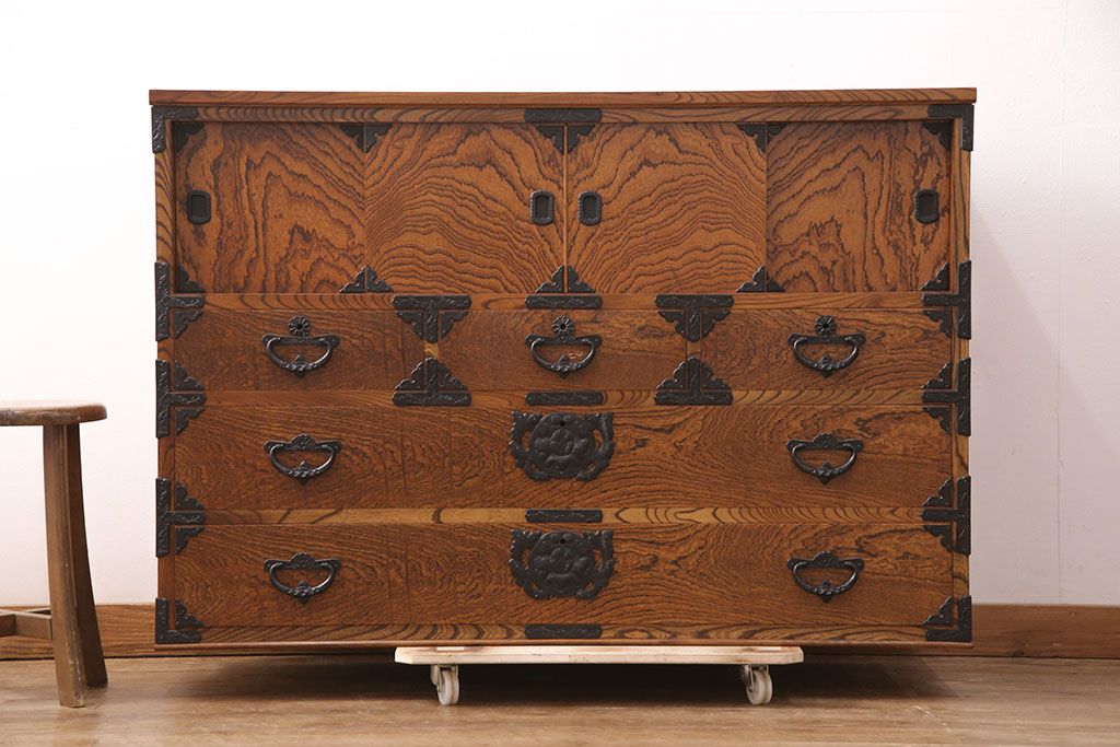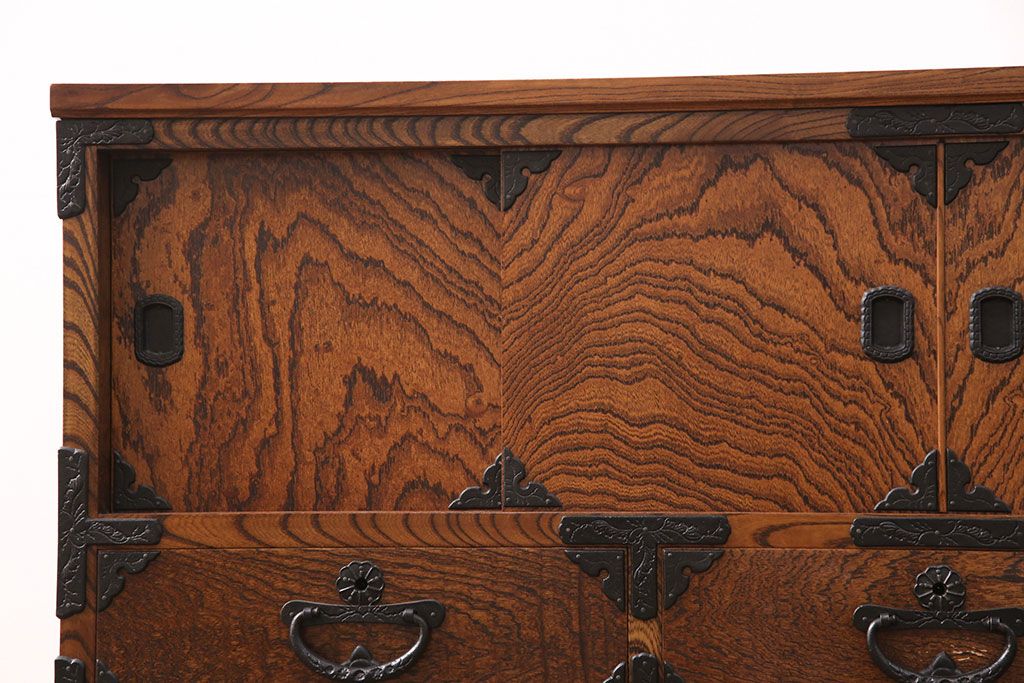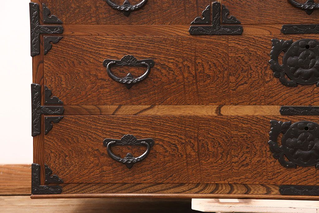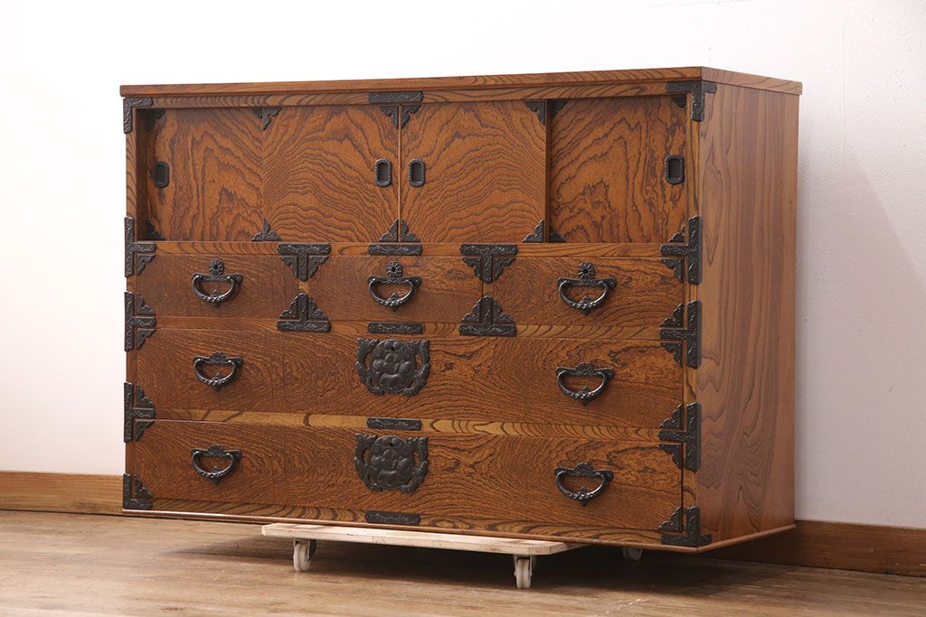 ラフジュ工房> 民芸家具 > 中古 岩谷堂箪笥 台輪・脚付きリメイク 和の趣を感じさせる渋い佇まいの箪笥サイドボード(衣装箪笥、引き出し、和タンス、チェスト)(R-051376)