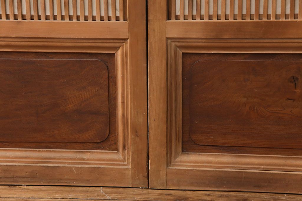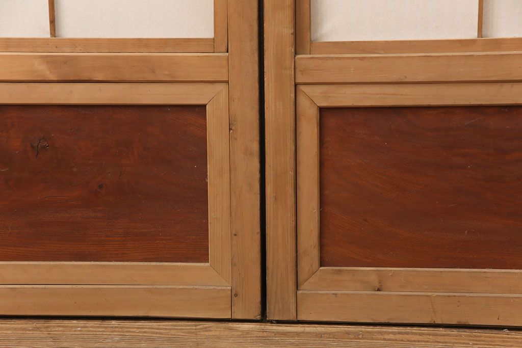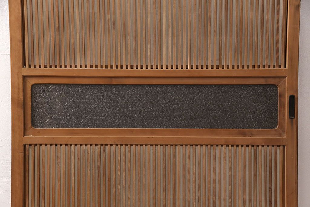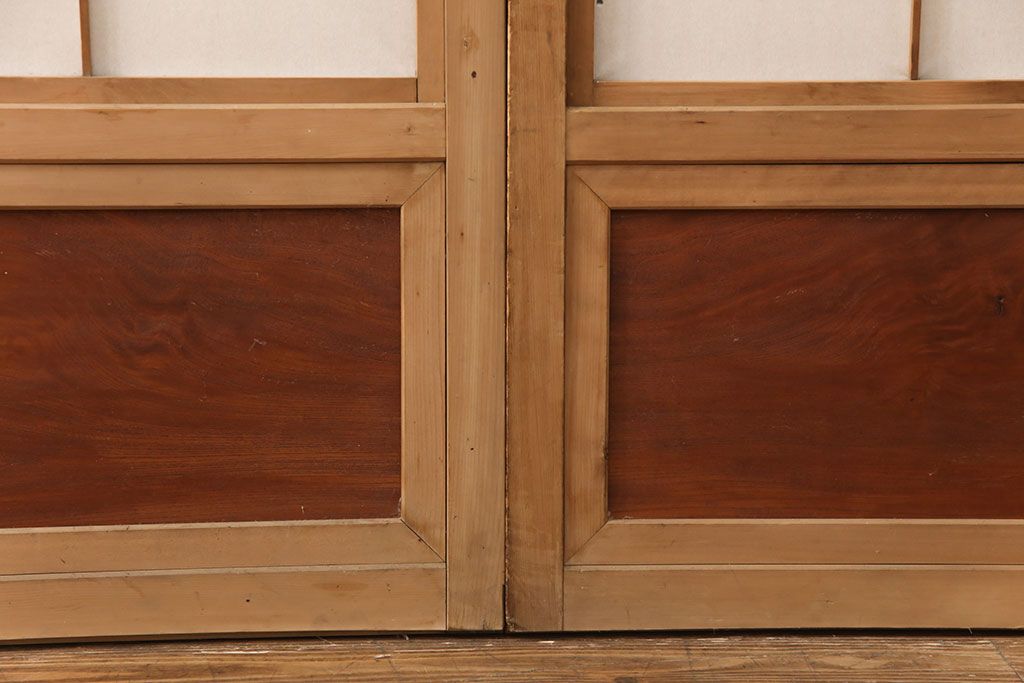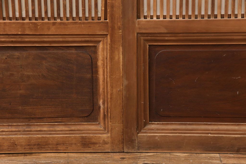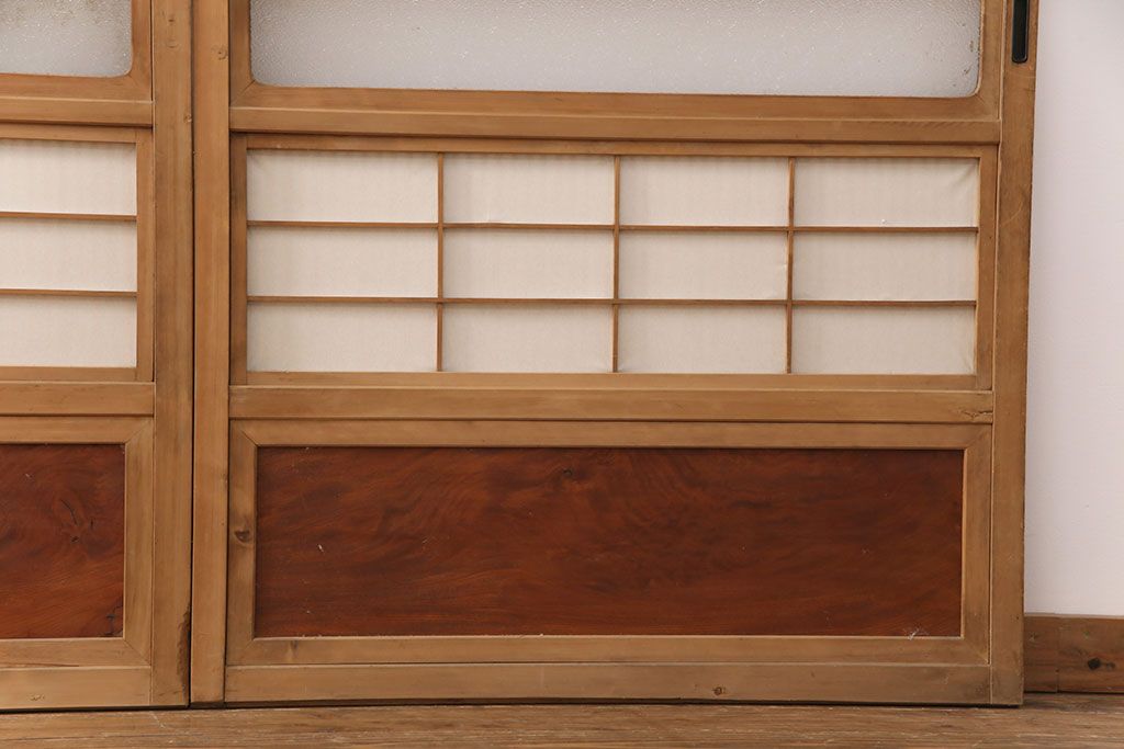 アンティーク建具 腰板ケヤキ材 ダイヤガラス 品のある和の雰囲気が素敵な裏障子付き格子戸4枚セット(引き戸、障子戸)(R-051444)