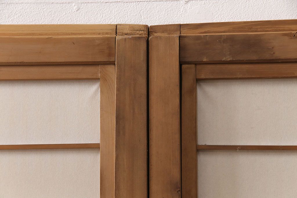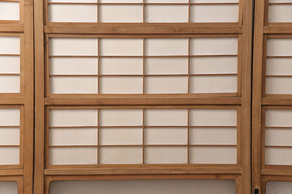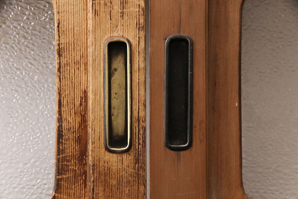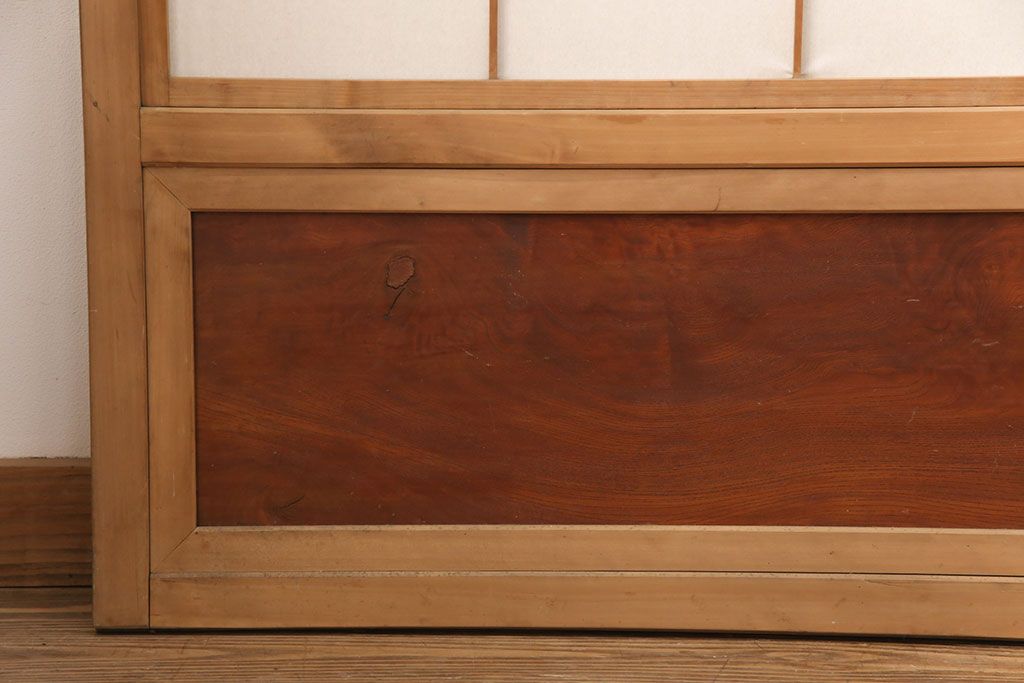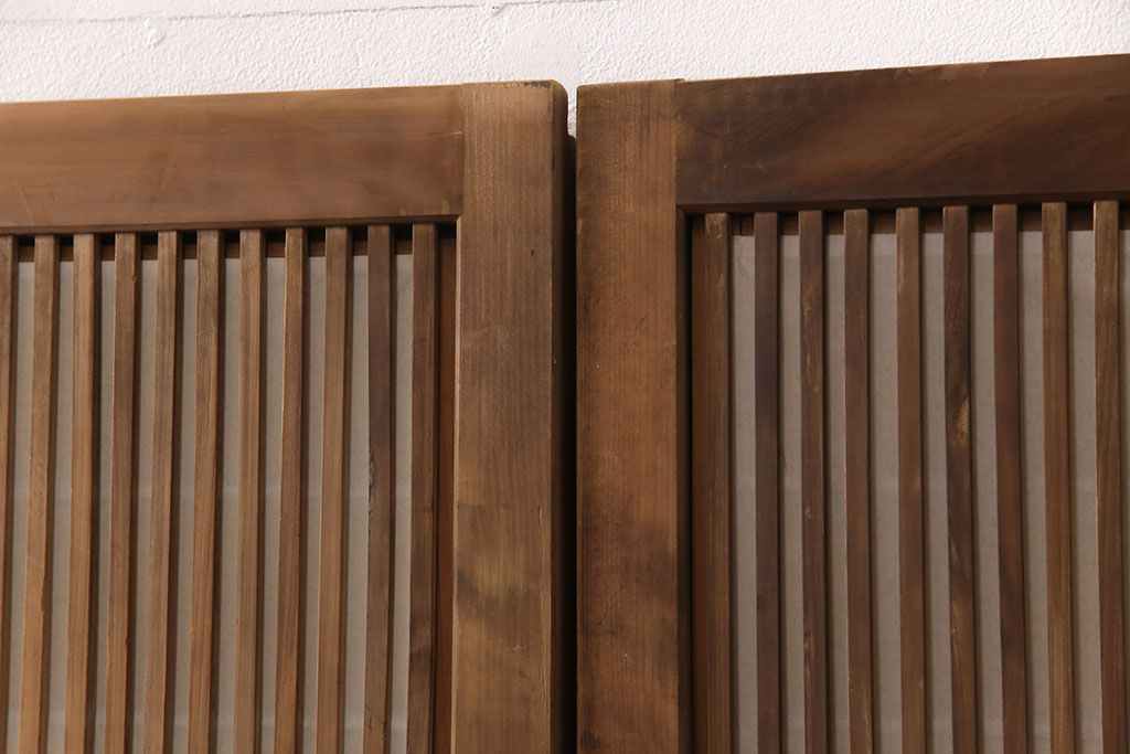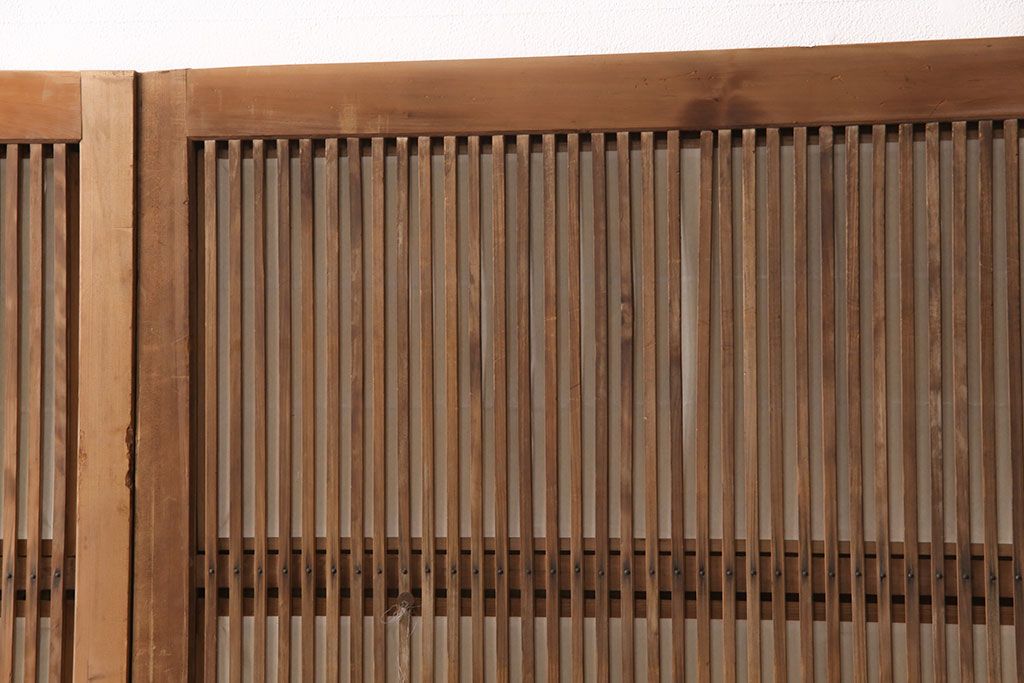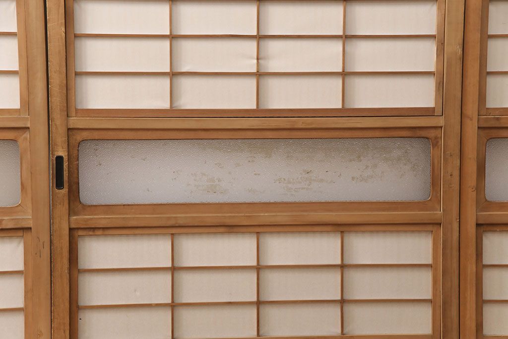 アンティーク建具 腰板ケヤキ材 ダイヤガラス 品のある和の雰囲気が素敵な裏障子付き格子戸4枚セット(引き戸、障子戸)(R-051444)