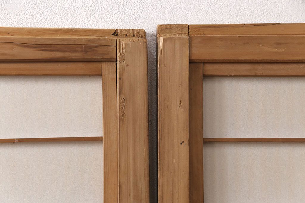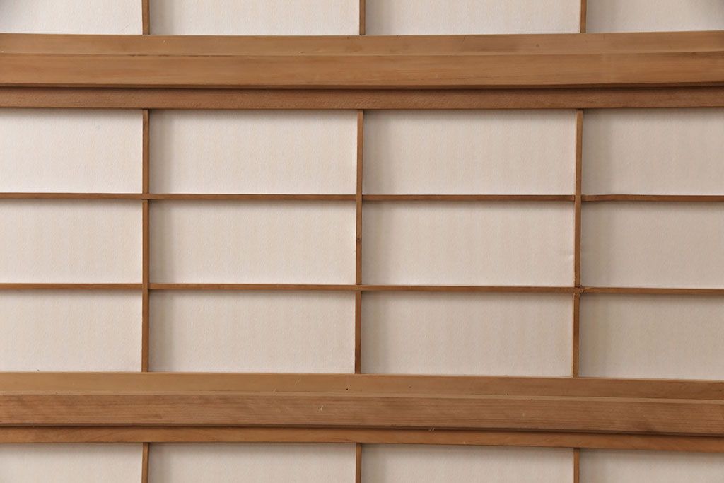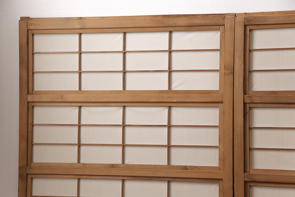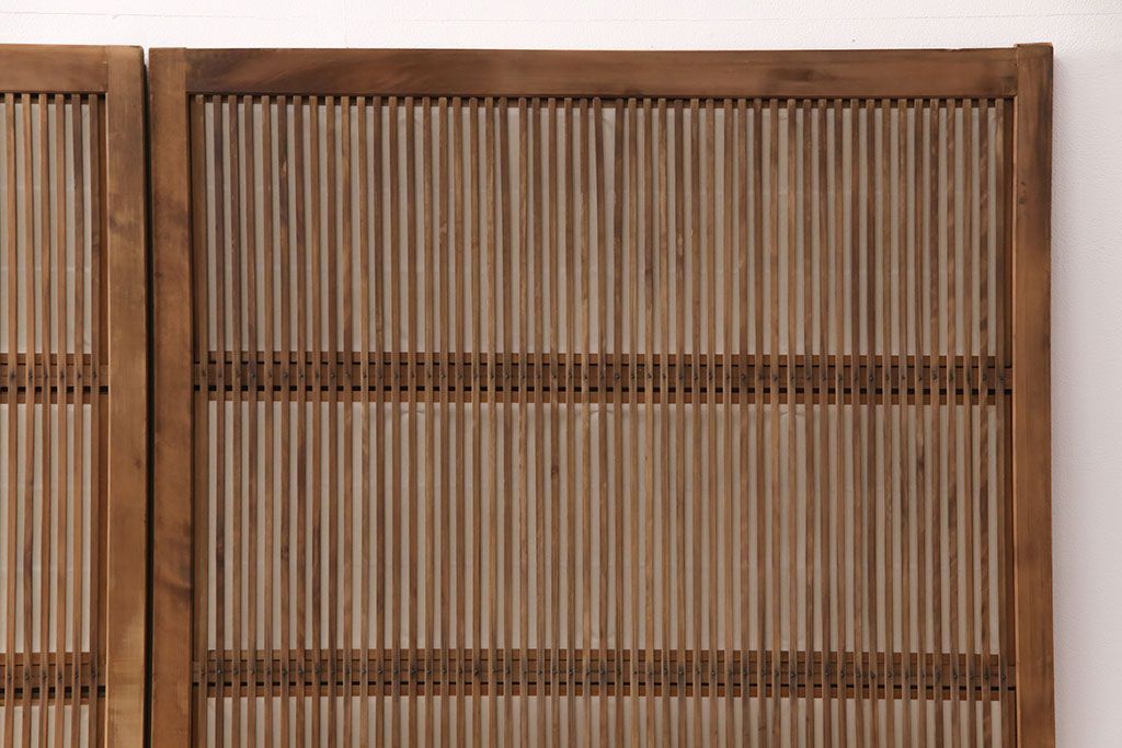 ラフジュ工房> ドア・建具> 障子戸 > アンティーク建具 腰板ケヤキ材 ダイヤガラス 品のある和の雰囲気が素敵な裏障子付き格子戸4枚セット(引き戸、障子戸)(R-051444)