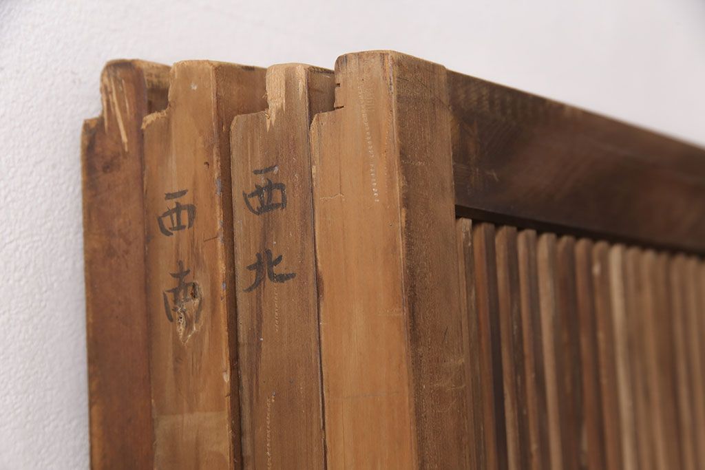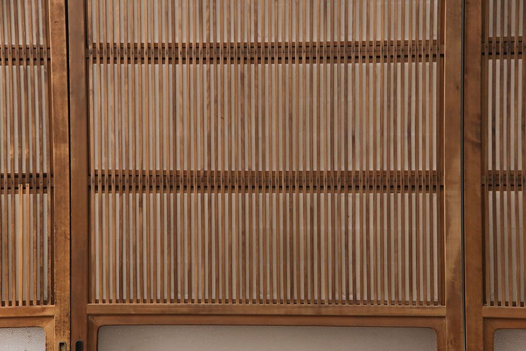 ラフジュ工房> ドア・建具> 引き戸 > アンティーク建具 腰板ケヤキ材 ダイヤガラス 品のある和の雰囲気が素敵な裏障子付き格子戸4枚セット(引き戸、障子戸)(R-051444)
