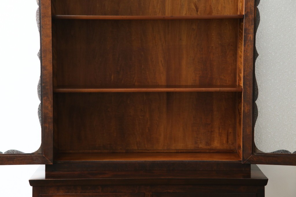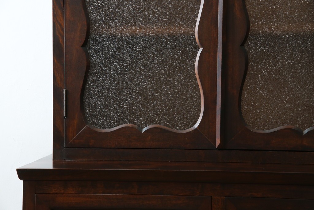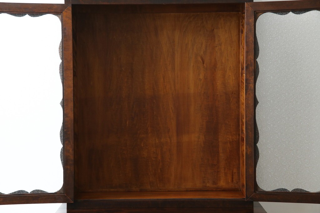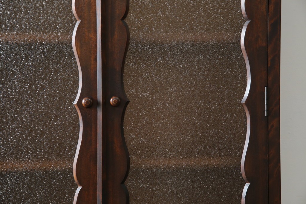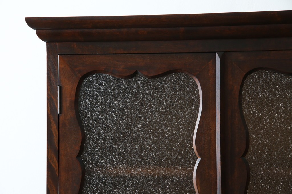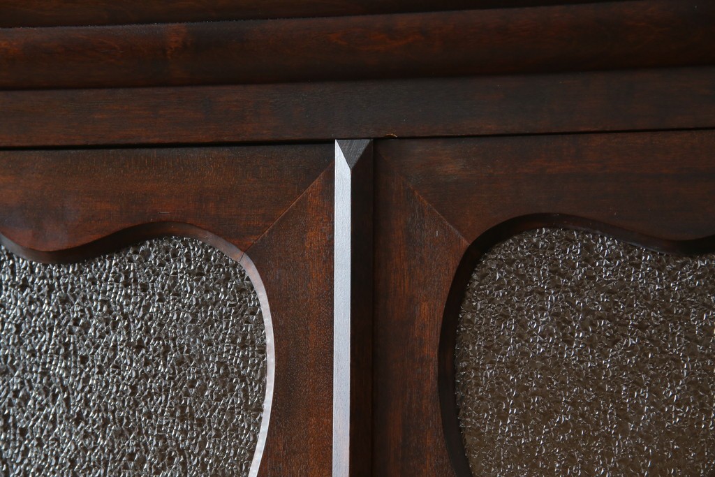 和製ヴィンテージ 国産職人手作り 手造り民芸家具 ガラス扉のデザインがおしゃれなキャビネット (R-051362)