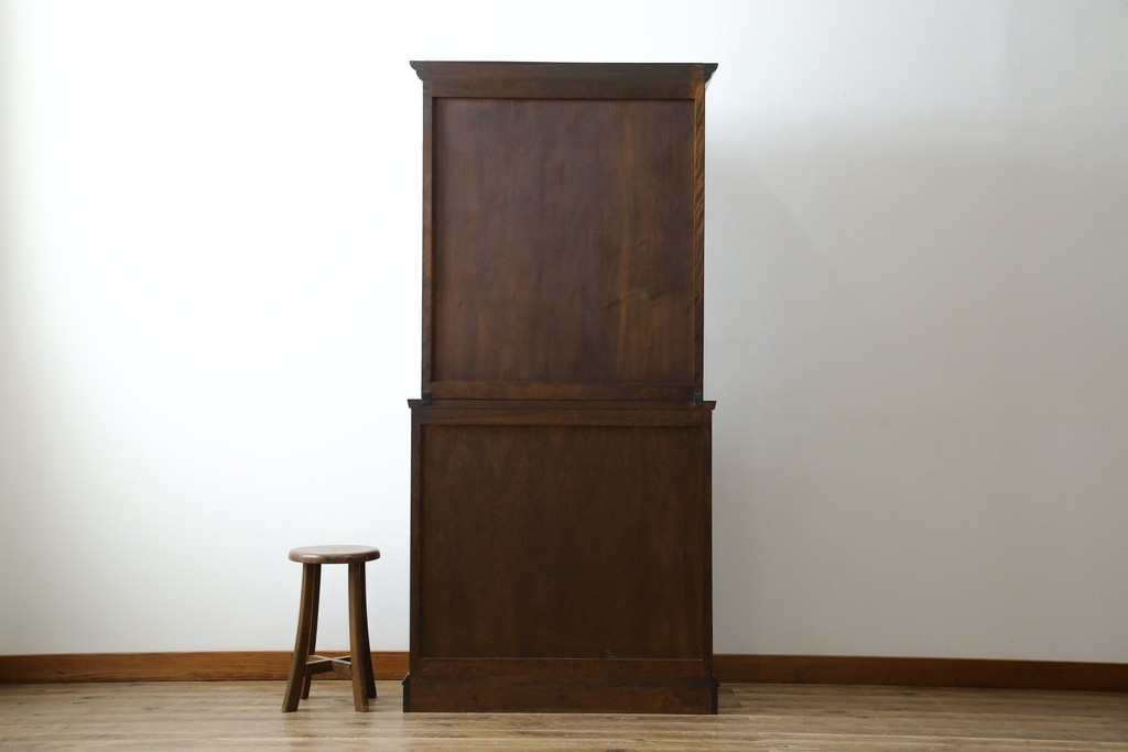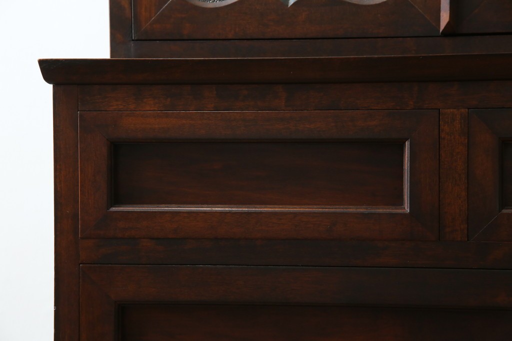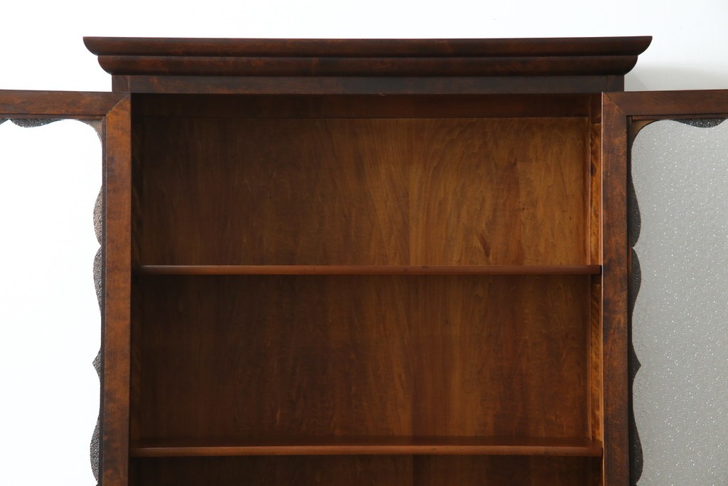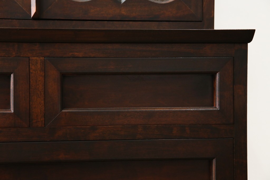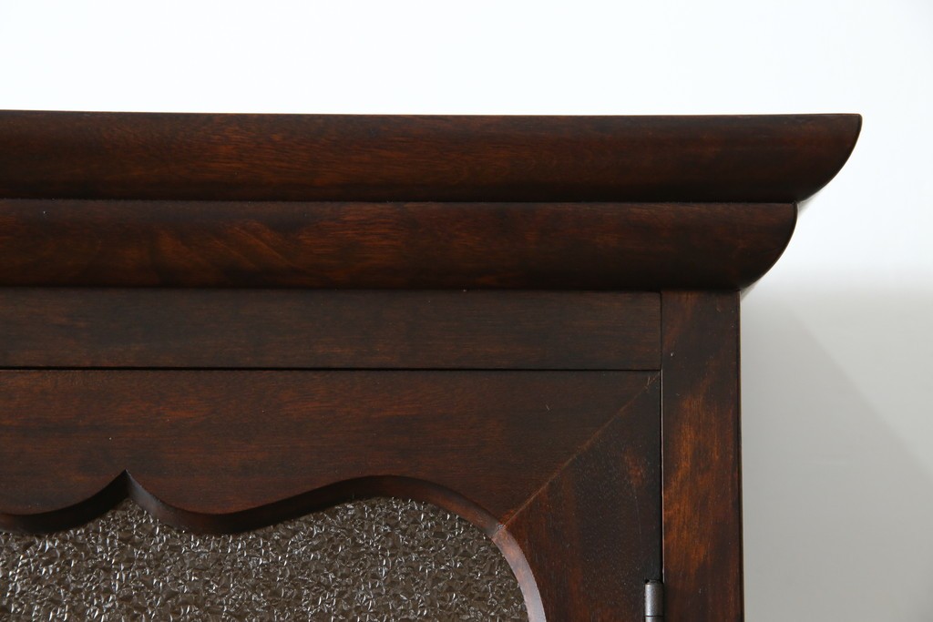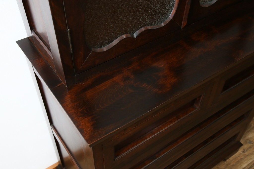 和製ヴィンテージ 国産職人手作り 手造り民芸家具 ガラス扉のデザインがおしゃれなキャビネット (R-051362)