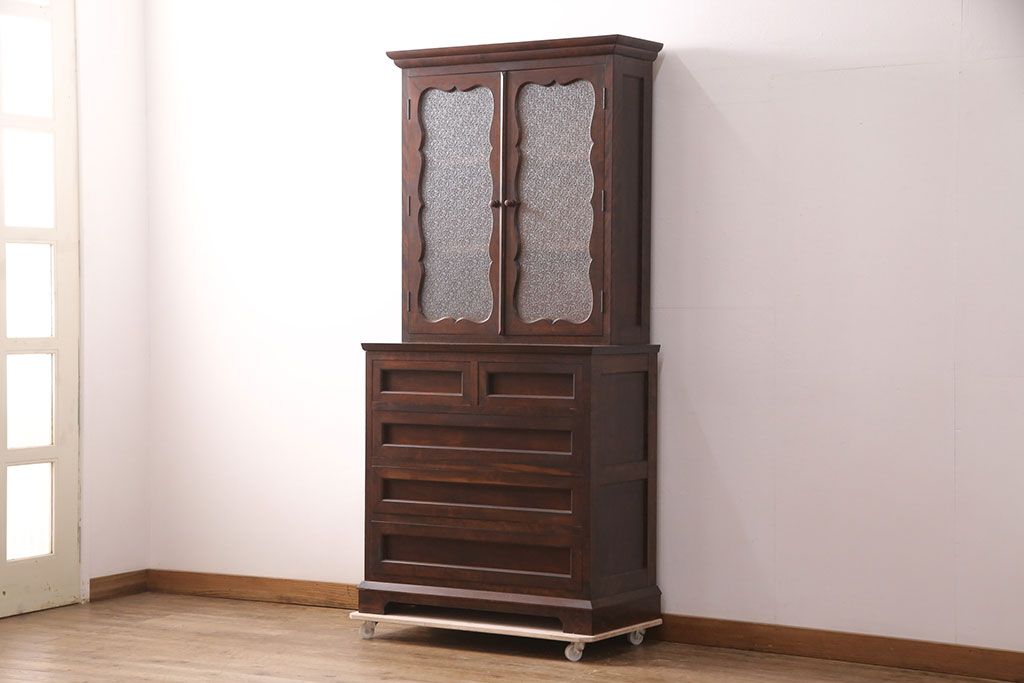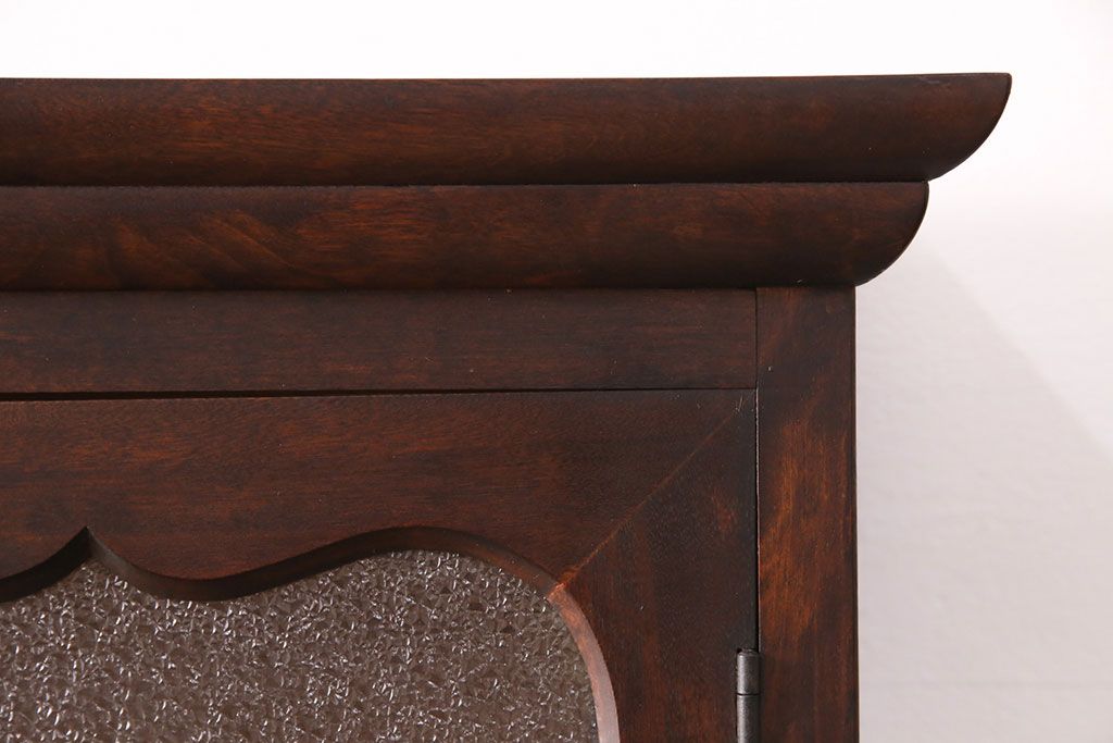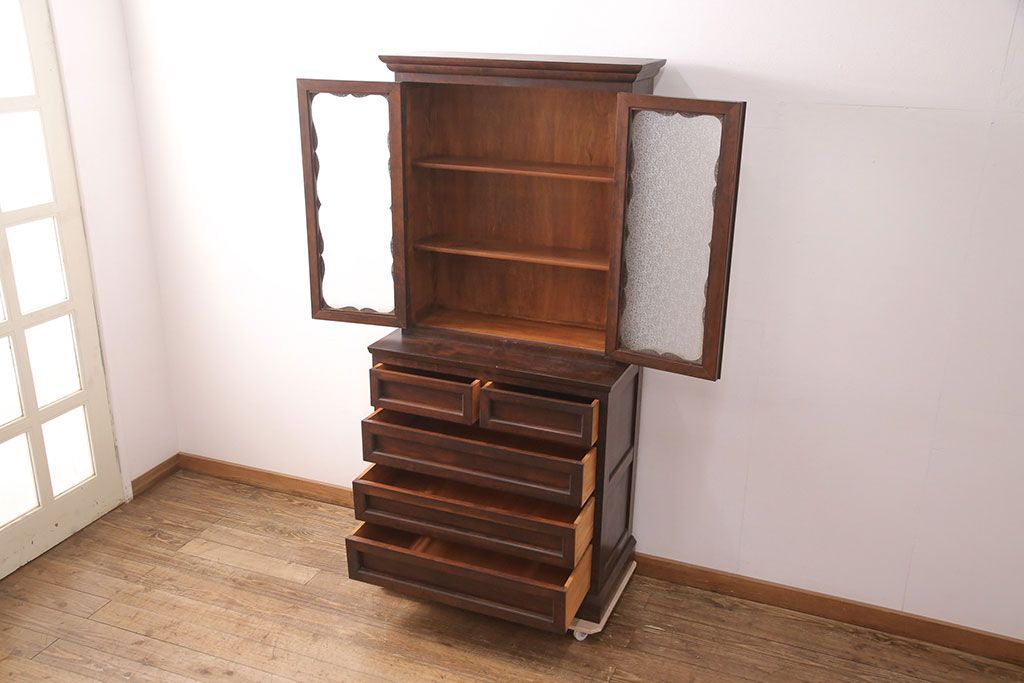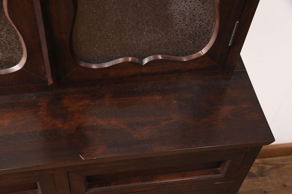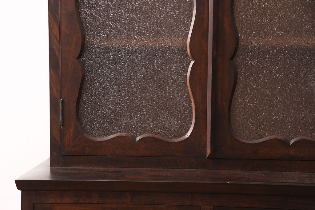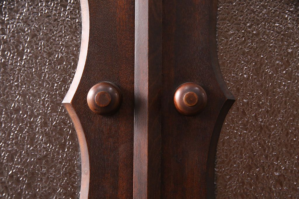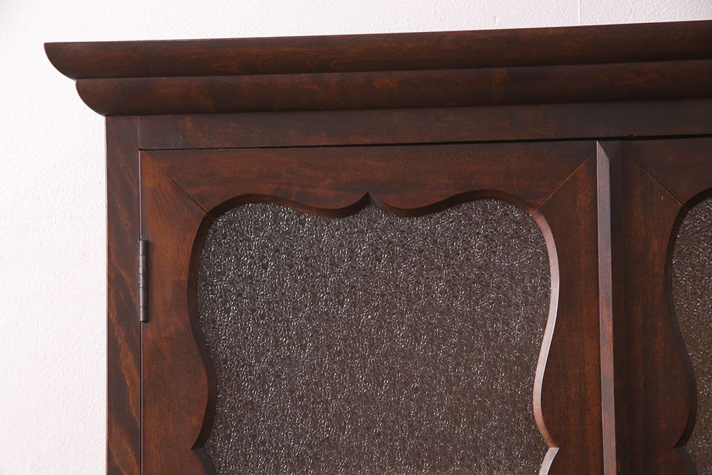 民芸家具 > 和製ヴィンテージ 国産職人手作り 手造り民芸家具 ガラス扉のデザインがおしゃれなキャビネット(松本民芸家具風、ブックケース、収納棚、本箱、戸棚、食器棚、カップボード、ビンテージ)(R-051362)