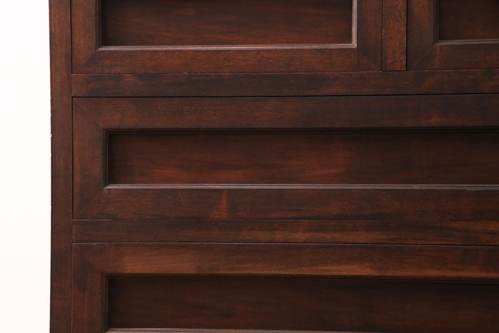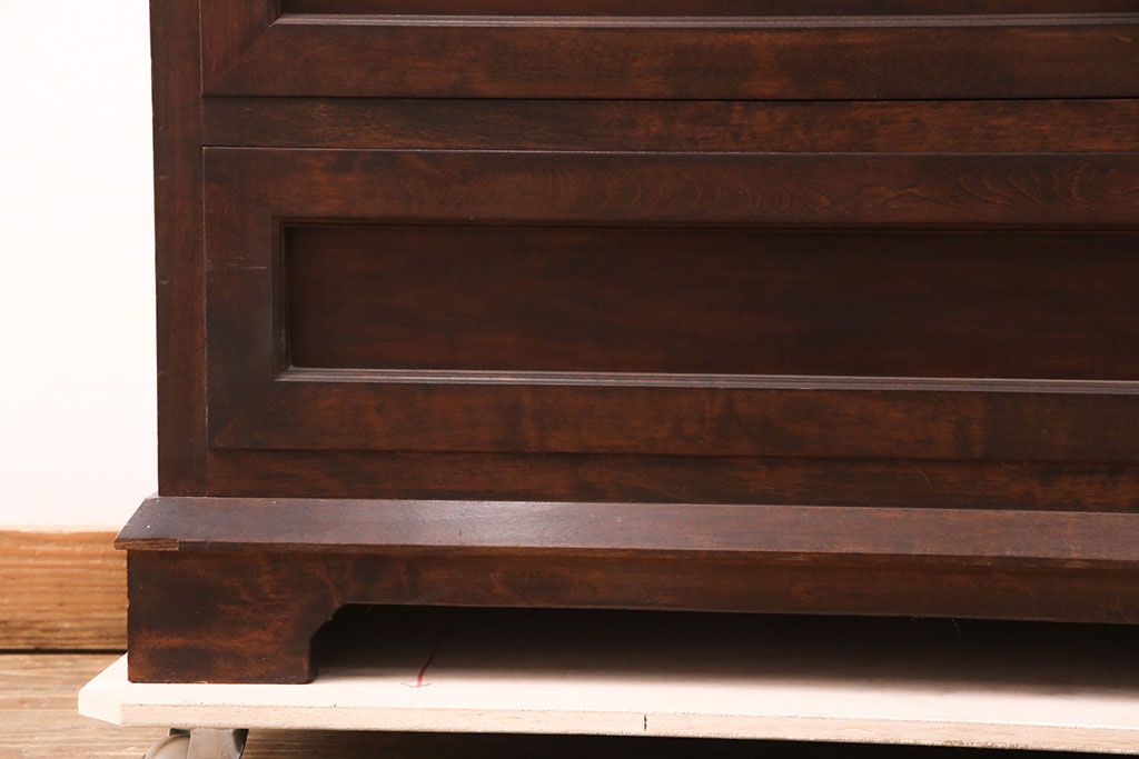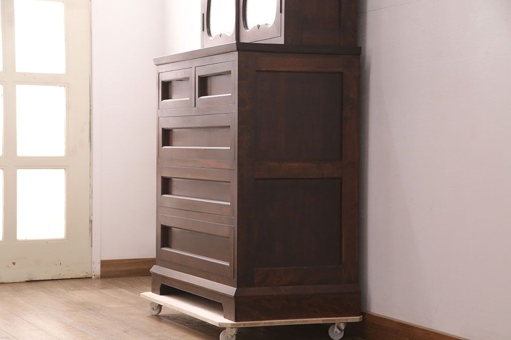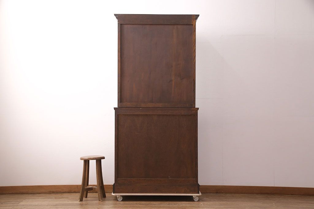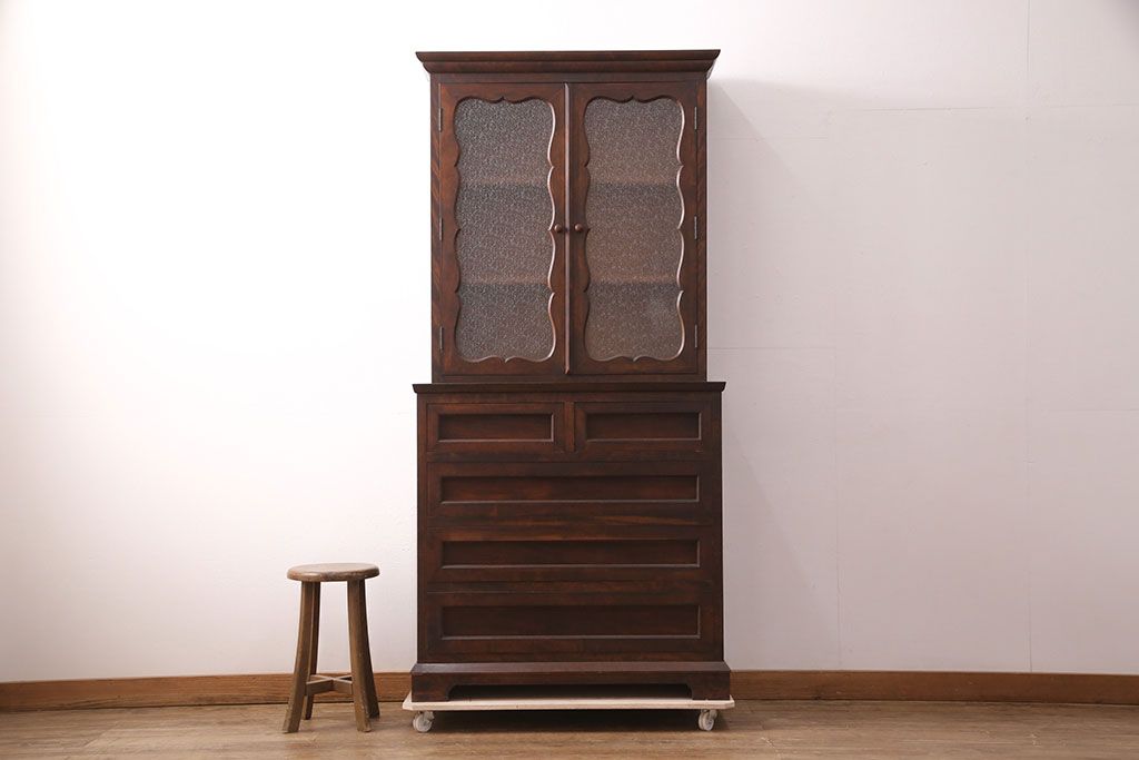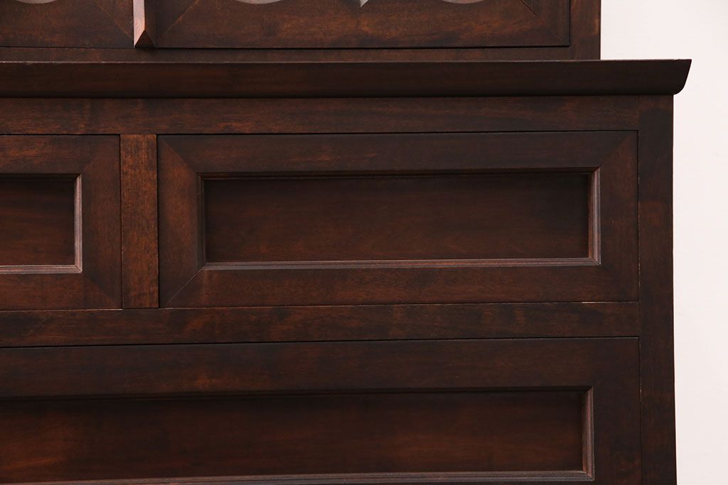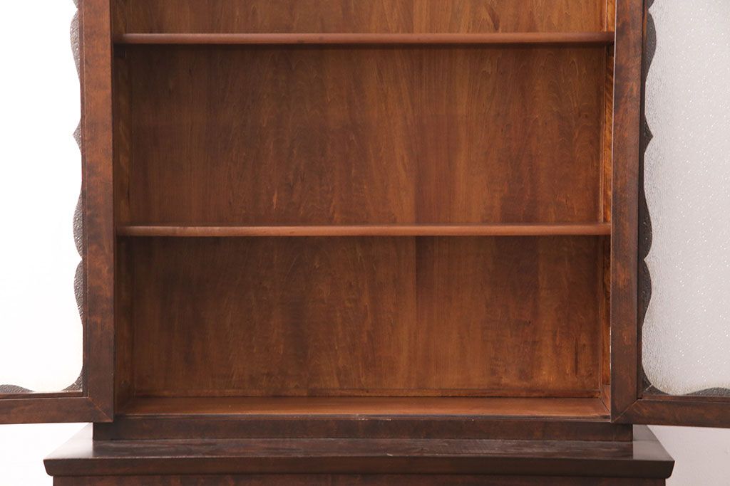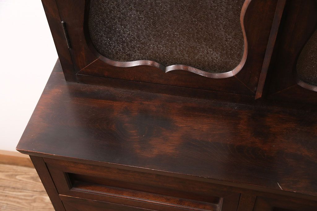 民芸家具 > 和製ヴィンテージ 国産職人手作り 手造り民芸家具 ガラス扉のデザインがおしゃれなキャビネット(松本民芸家具風、ブックケース、収納棚、本箱、戸棚、食器棚、カップボード、ビンテージ)(R-051362)