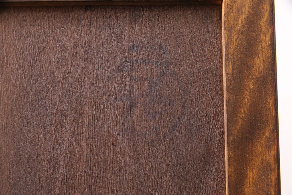 キャビネット・戸棚> 本箱 > 和製ヴィンテージ 国産職人手作り 手造り民芸家具 ガラス扉のデザインがおしゃれなキャビネット(松本民芸家具風、ブックケース、収納棚、本箱、戸棚、食器棚、カップボード、ビンテージ)(R-051362)