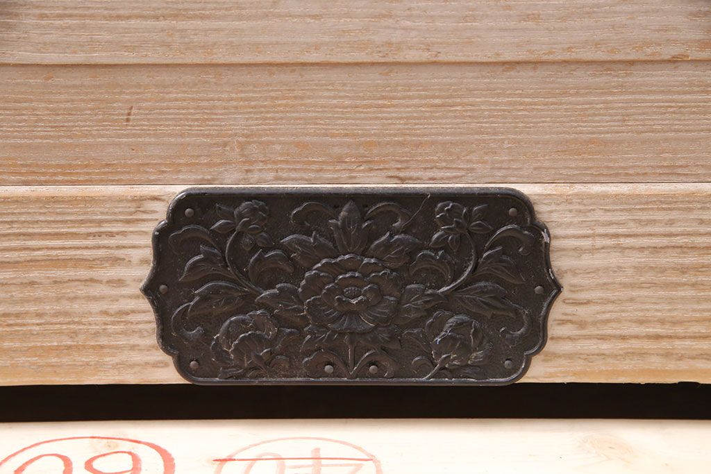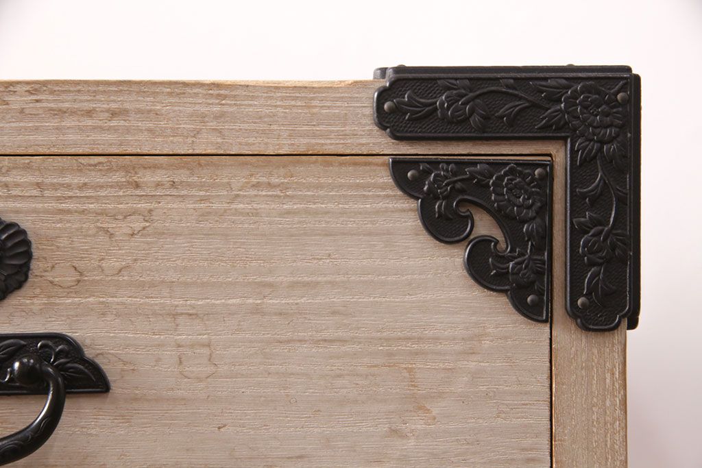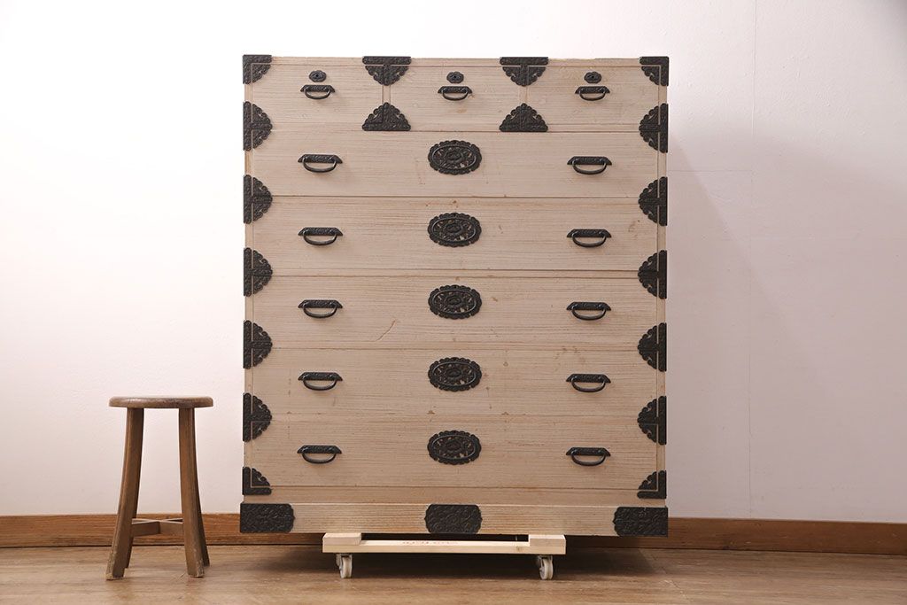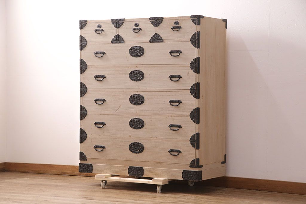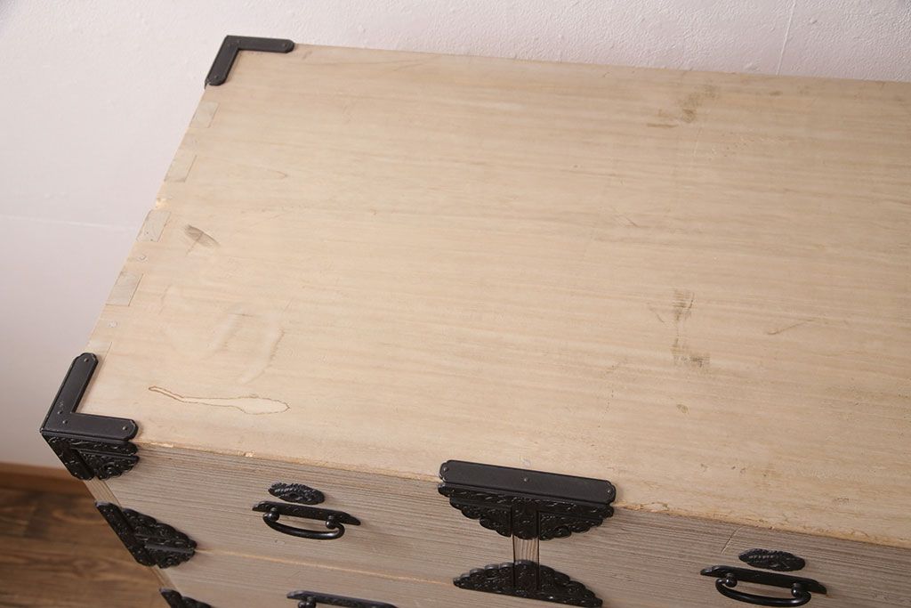 和箪笥 > 中古 国産 手造り 明るい木肌に黒い金具が映える総桐箪笥(衣装箪笥、和タンス、引き出し、チェスト、桐たんす)(R-051360)