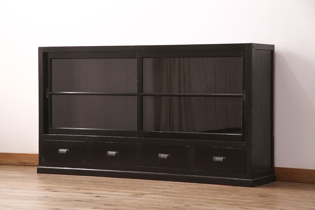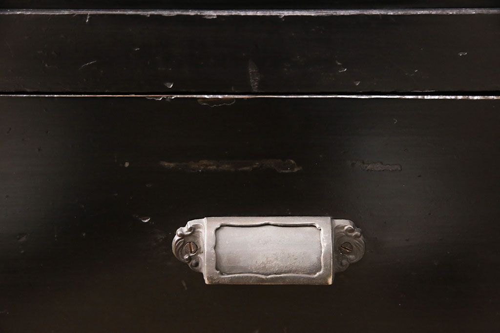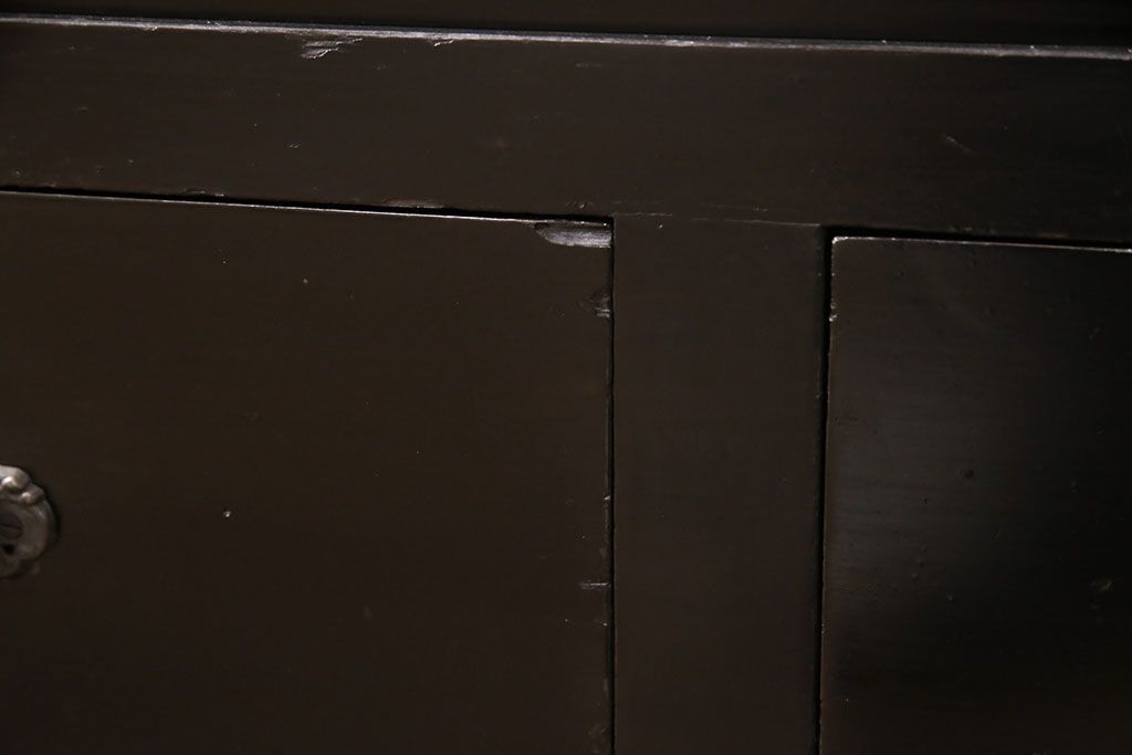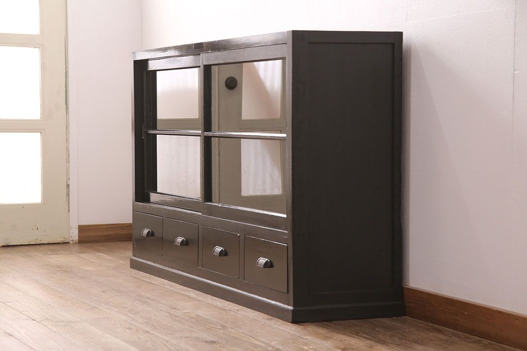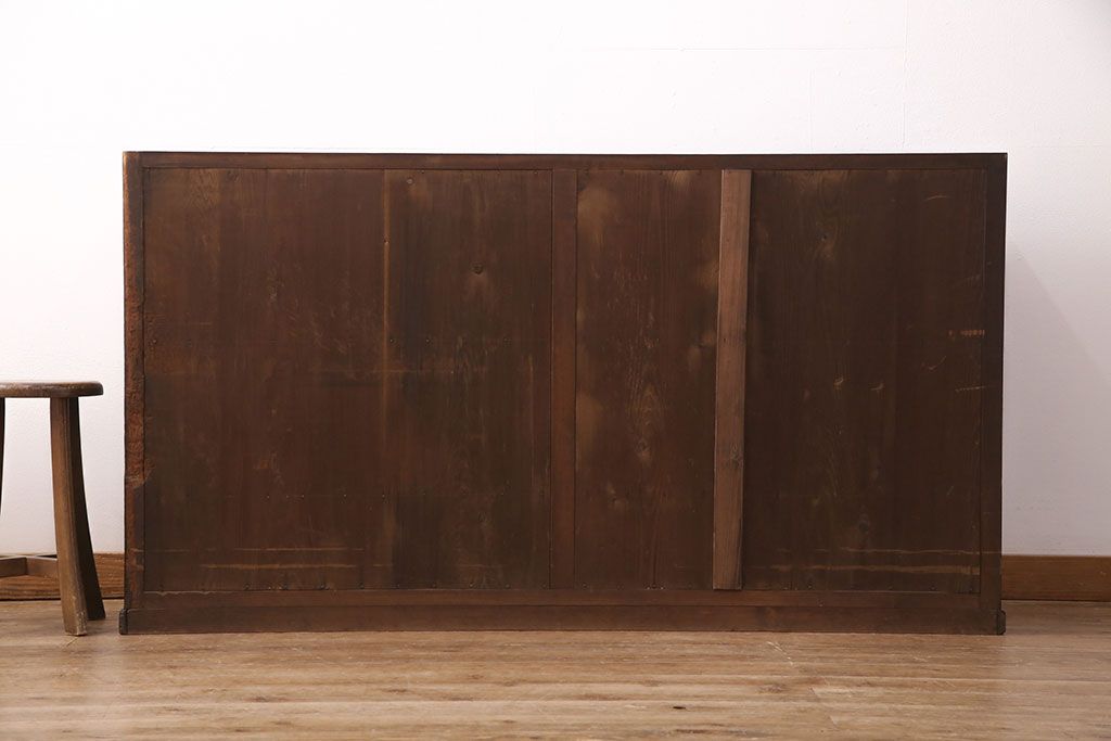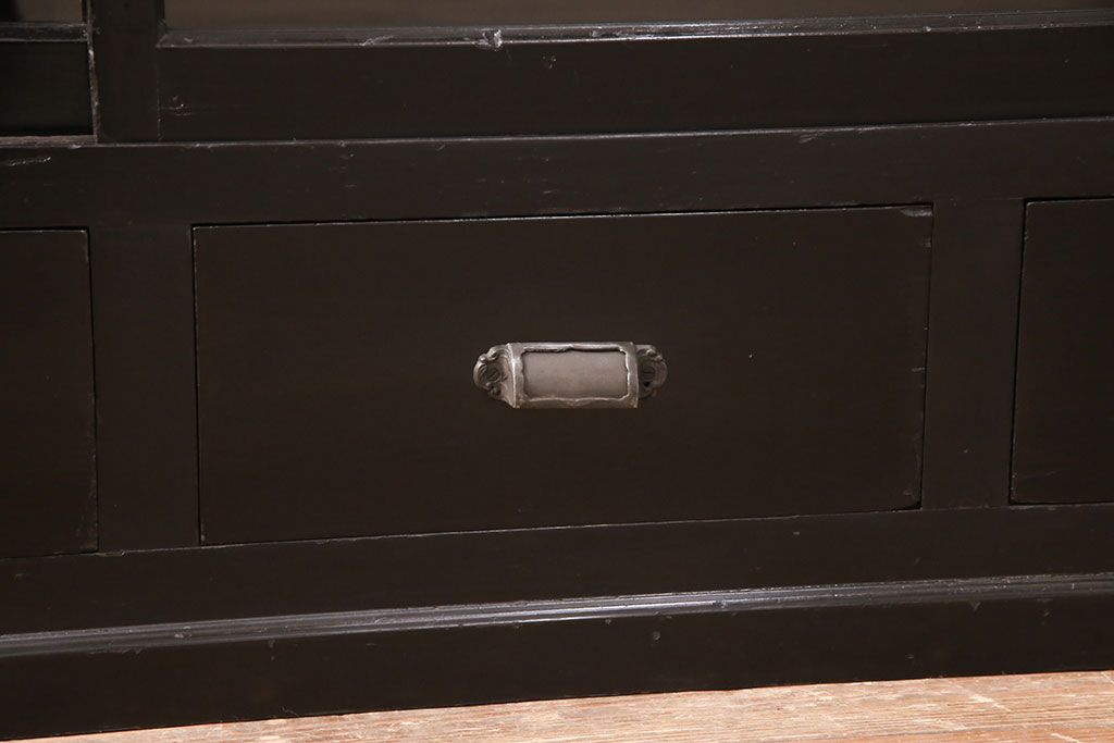 キャビネット・戸棚> サイドキャビネット > 大正昭和初期のサイドボードをリペア&カスタム!プレートを取り外し、ガラスをクリアガラスに入れ替え。現状に近しい色味に着色し仕上げ。(収納棚、戸棚、キャビネット)