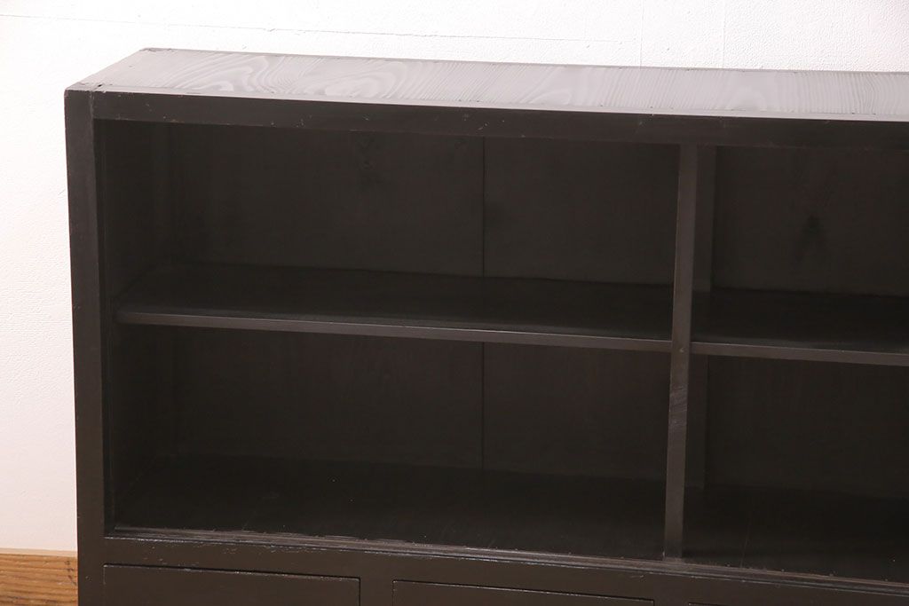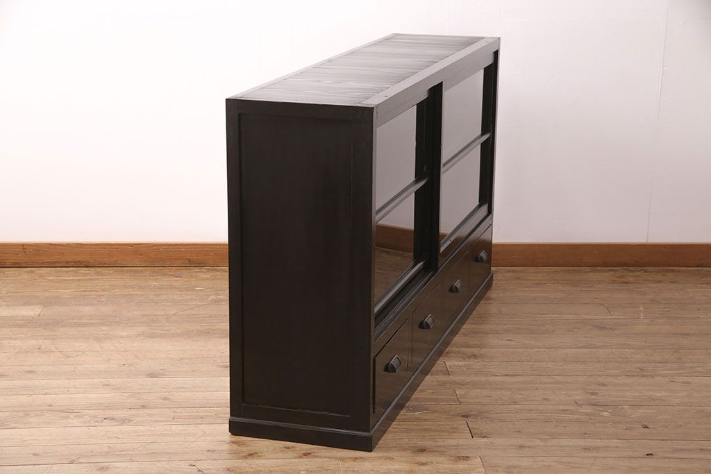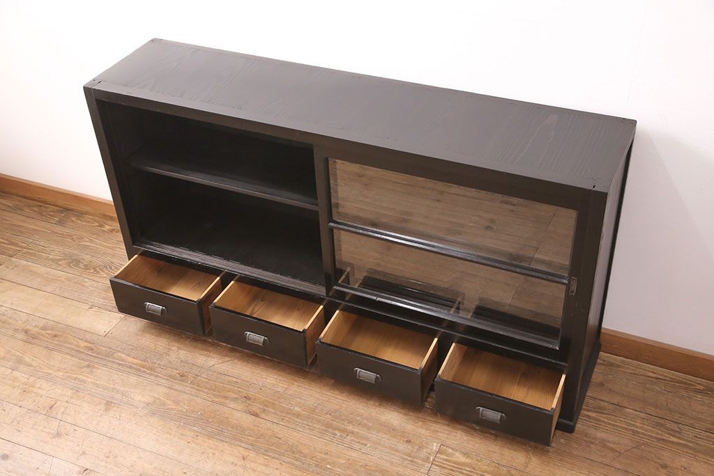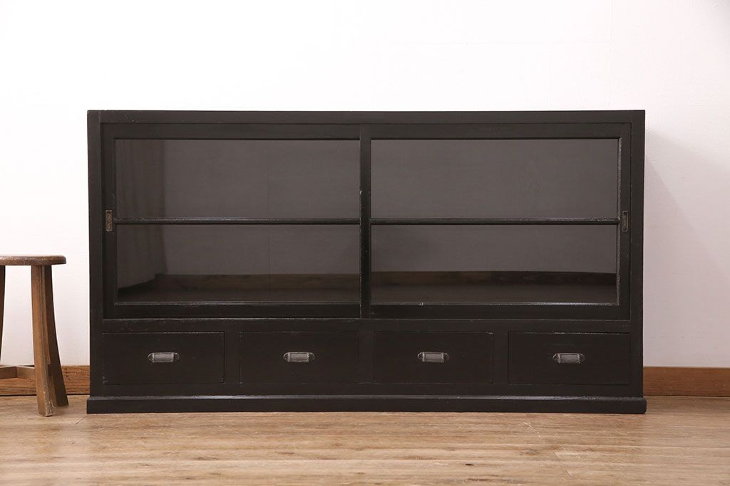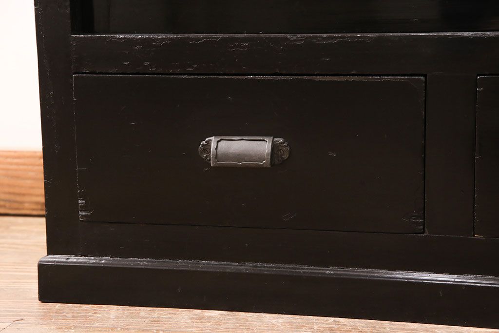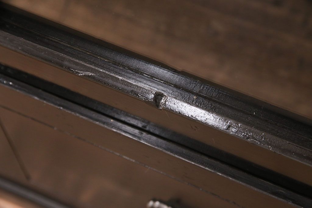 キャビネット・戸棚> サイドキャビネット > 大正昭和初期のサイドボードをリペア&カスタム!プレートを取り外し、ガラスをクリアガラスに入れ替え。現状に近しい色味に着色し仕上げ。(収納棚、戸棚、キャビネット)