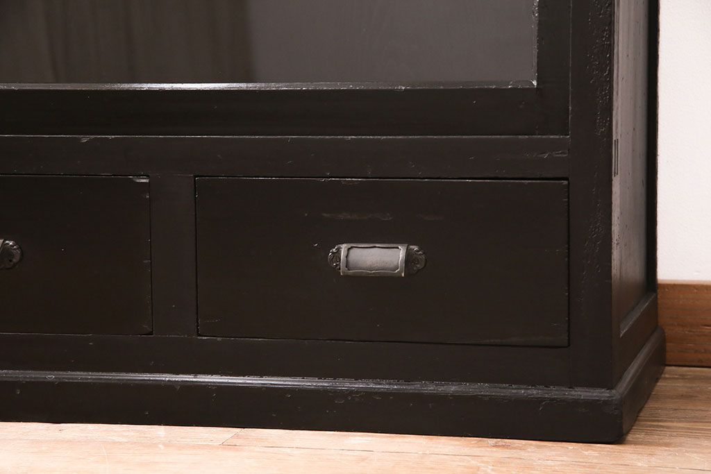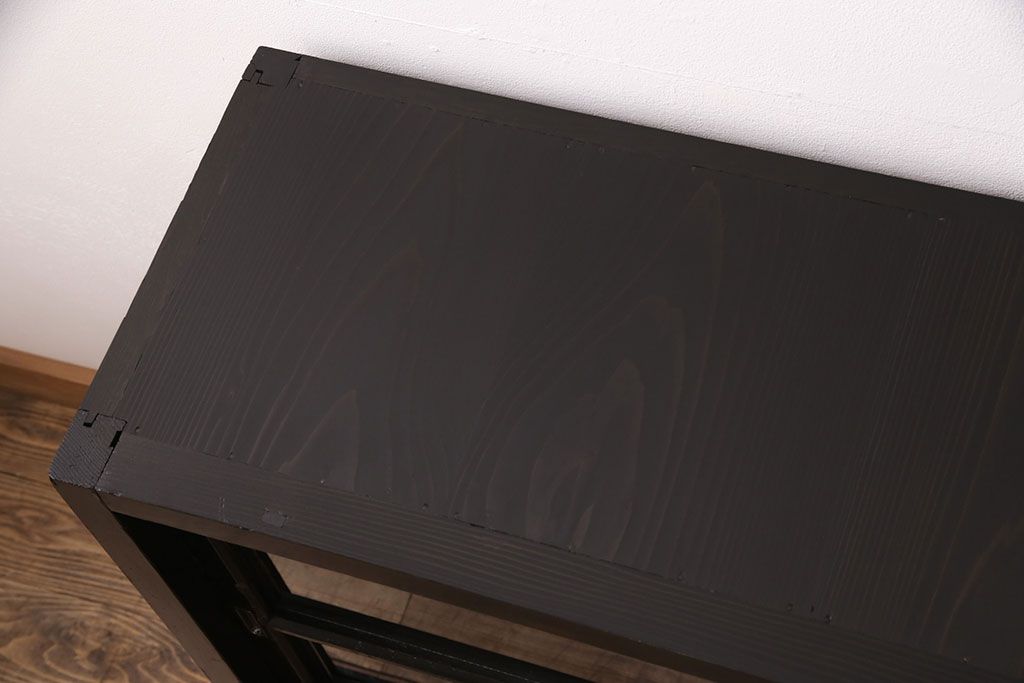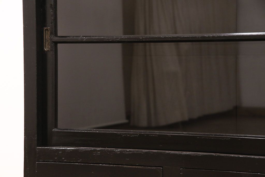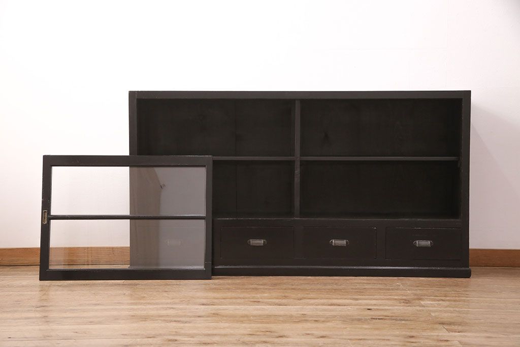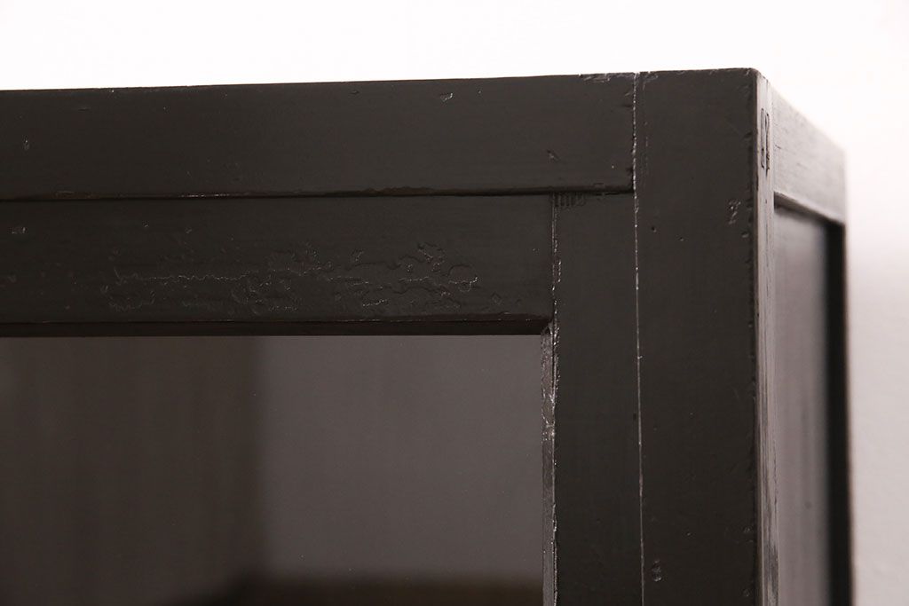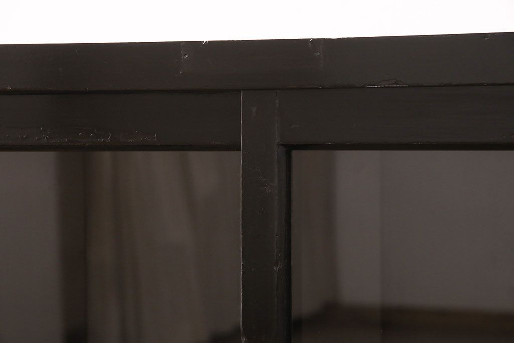 大正昭和初期のサイドボードをリペア&カスタム!プレートを取り外し、ガラスをクリアガラスに入れ替え。現状に近しい色味に着色し仕上げ。(収納棚、戸棚、キャビネット)