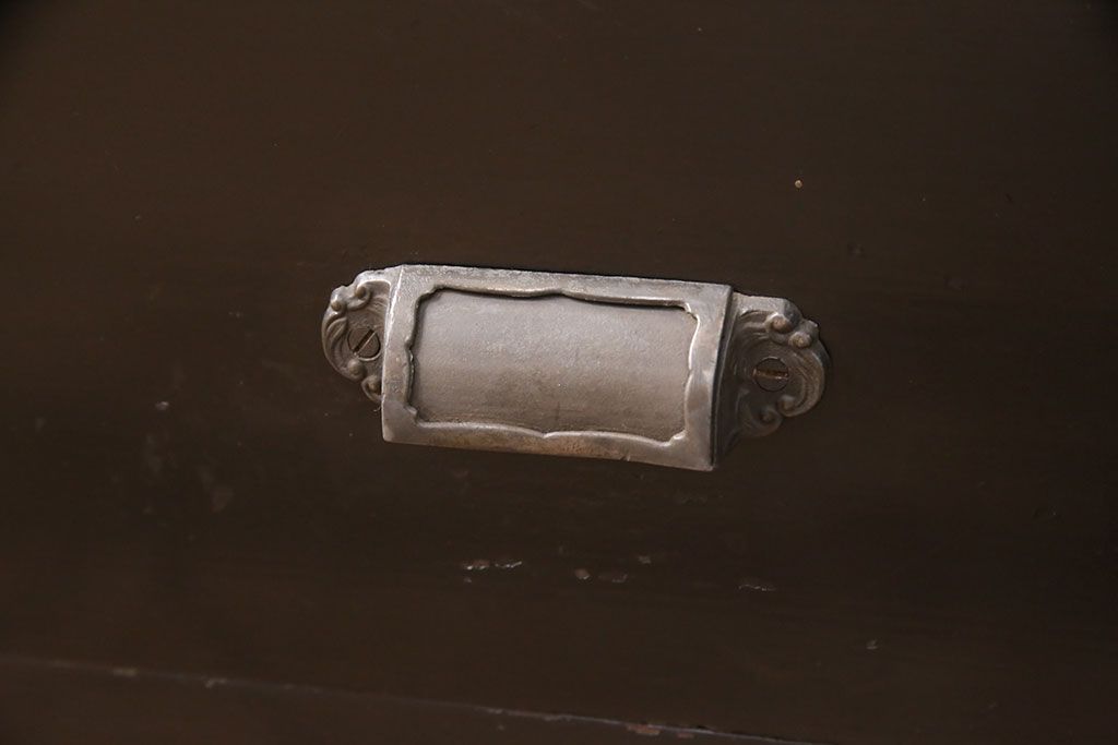 セミオーダー家具実績 > 大正昭和初期のサイドボードをリペア&カスタム!プレートを取り外し、ガラスをクリアガラスに入れ替え。現状に近しい色味に着色し仕上げ。(収納棚、戸棚、キャビネット)