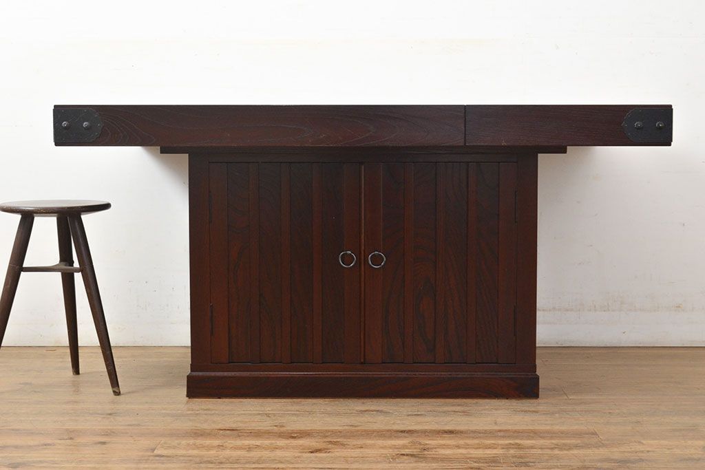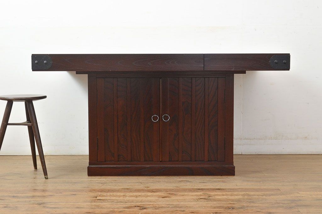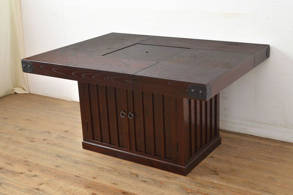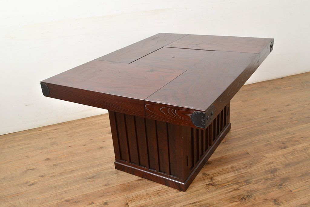 火鉢> 囲炉裏テーブル > 中古 筑後民芸 美しい木目が上質な和の雰囲気を演出する囲炉裏テーブル(ダイニングテーブル、火鉢)(定価約28万円)(R-051175)