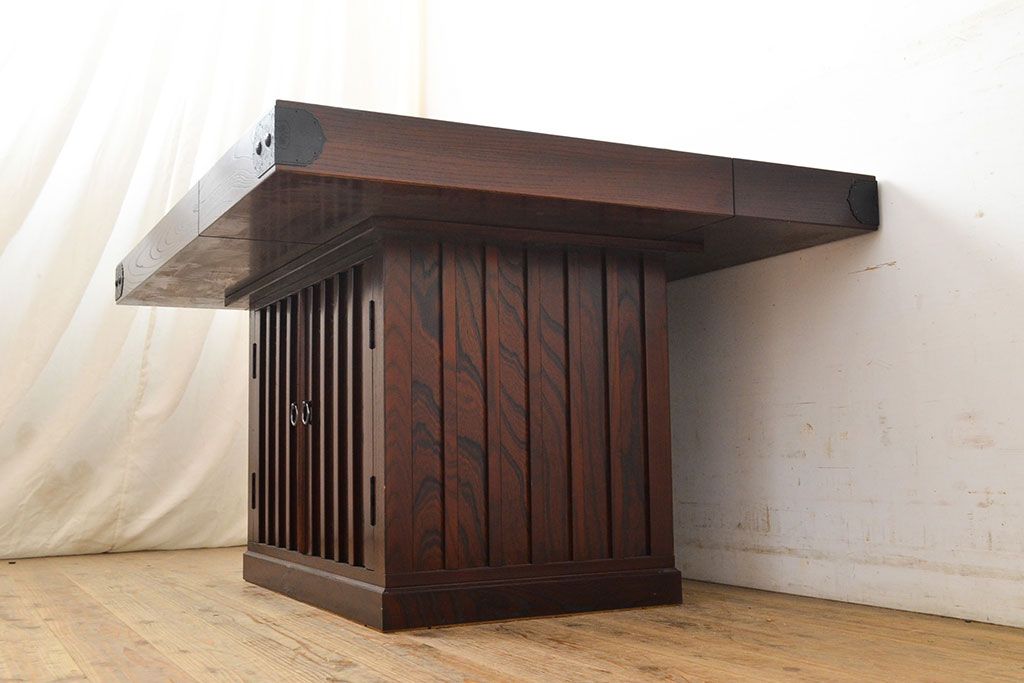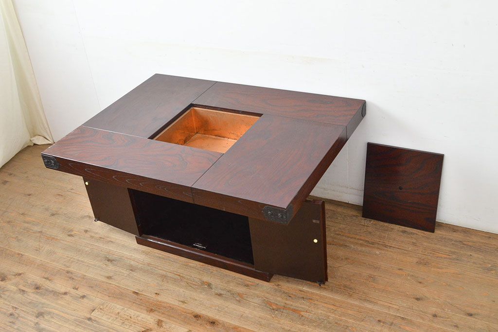 火鉢> 木製火鉢 > 中古 筑後民芸 美しい木目が上質な和の雰囲気を演出する囲炉裏テーブル(ダイニングテーブル、火鉢)(定価約28万円)(R-051175)
