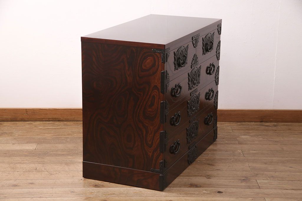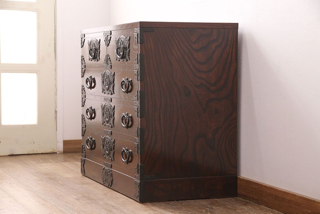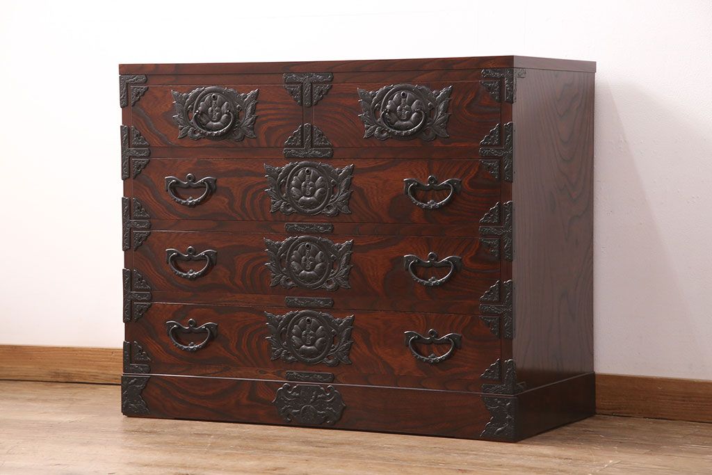 中古 美品 岩谷堂箪笥 迫力のある杢目と金具が存在感を放つ整理箪笥(衣装箪笥、引き出し、チェスト)(R-051214)