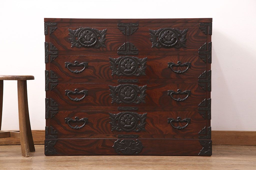 中古 美品 岩谷堂箪笥 迫力のある杢目と金具が存在感を放つ整理箪笥(衣装箪笥、引き出し、チェスト)(R-051214)です。