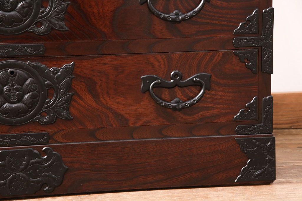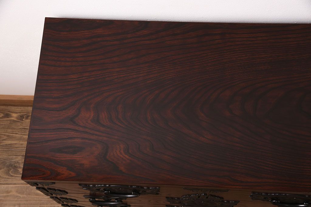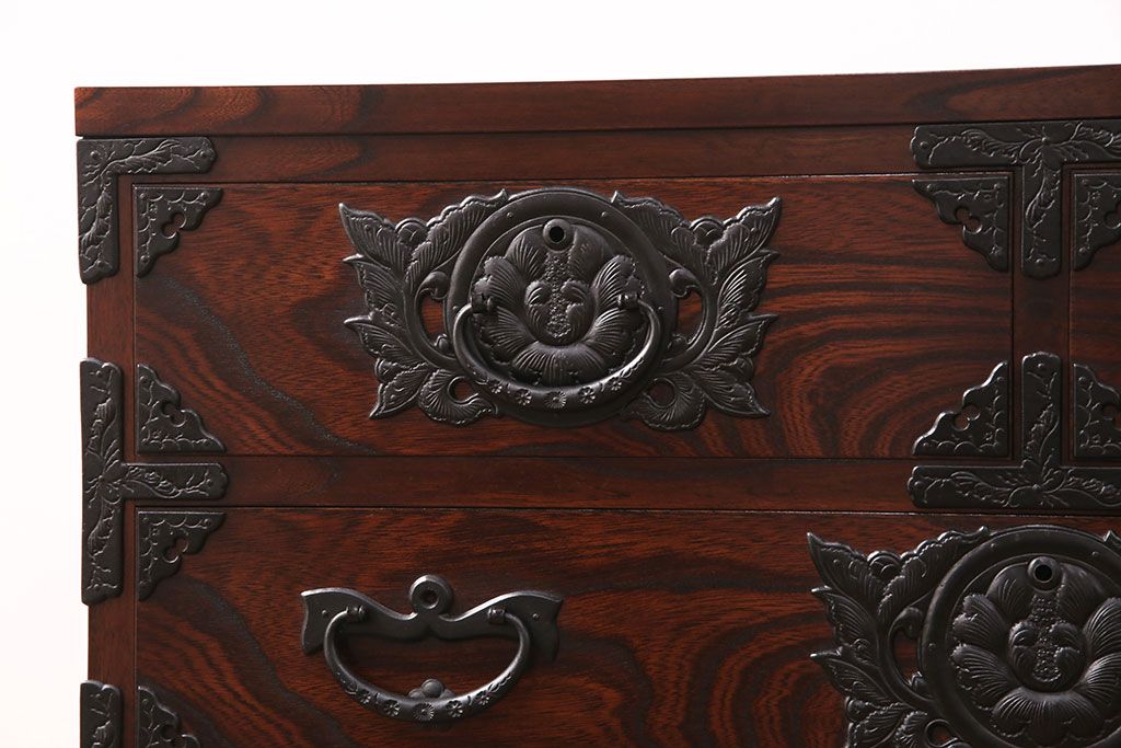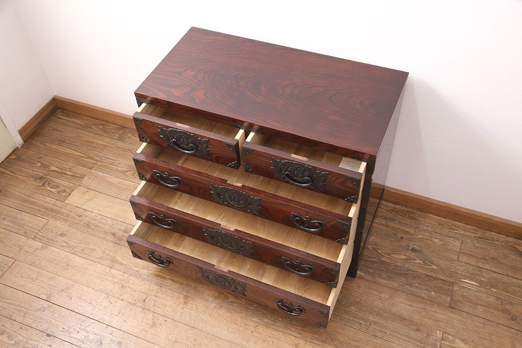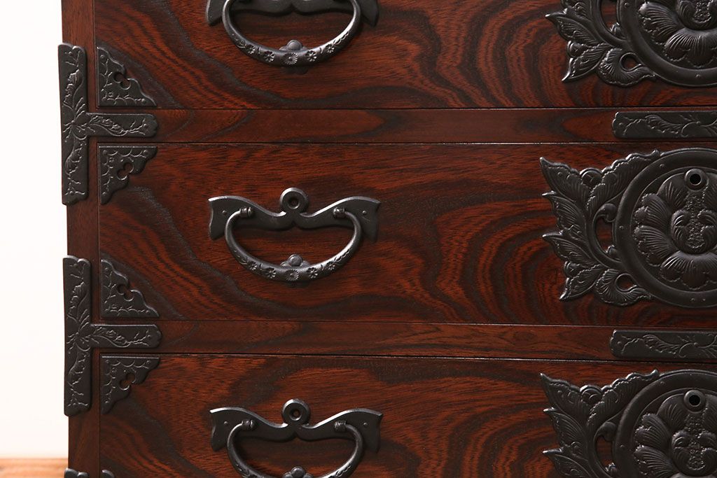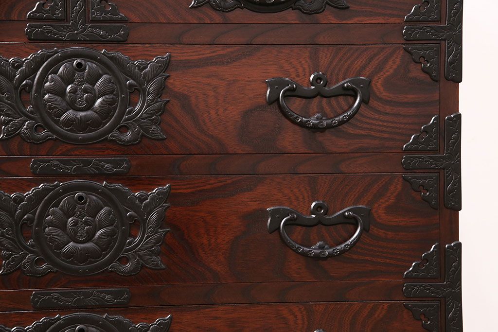 和箪笥 > 中古 美品 岩谷堂箪笥 迫力のある杢目と金具が存在感を放つ整理箪笥(衣装箪笥、引き出し、チェスト)(R-051214)