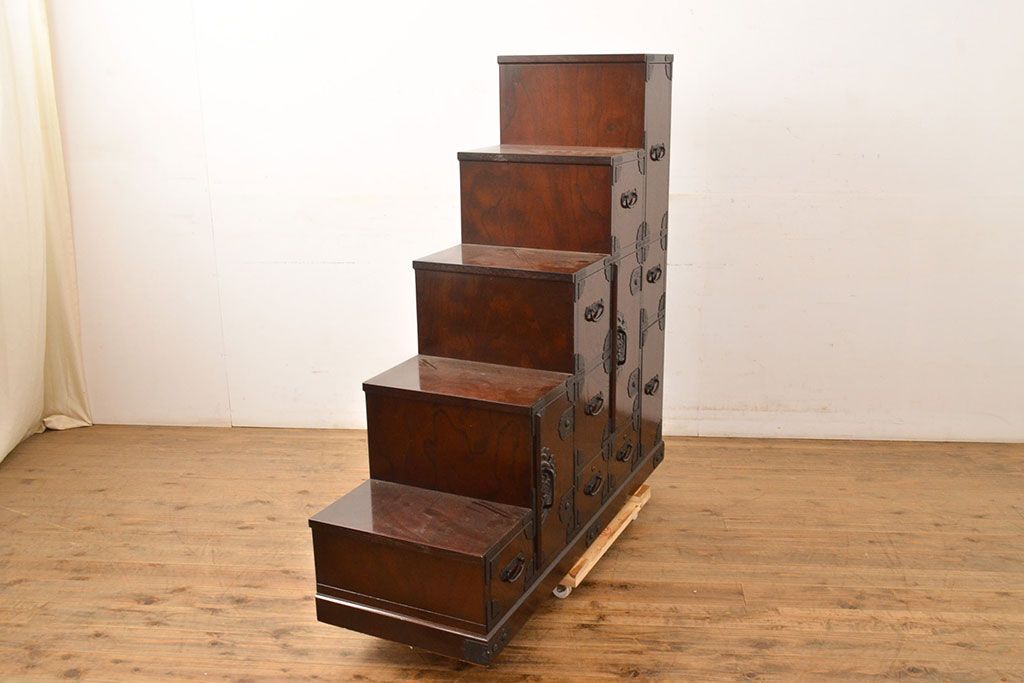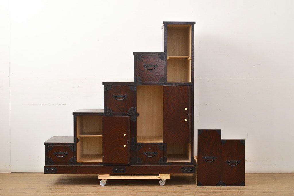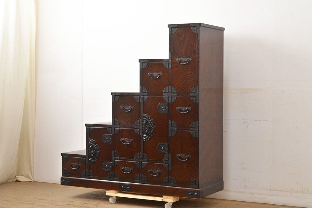 ラフジュ工房> 民芸家具 > 中古 美品 筑後民芸 美しい木目が高級感を演出する階段箪笥(和タンス、収納箪笥)(定価約26万円)(R-051198)