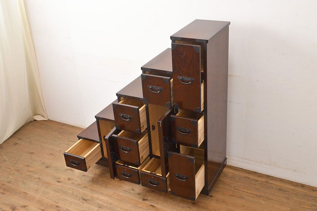 ラフジュ工房> 和箪笥 > 中古 美品 筑後民芸 美しい木目が高級感を演出する階段箪笥(和タンス、収納箪笥)(定価約26万円)(R-051198)