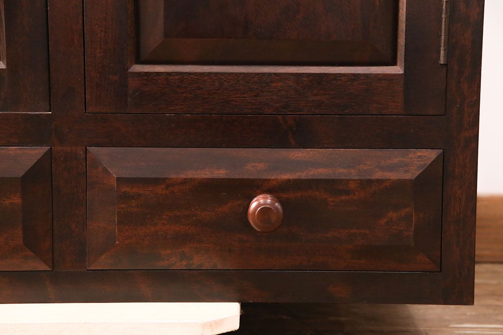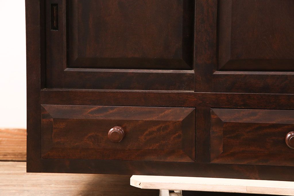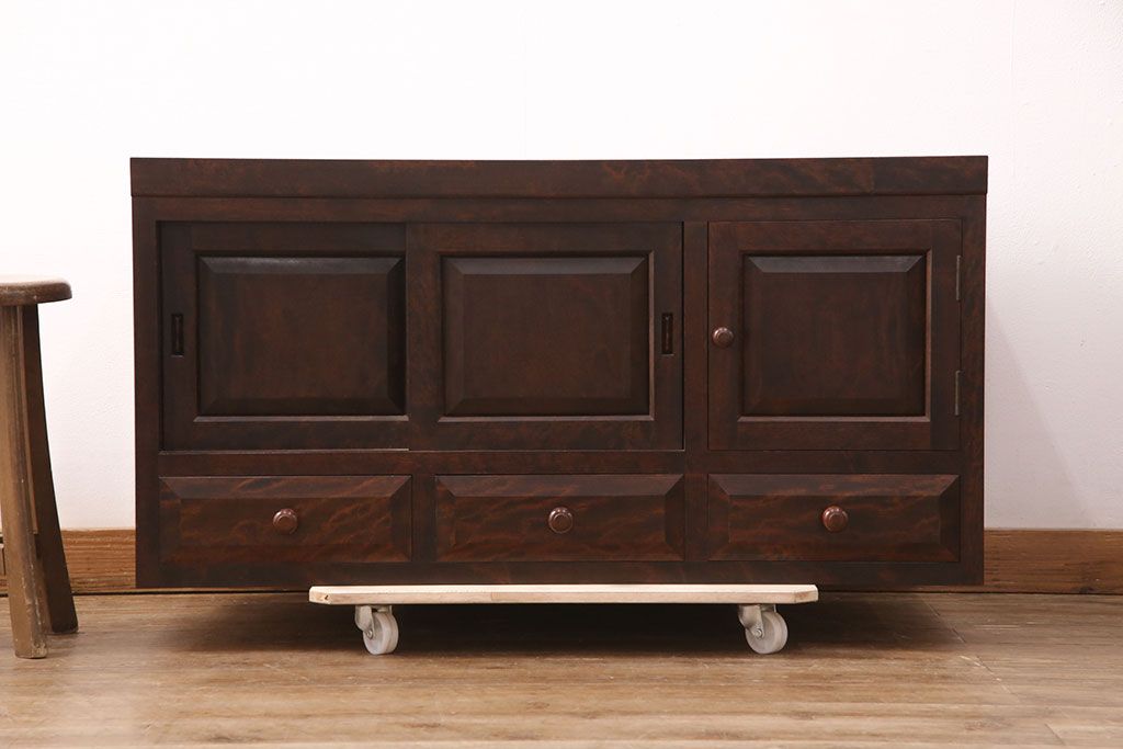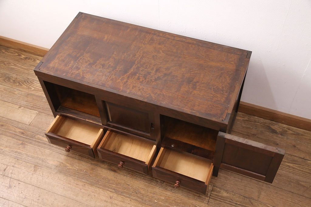 中古 美品 松本民芸家具 落ち着きのあるシックな佇まいが魅力の脚(台輪)付きリビングボード(テレビ台、ローボード、テレビボード)(R-051400)