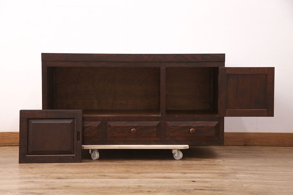 キャビネット・戸棚> テレビ台・ローボード > 中古 美品 松本民芸家具 落ち着きのあるシックな佇まいが魅力の脚(台輪)付きリビングボード(テレビ台、ローボード、テレビボード)(R-051400)