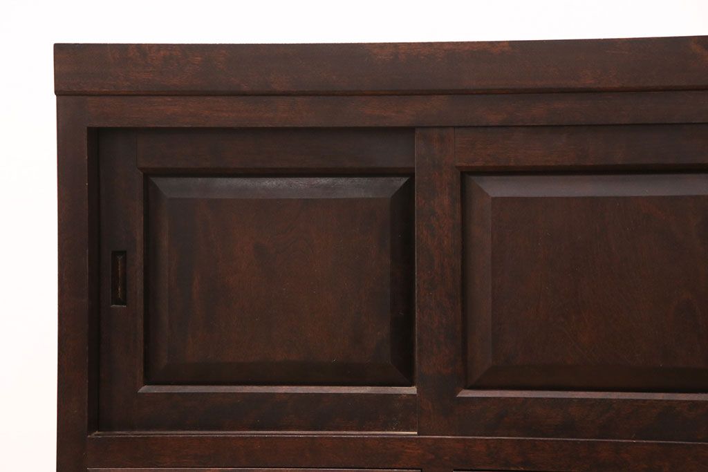 キャビネット・戸棚> サイドボード > 中古 美品 松本民芸家具 落ち着きのあるシックな佇まいが魅力の脚(台輪)付きリビングボード(テレビ台、ローボード、テレビボード)(R-051400)