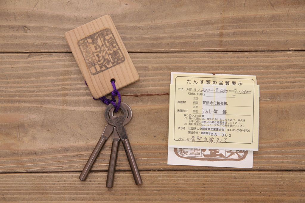 鍵は付属します。画像にありますように、袋に入れお付けします。スムーズに動くように調整して仕上げますが、あくまでも古いものや中古品ですので、長期の使用保証は出来かねます。ご購入後不具合が発生した場合は、当店でサポートさせていただきますので、お気軽にご相談くださいませ。