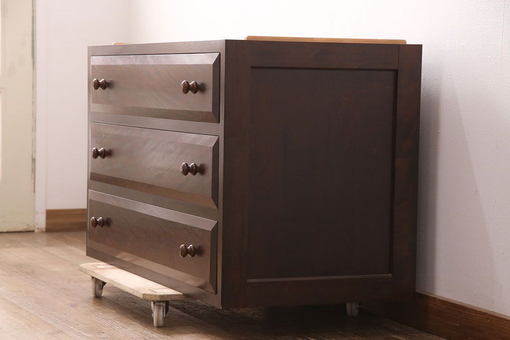 民芸家具 > 中古 美品 松本民芸家具 天板リメイク 深い色合いのシックなチェスト(サイドボード、引き出し、洋服タンス)(R-051401)