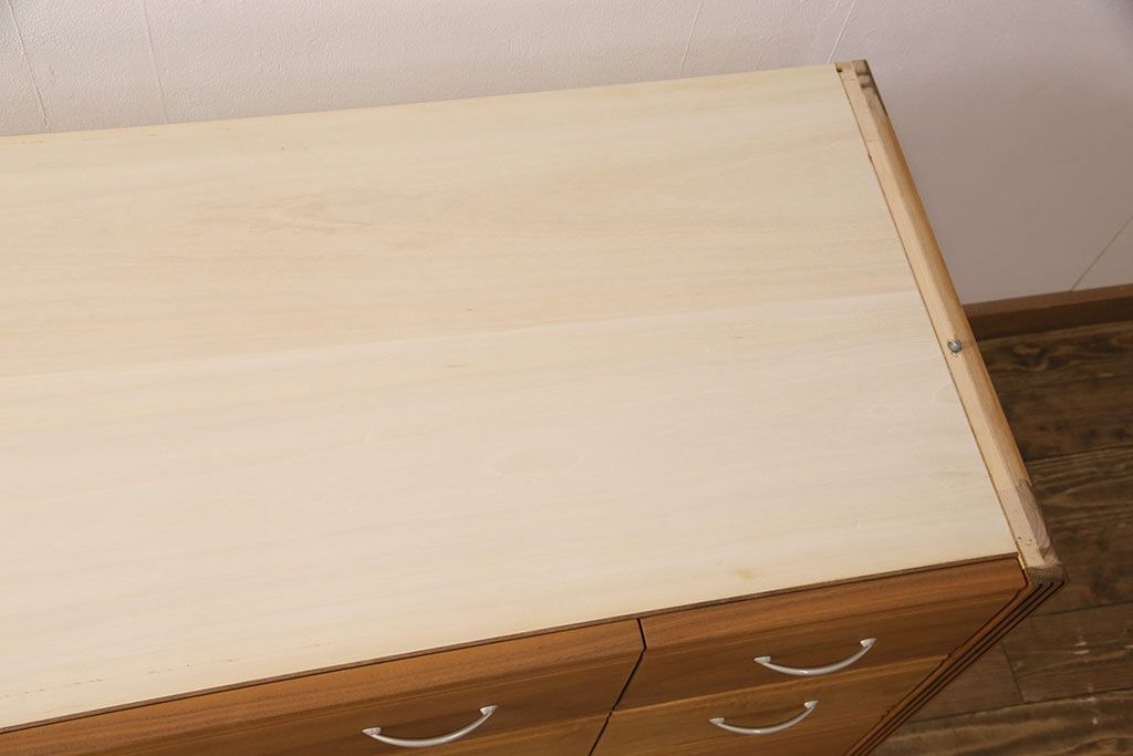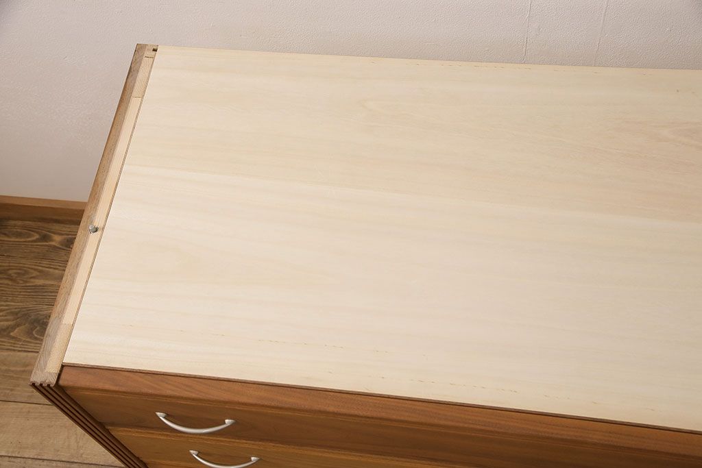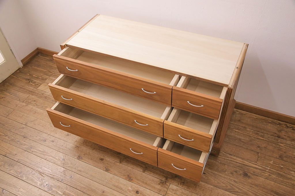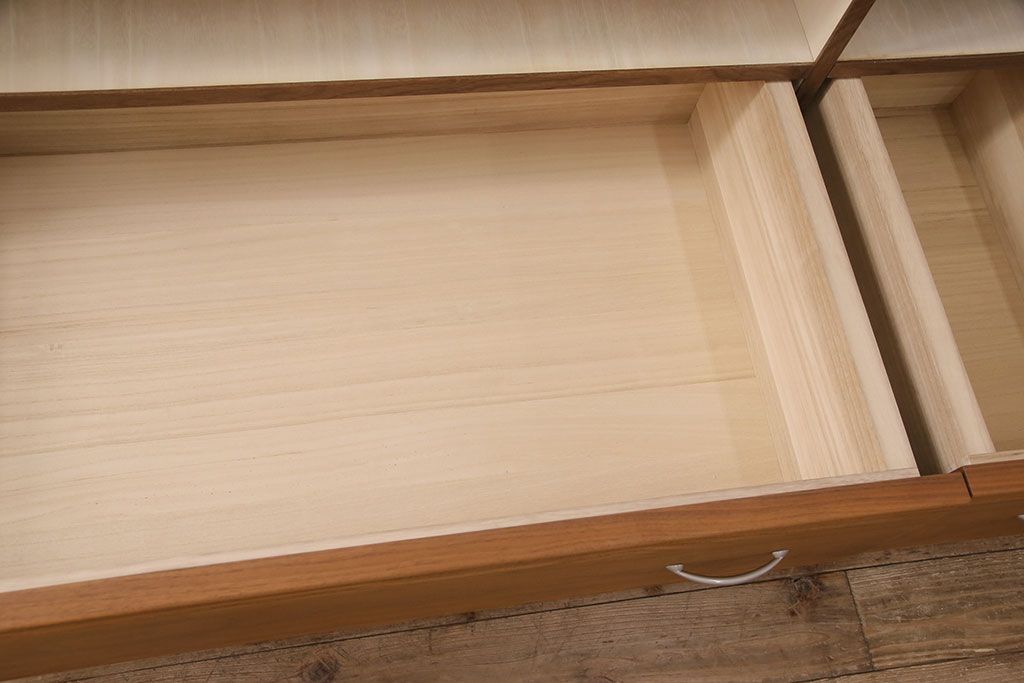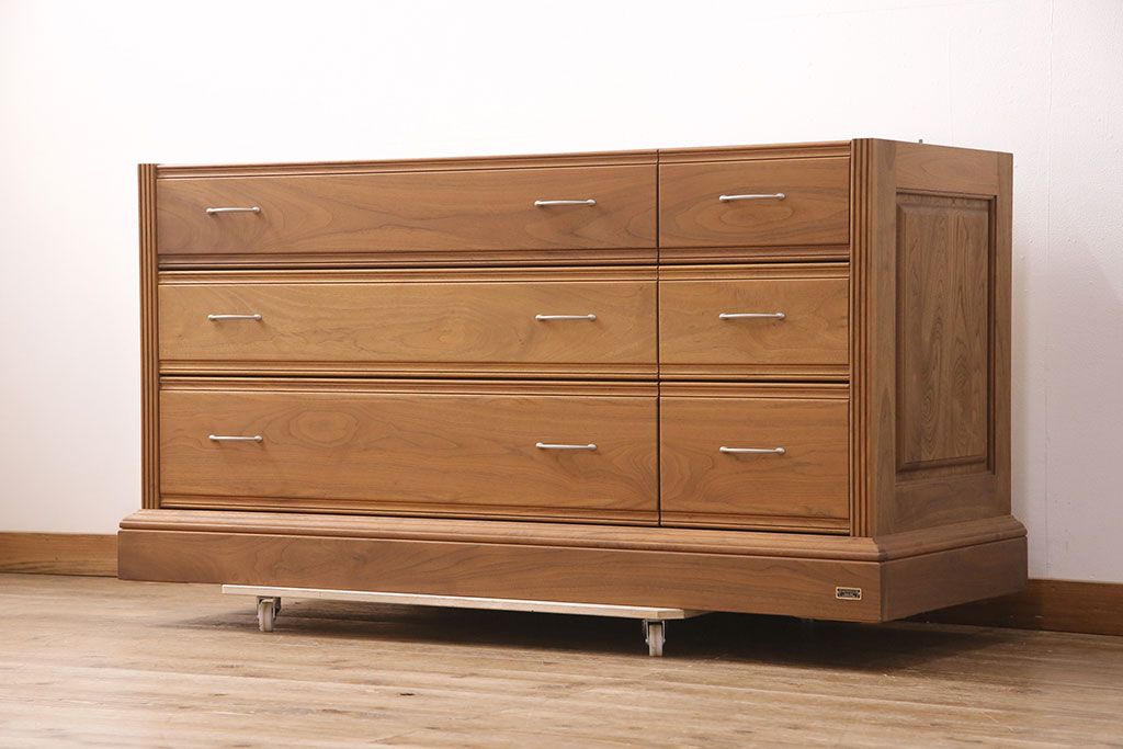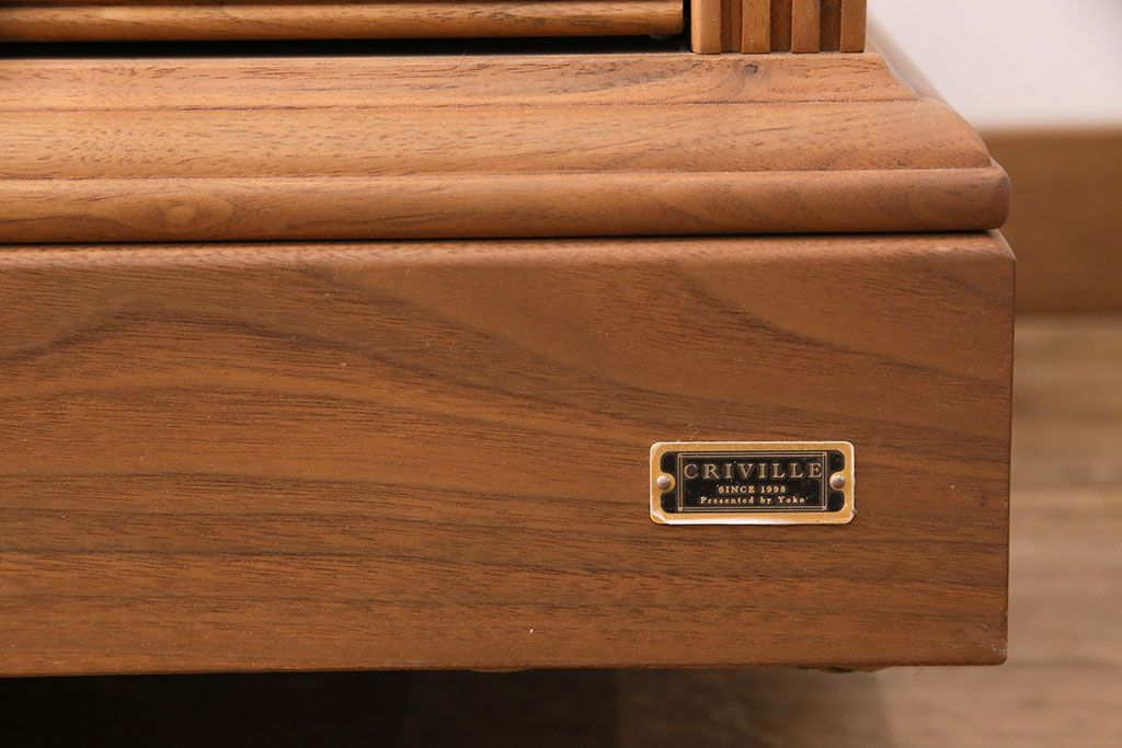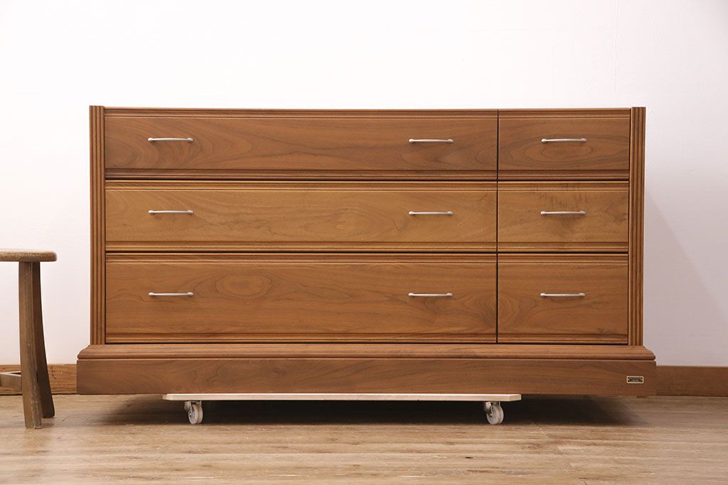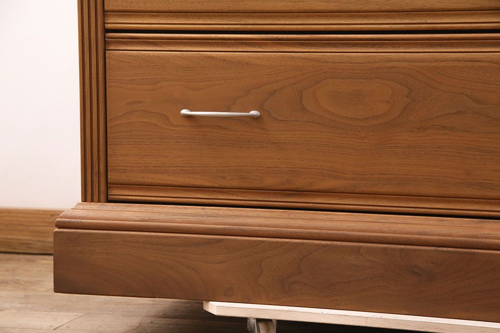 中古 シャルドネ(CHARDONNAY) CRIVILLE(クリビーレ) 天板リメイク ウォールナット材 ナチュラルな雰囲気が素敵なローチェスト(引き出し、リビングボード)(R-051564)