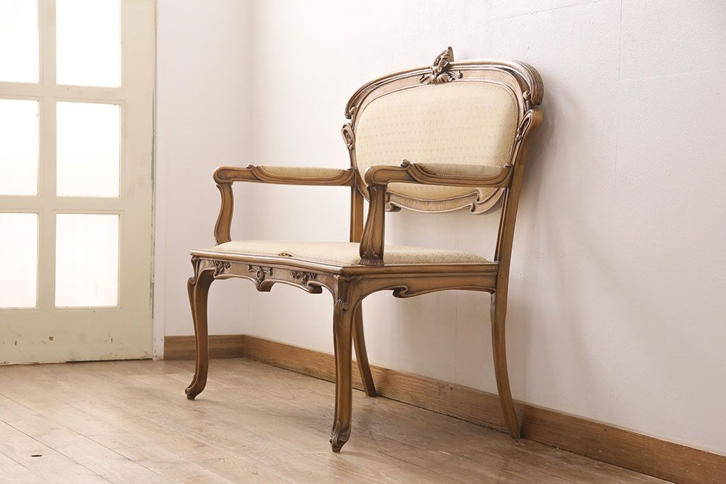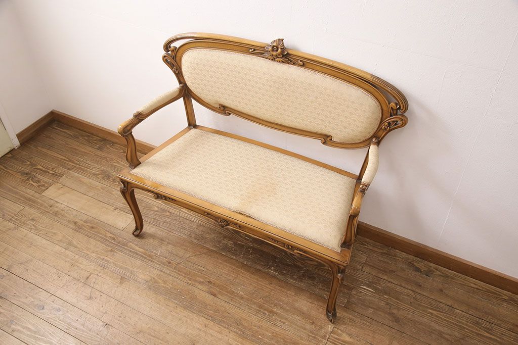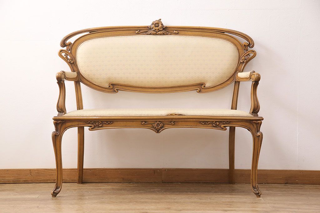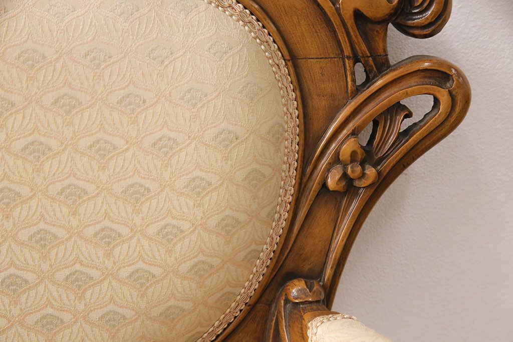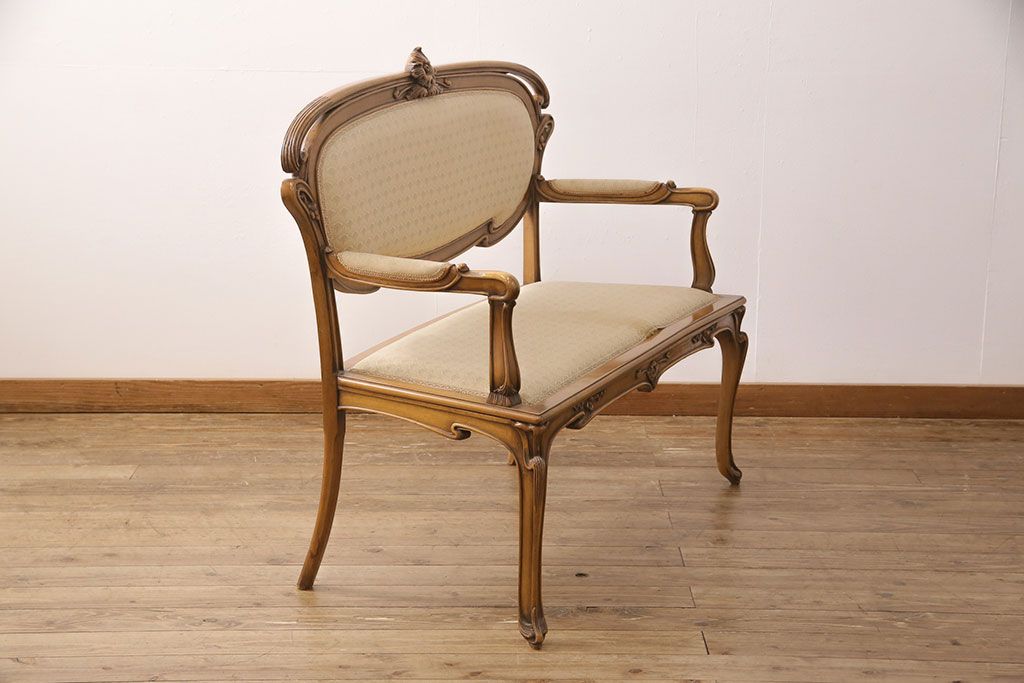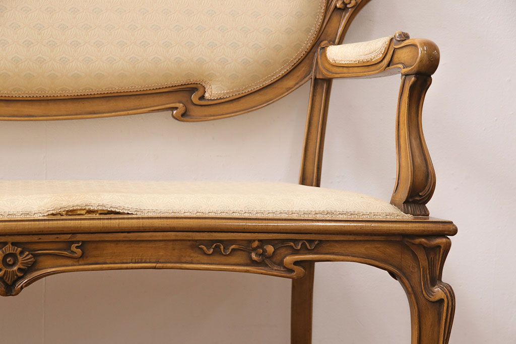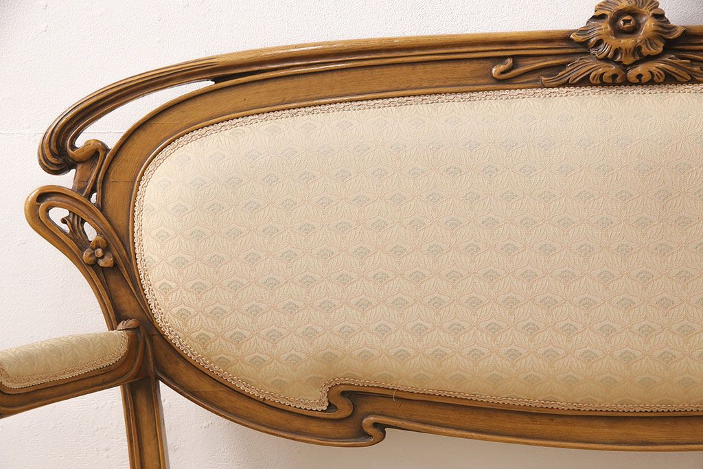 ヨーロッパヴィンテージ 最高級イタリア輸入家具 CLItalia(CLイタリア)社 アールヌーヴォー様式 優美な佇まいのアームソファ(2人掛け、二人掛け、ビンテージ)(R-051578)(検索ワード:メデア、Medea)です。