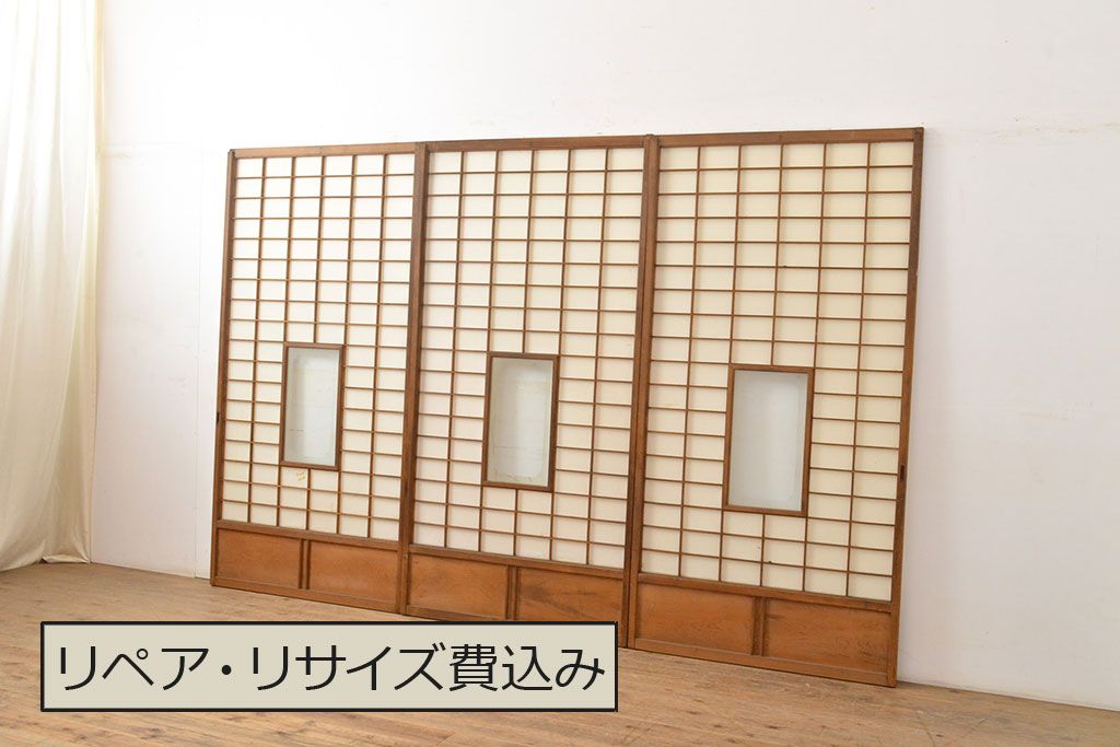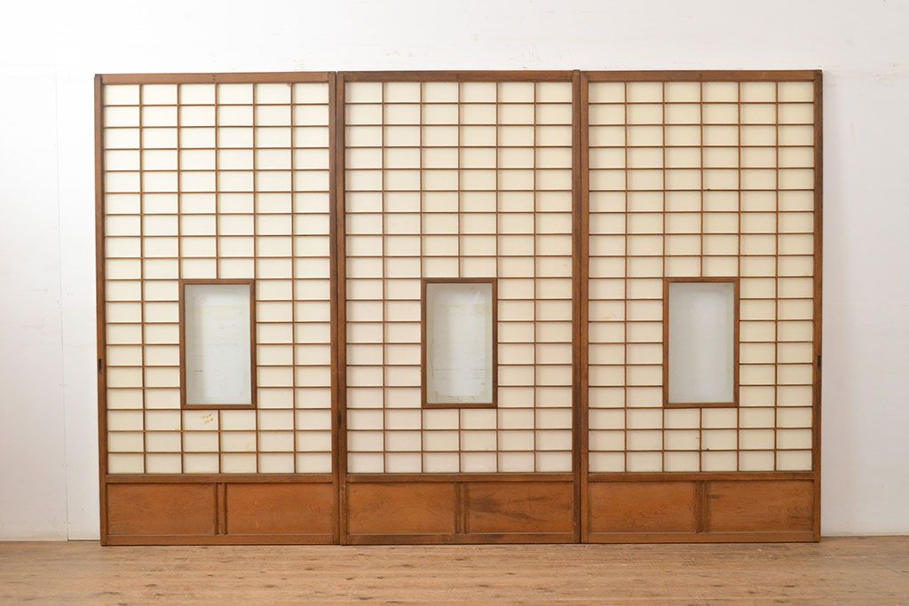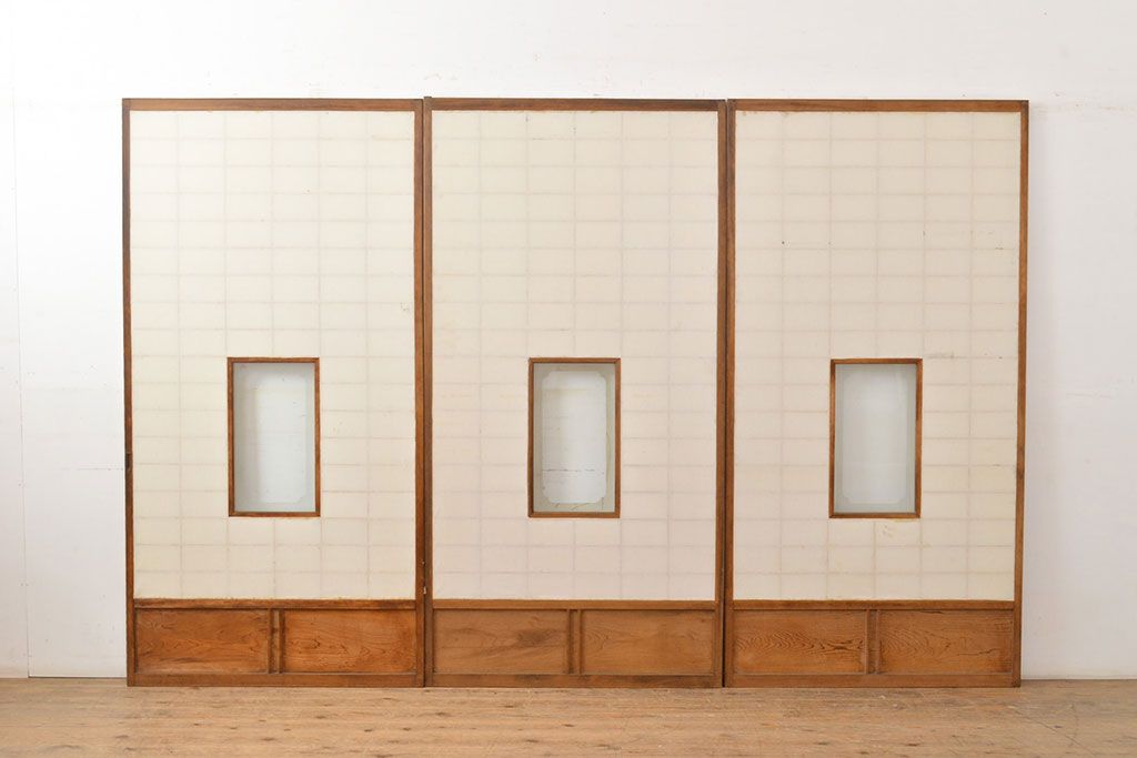 1枚目の画像にある建具3枚のうち、1枚のみ計測致しました。各サイズ、重量は1枚の数値を記載しておりますので、そちらをご参考ください。