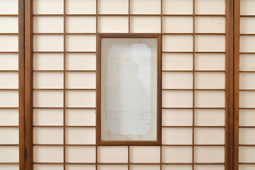和製アンティーク 季節の移ろいが楽しめる額入り障子戸3枚セット(引き戸、建具)(R-051437)