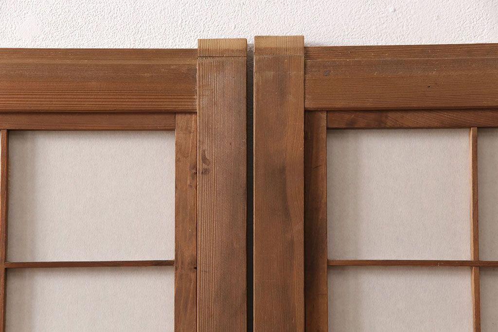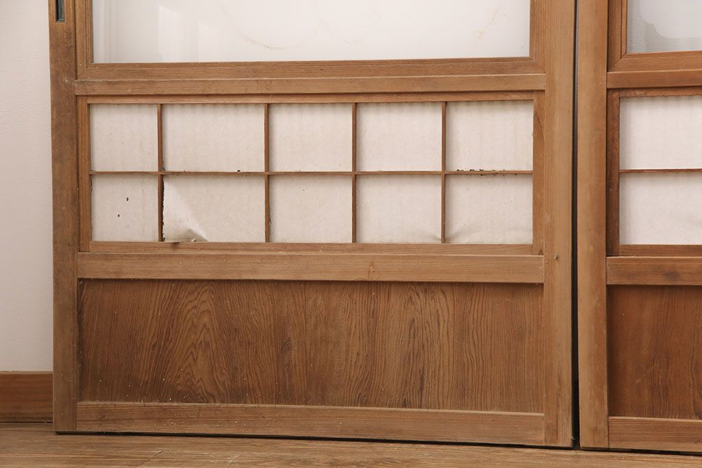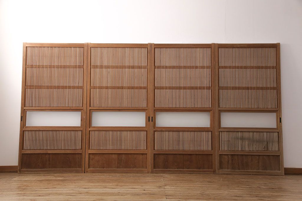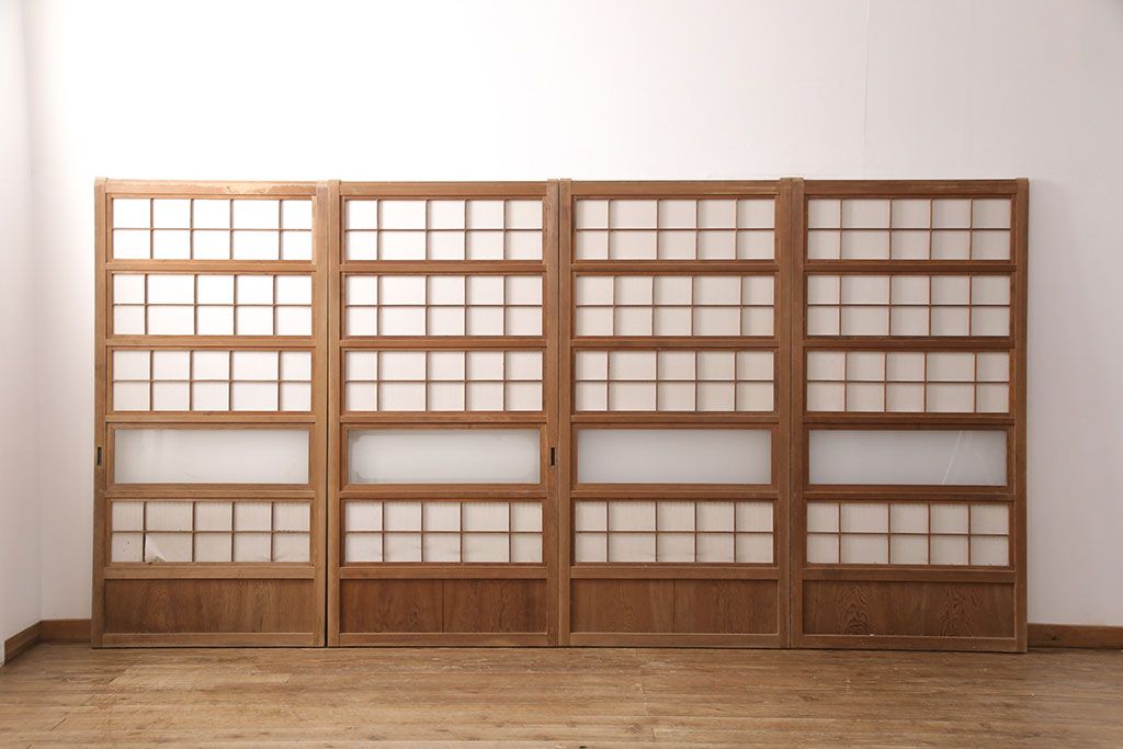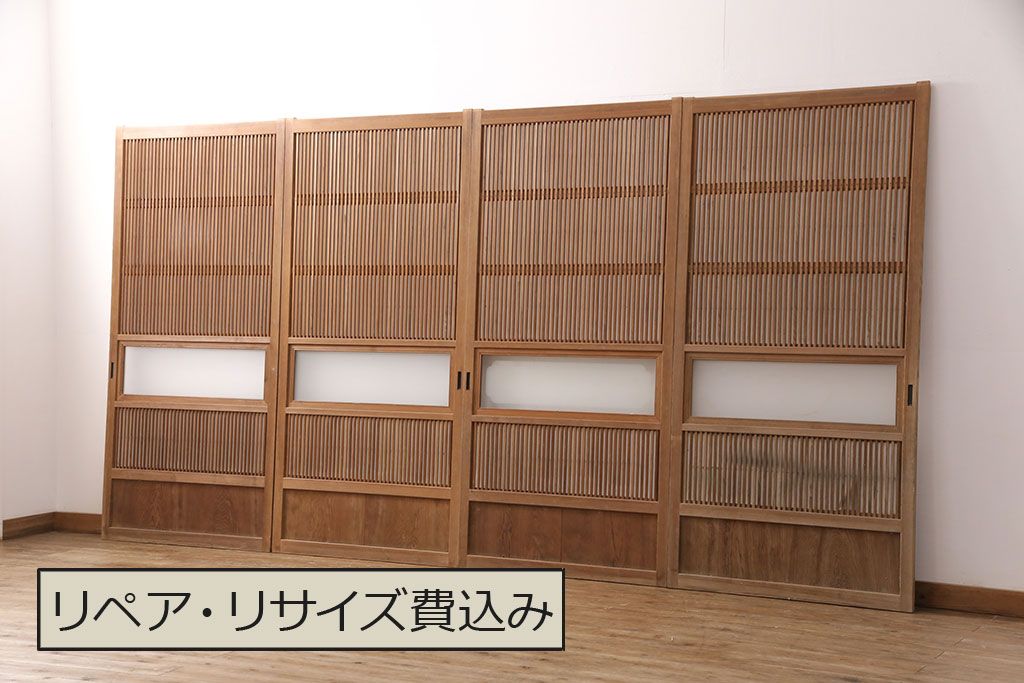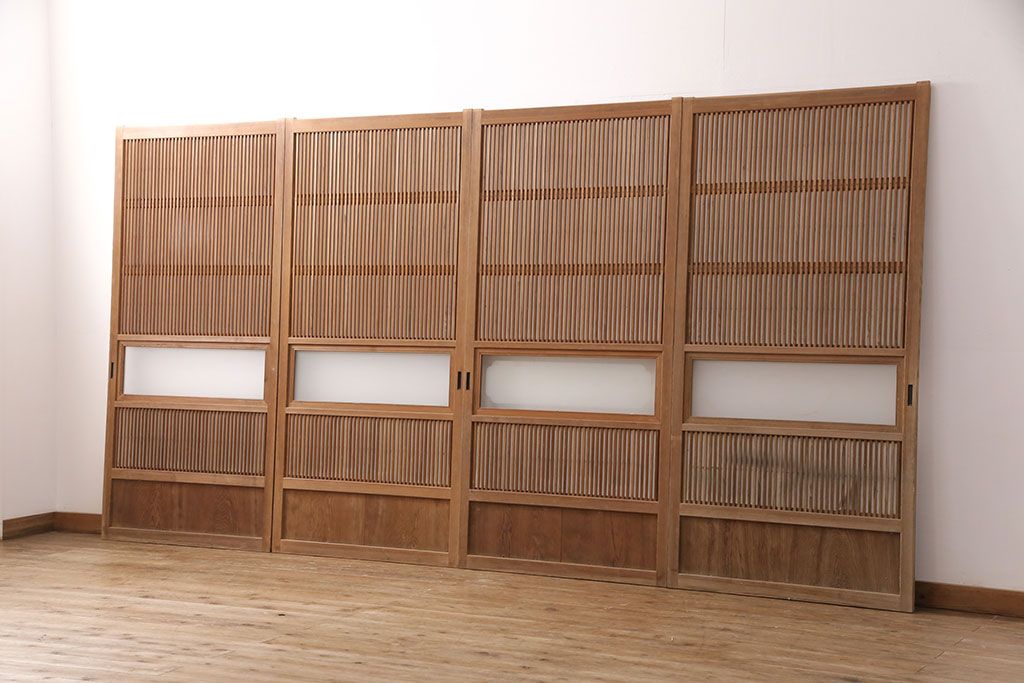 ラフジュ工房> ドア・建具> 4枚〜セット > 和製アンティーク 情緒ある和の雰囲気作りにおすすめの裏障子戸付き格子戸4枚セット(建具、引き戸)(R-051295)