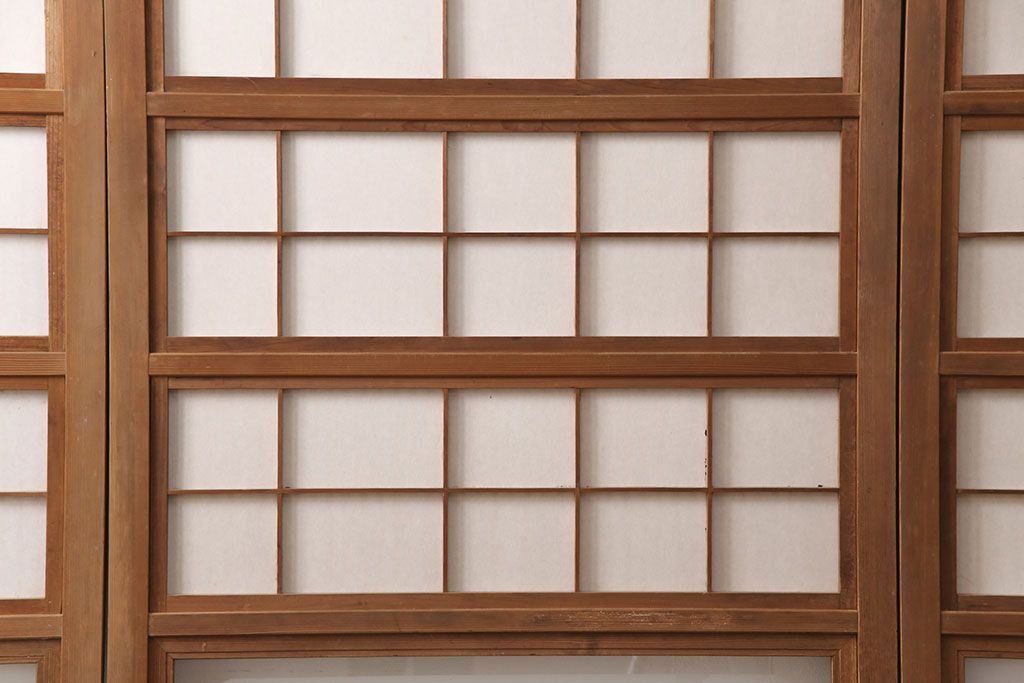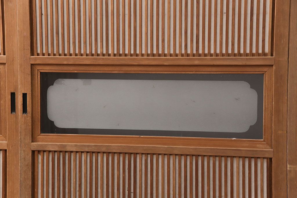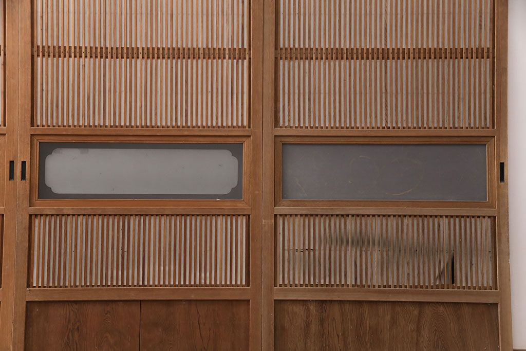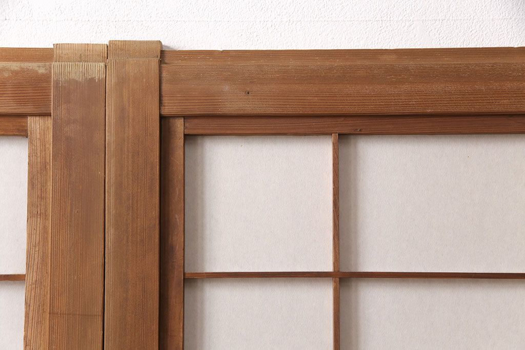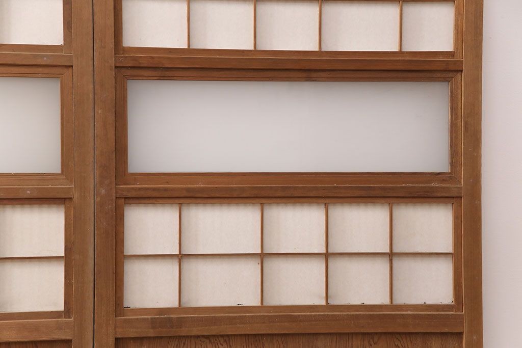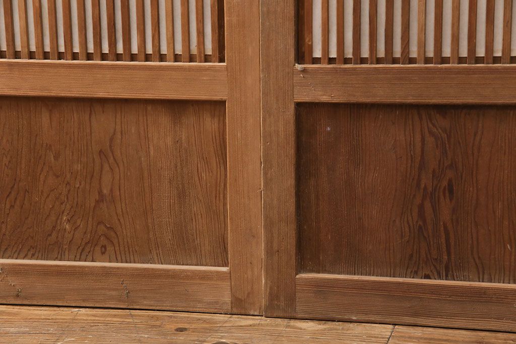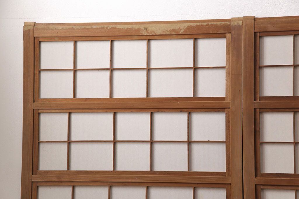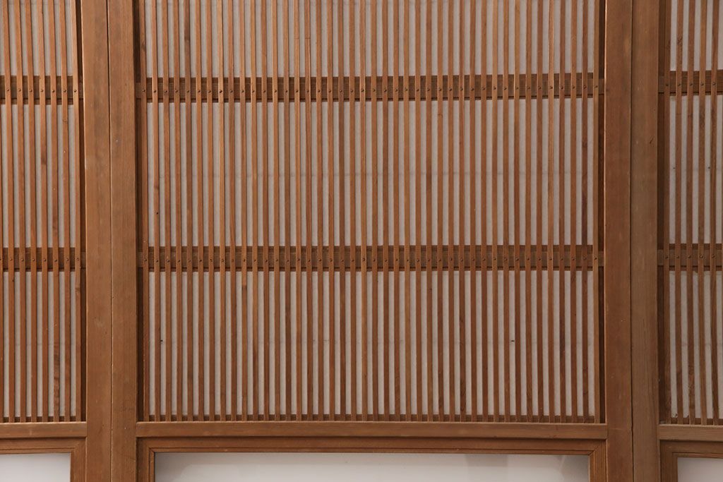 ラフジュ工房> ドア・建具> 格子戸 > 和製アンティーク 情緒ある和の雰囲気作りにおすすめの裏障子戸付き格子戸4枚セット(建具、引き戸)(R-051295)
