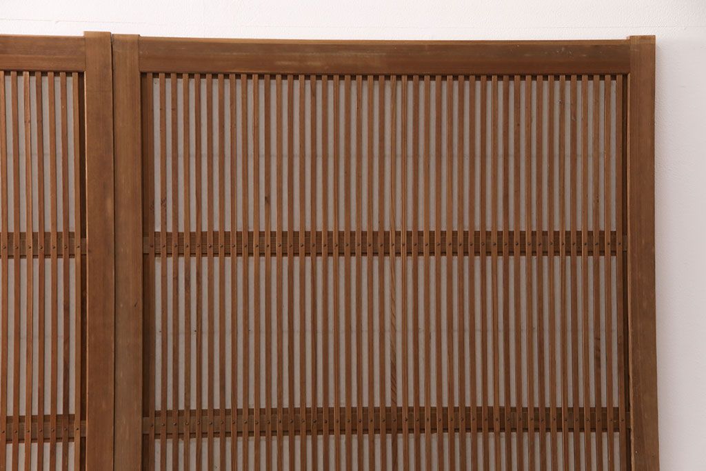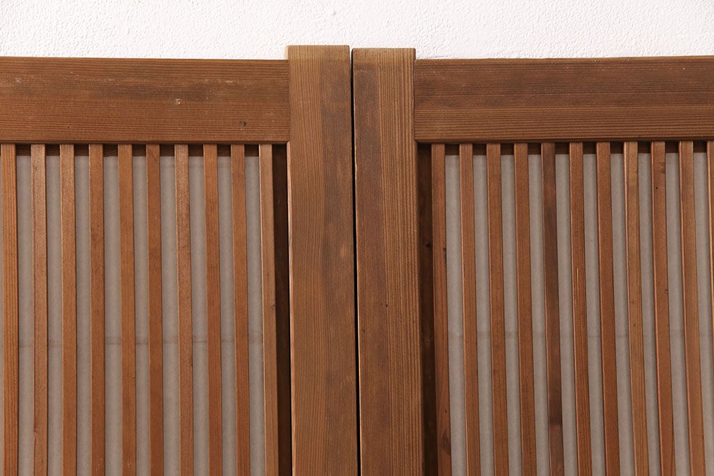 ラフジュ工房> ドア・建具> 障子戸 > 和製アンティーク 情緒ある和の雰囲気作りにおすすめの裏障子戸付き格子戸4枚セット(建具、引き戸)(R-051295)