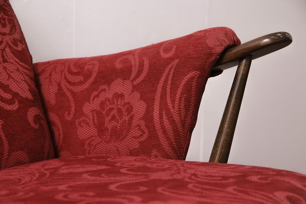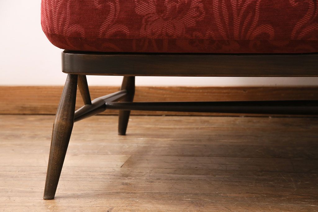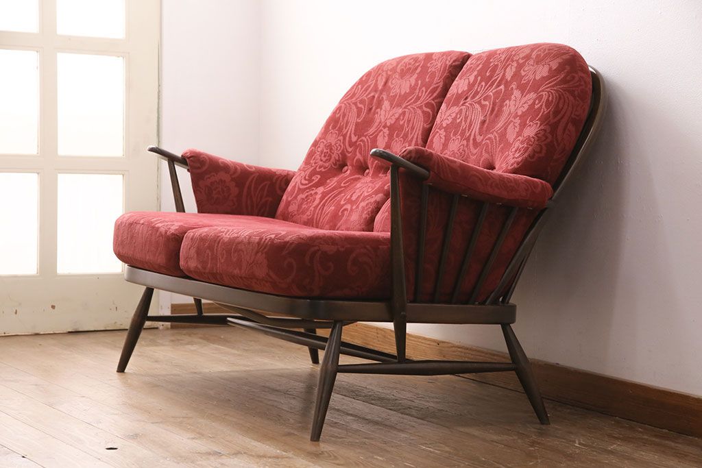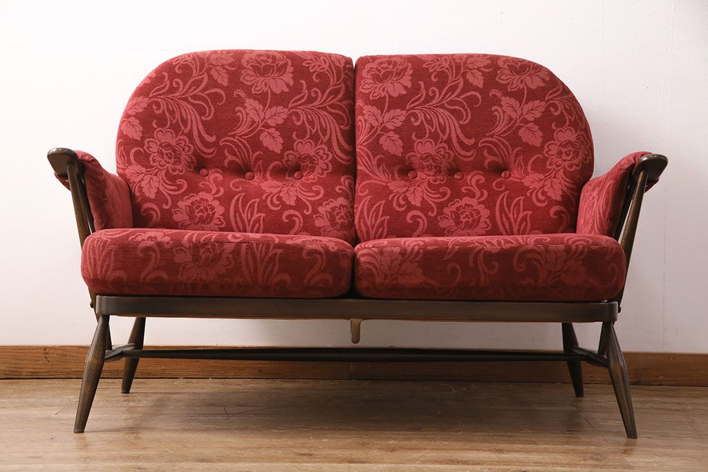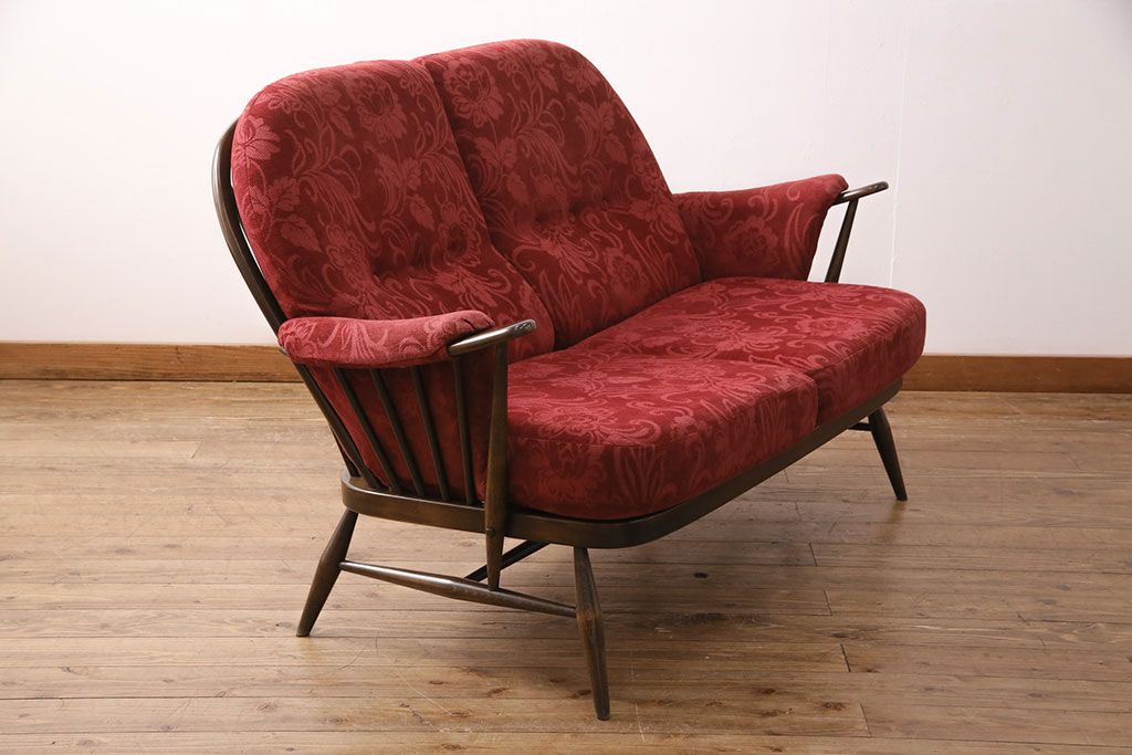 ラフジュ工房> ソファ> 2人掛けソファ > ヴィンテージ家具 ERCOL(アーコール) 艶やかなカラーが目を引くスツール(オットマン)付きビンテージ二人掛けソファ(アームソファ)(R-051667)