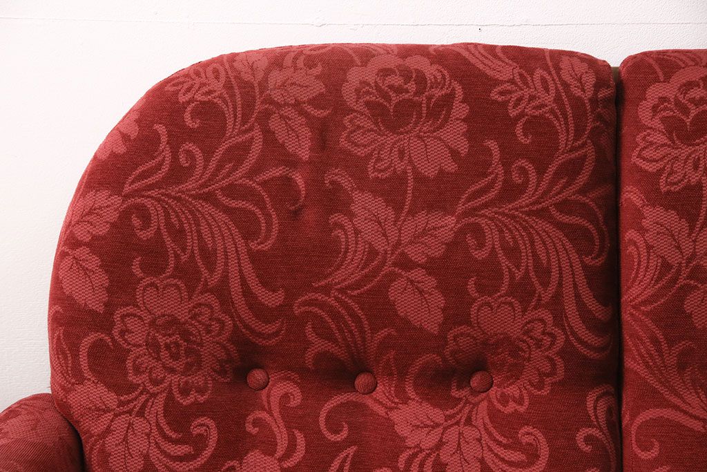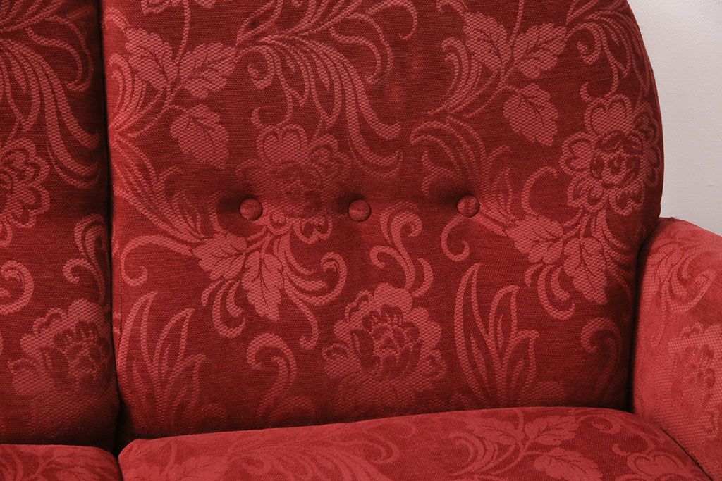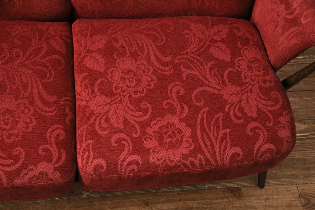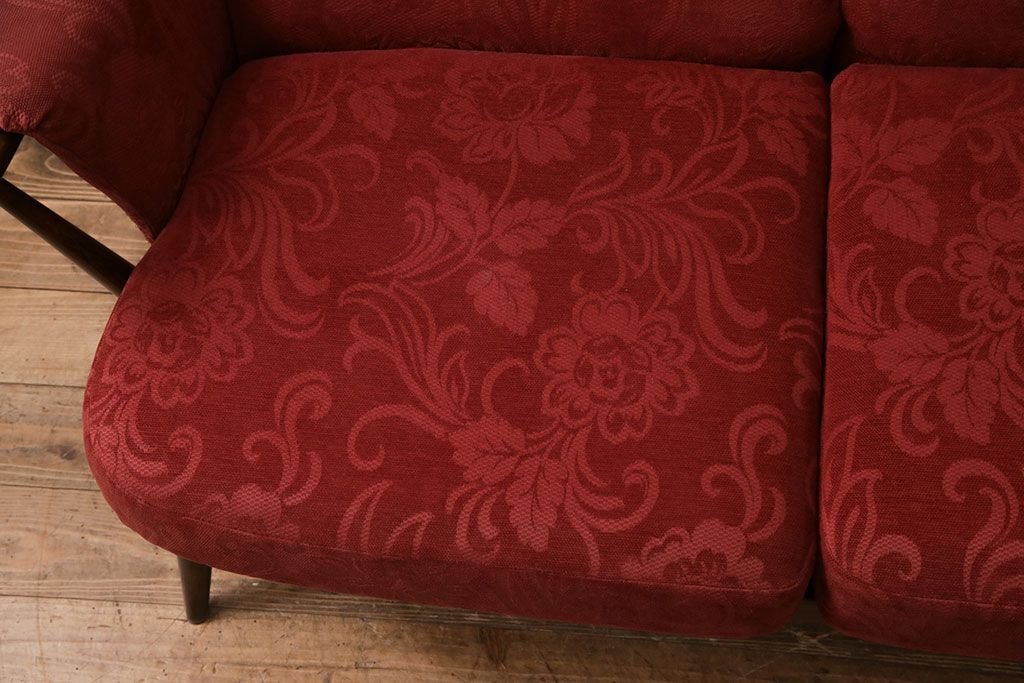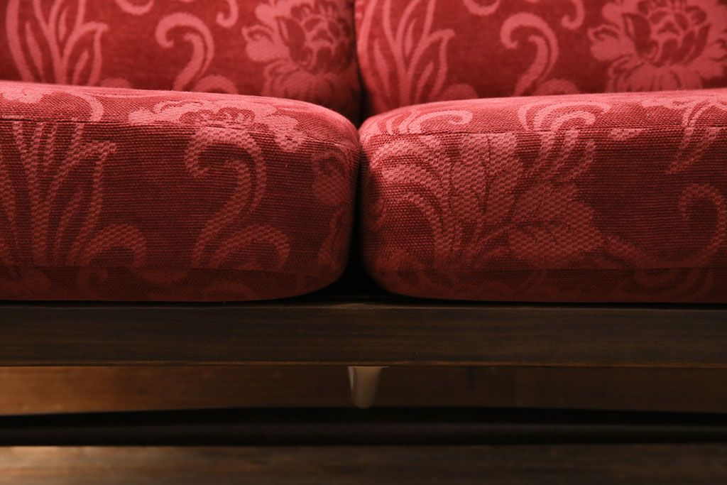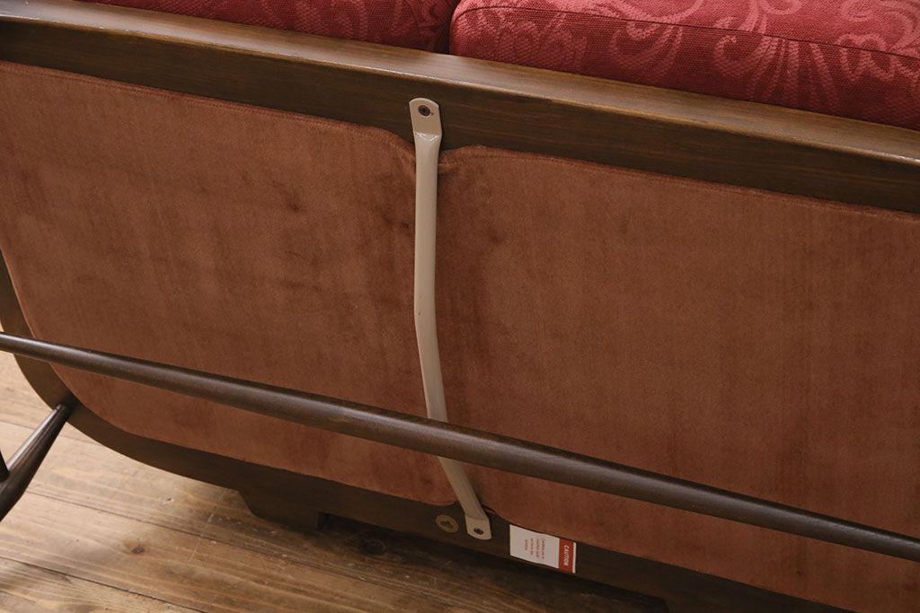 ラフジュ工房> ソファ> 2人掛けソファ > ヴィンテージ家具 ERCOL(アーコール) 艶やかなカラーが目を引くスツール(オットマン)付きビンテージ二人掛けソファ(アームソファ)(R-051667)