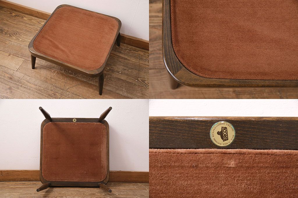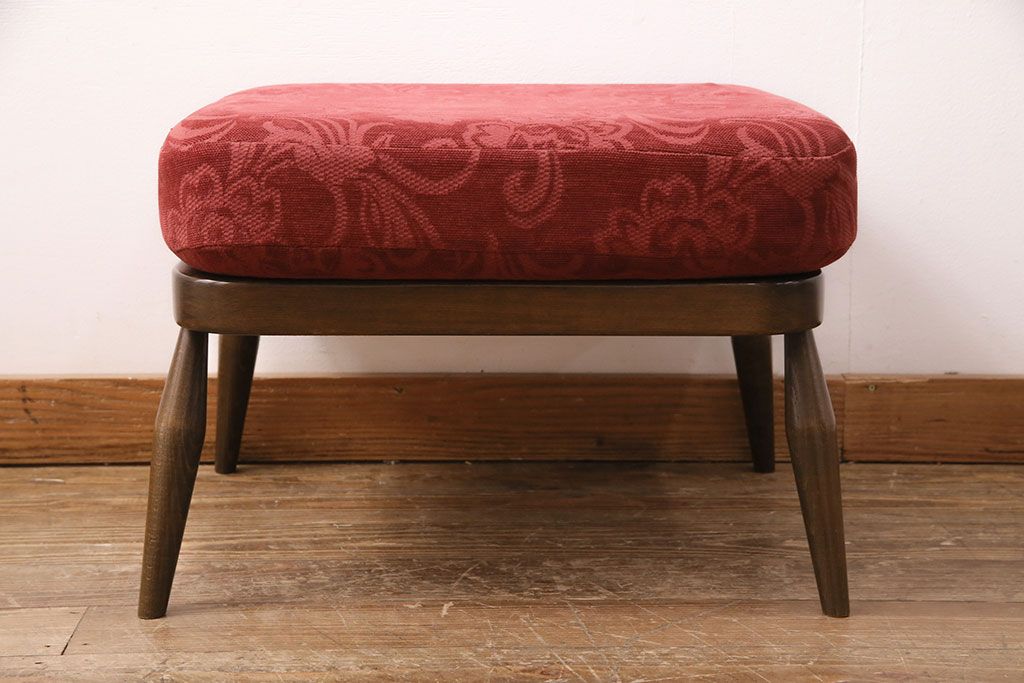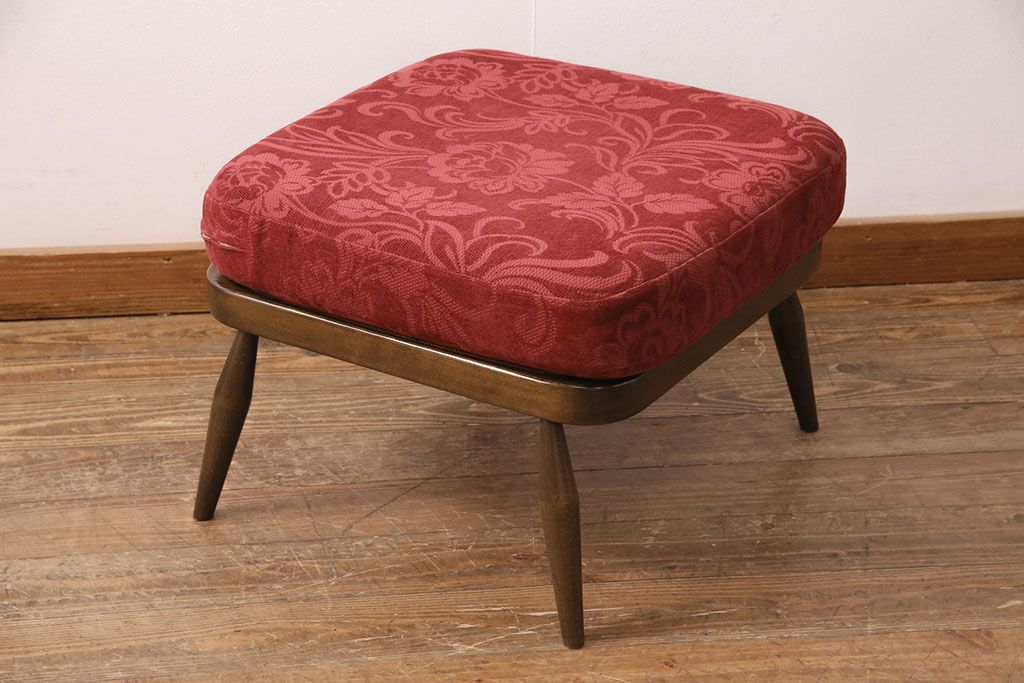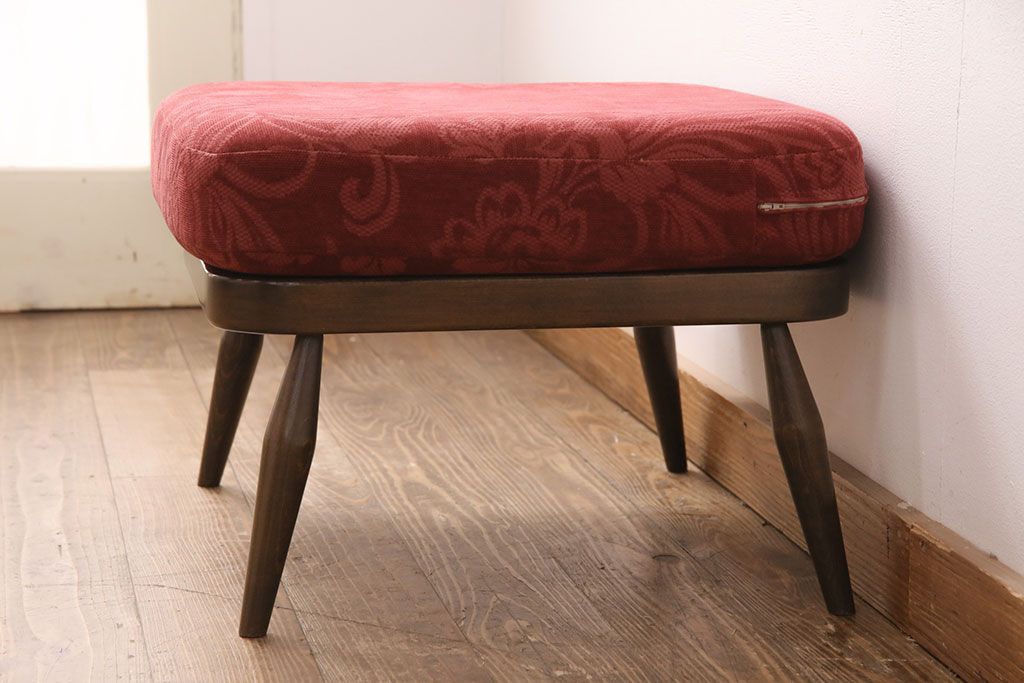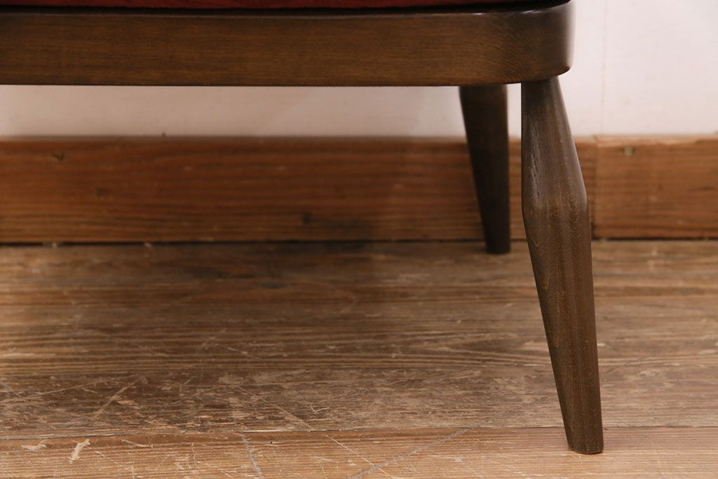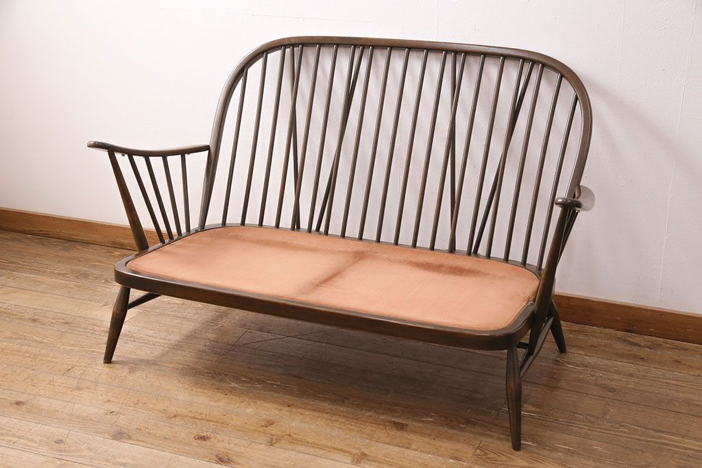 ヴィンテージ家具 ERCOL(アーコール) 艶やかなカラーが目を引くスツール(オットマン)付きビンテージ二人掛けソファ(アームソファ)(R-051667)