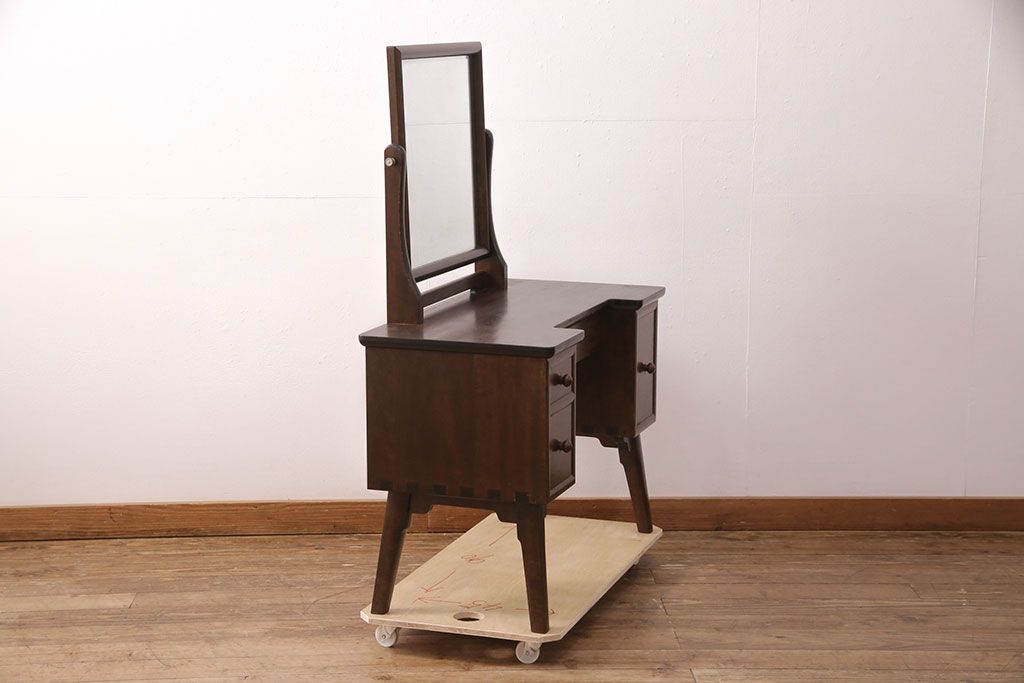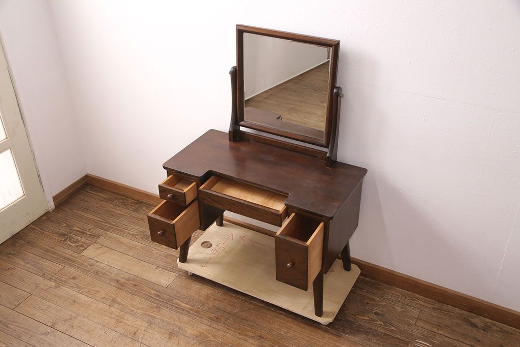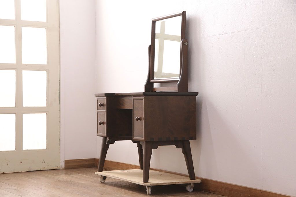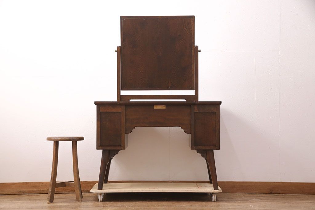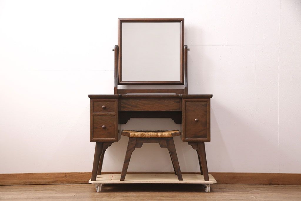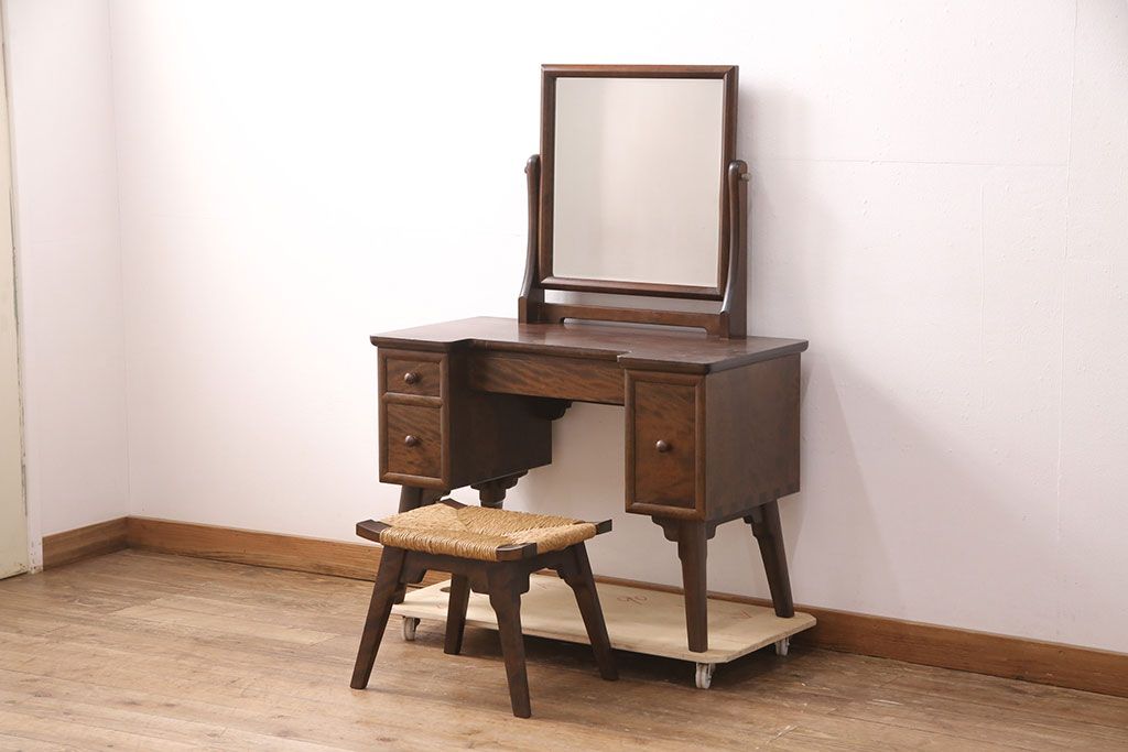 ラフジュ工房> 民芸家具 > 中古 美品 松本民芸家具 ラッシ座面が魅力!洗練された大人の空間を演出するドレッサー&スツールセット(鏡台、ミラー、椅子)(R-051209)