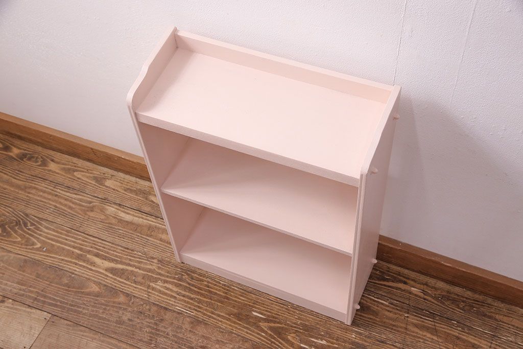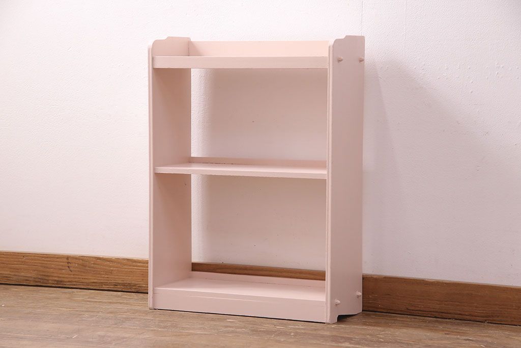 ラフジュ工房> オープンラック・シェルフ> 本棚 > 和製アンティーク ペイント家具 桜色のペイントカラーが可愛らしい、卓上でも使える飾り棚(収納棚、陳列棚、ラック、本棚、店舗什器)(R-051631)