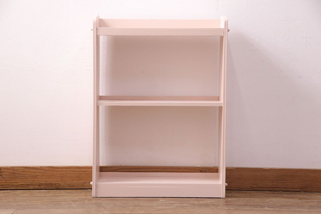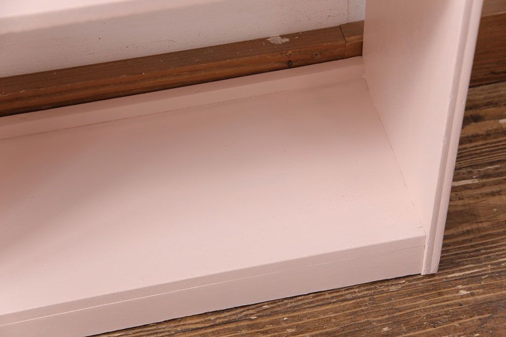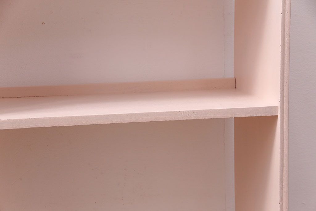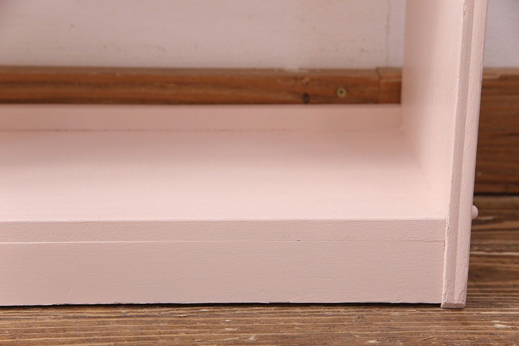 和製アンティーク ペイント家具 桜色のペイントカラーが可愛らしい、卓上でも使える飾り棚(収納棚、陳列棚、ラック、本棚、店舗什器)(R-051631)