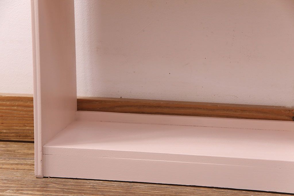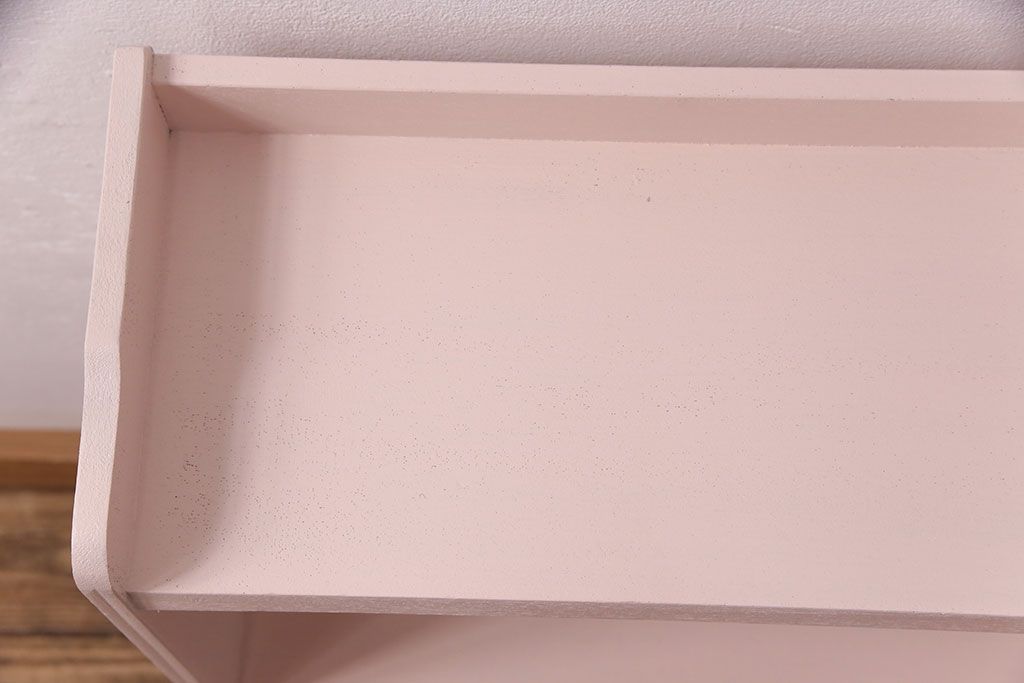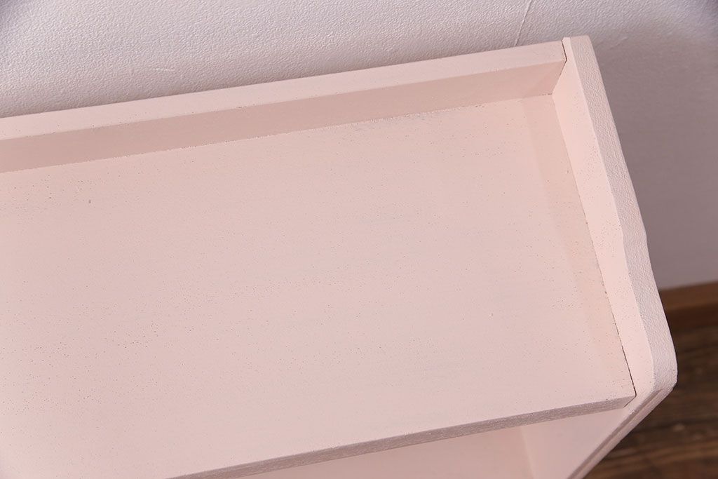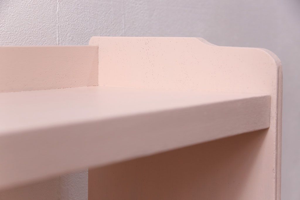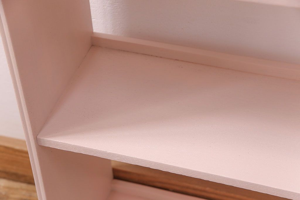 ラフジュ工房> オープンラック・シェルフ > 和製アンティーク ペイント家具 桜色のペイントカラーが可愛らしい、卓上でも使える飾り棚(収納棚、陳列棚、ラック、本棚、店舗什器)(R-051631)