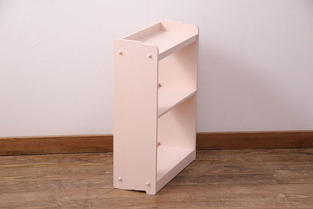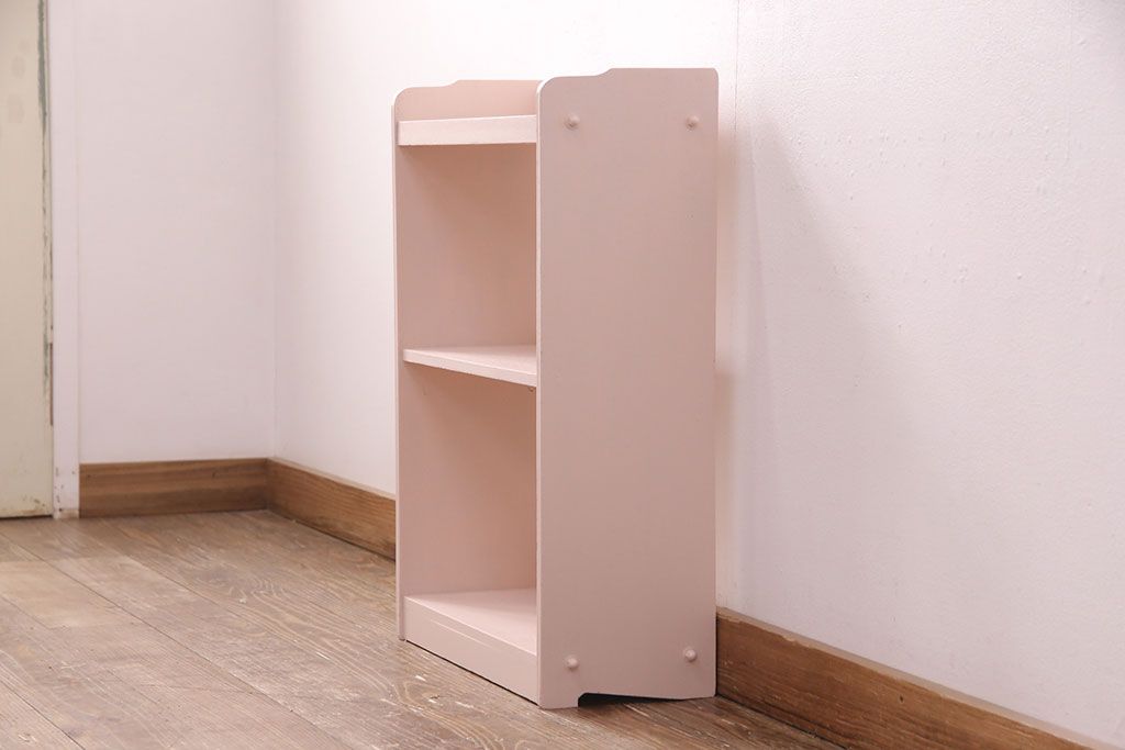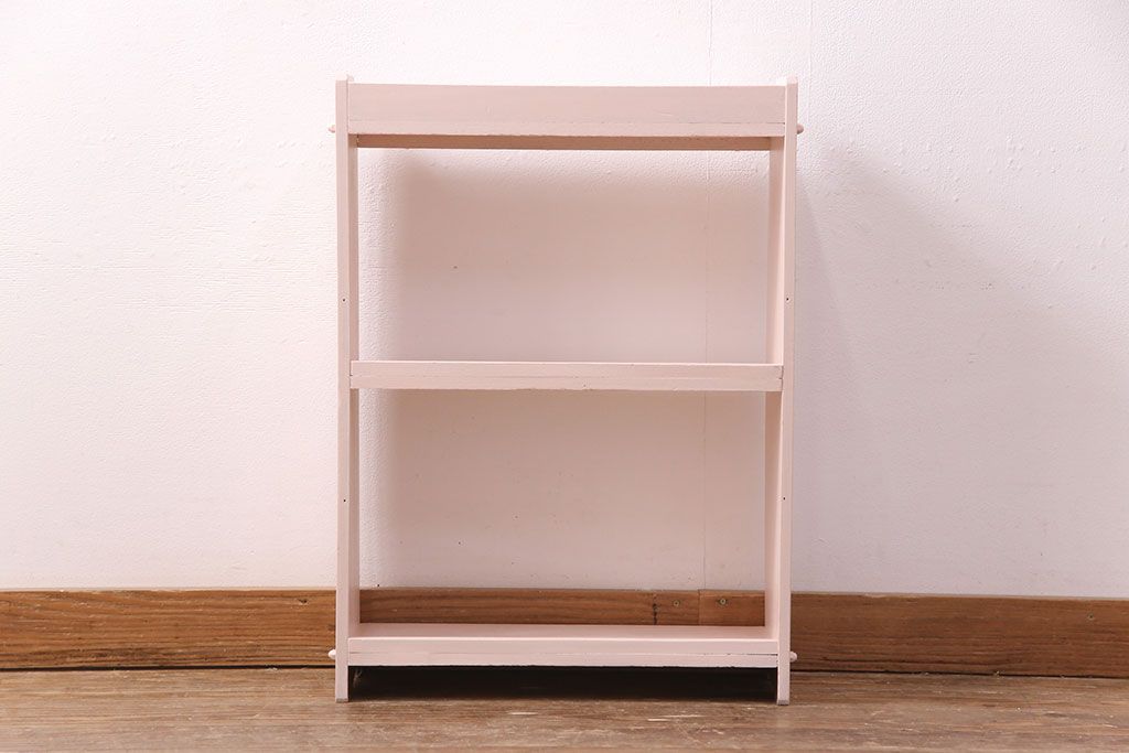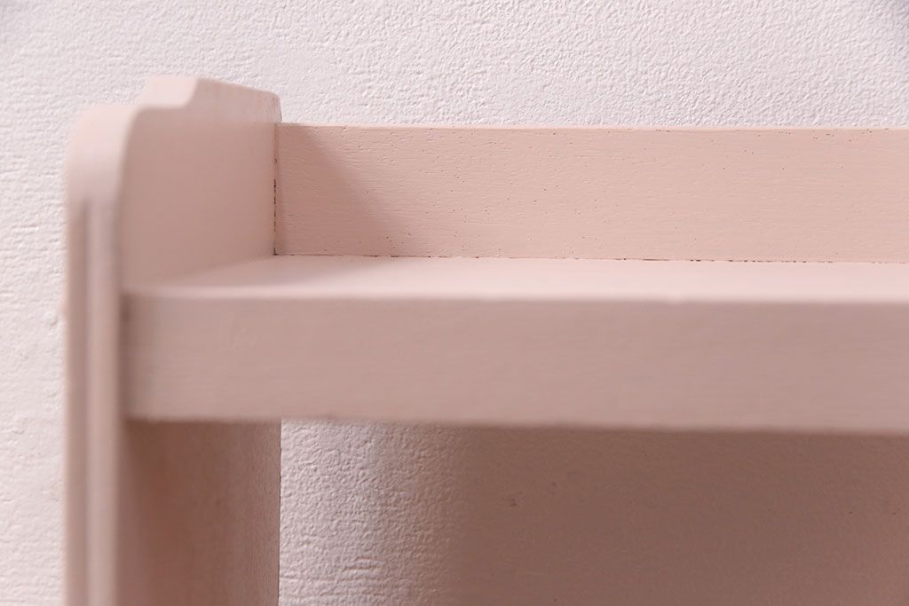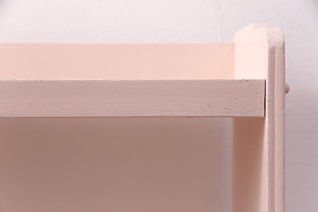 ラフジュ工房> オープンラック・シェルフ > 和製アンティーク ペイント家具 桜色のペイントカラーが可愛らしい、卓上でも使える飾り棚(収納棚、陳列棚、ラック、本棚、店舗什器)(R-051631)