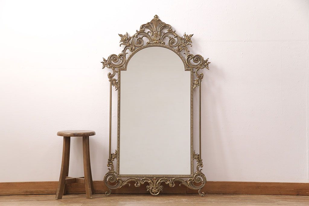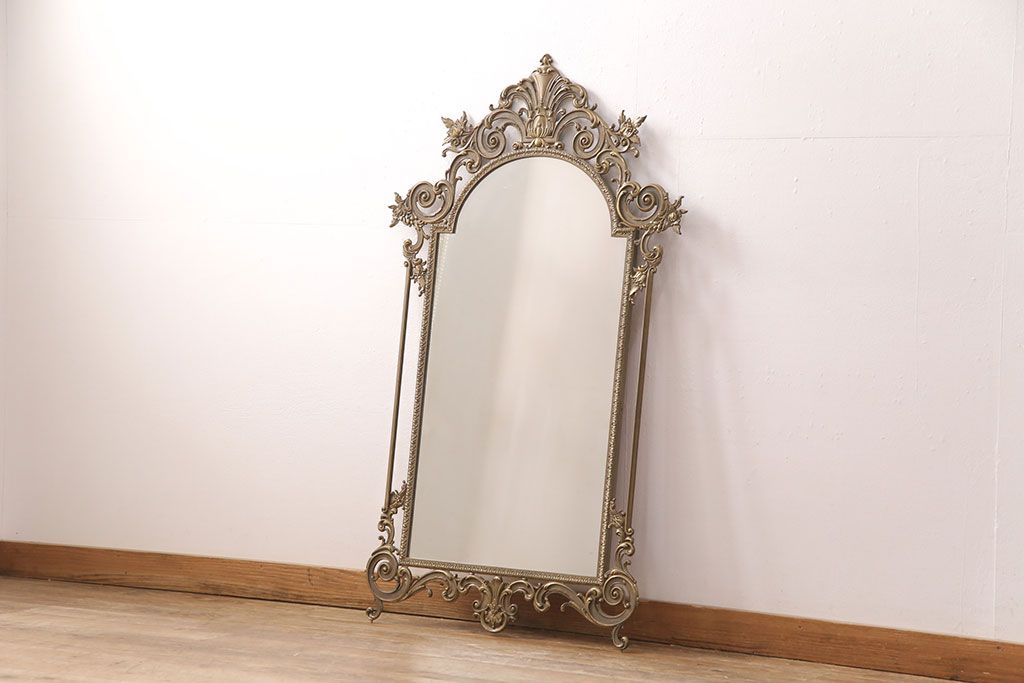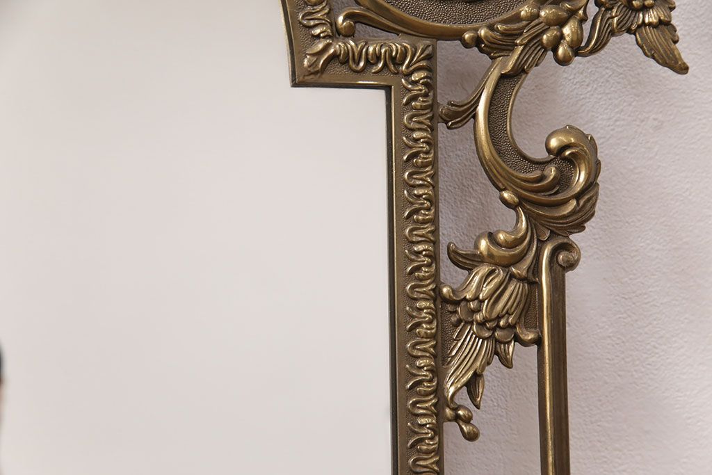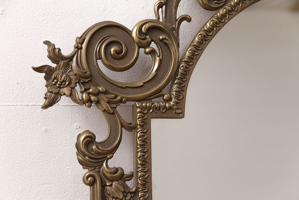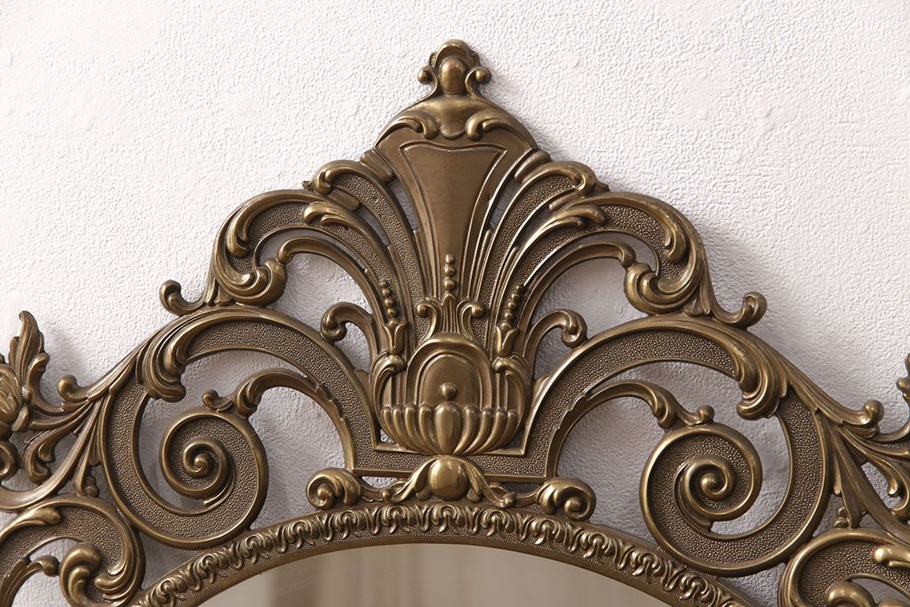 鏡 > ヴィンテージ雑貨 イタリアビンテージ 最高級!繊細な装飾がエレガントな雰囲気を醸しだす真鍮製のウォールミラー(壁掛け鏡)(R-051480)