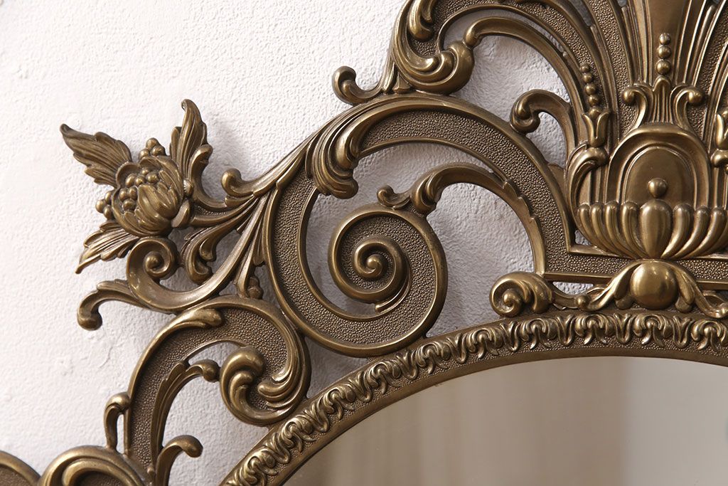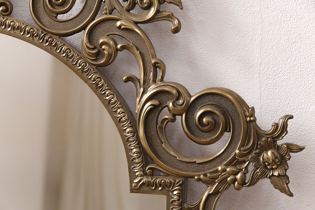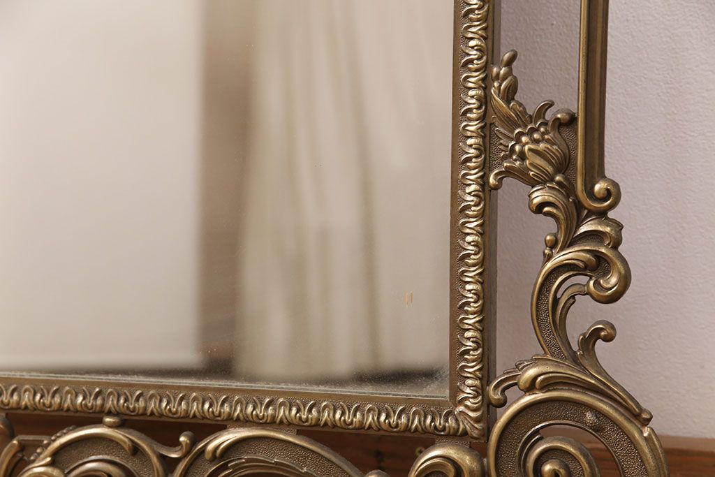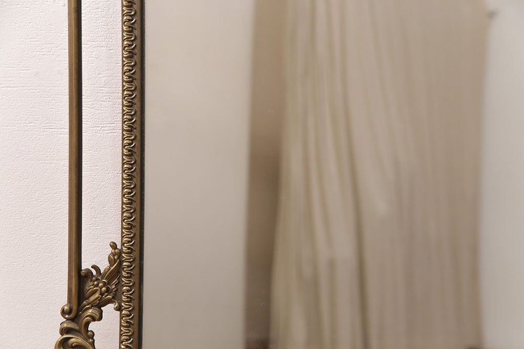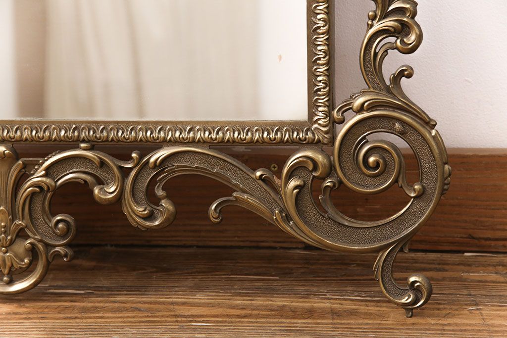 鏡 > ヴィンテージ雑貨 イタリアビンテージ 最高級!繊細な装飾がエレガントな雰囲気を醸しだす真鍮製のウォールミラー(壁掛け鏡)(R-051480)