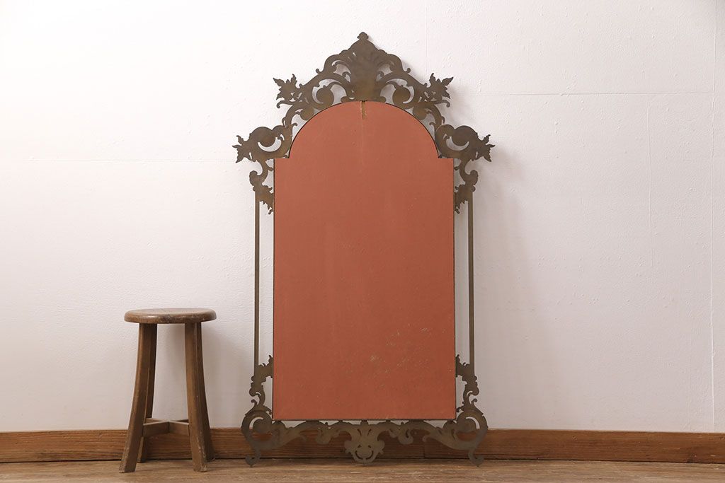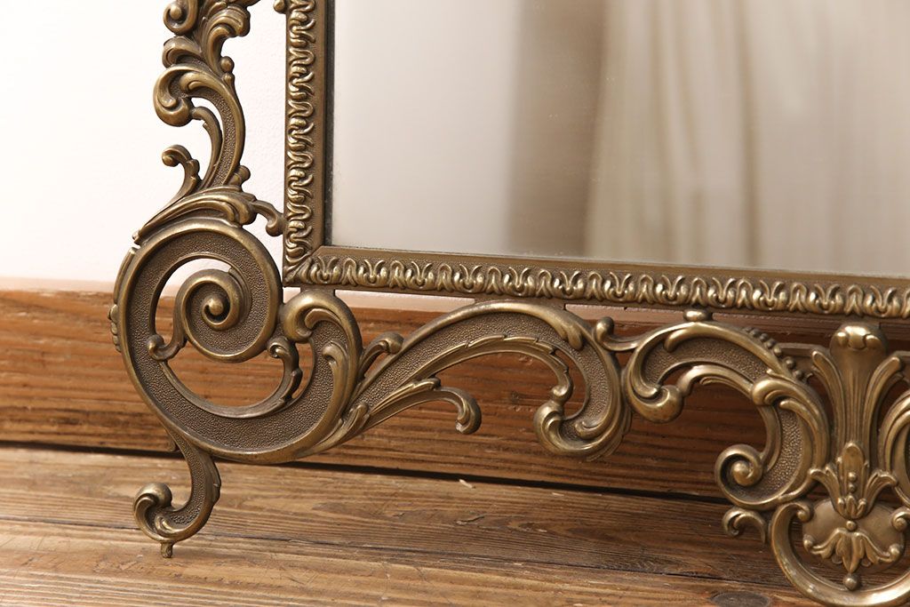 ヴィンテージ雑貨 イタリアビンテージ 最高級!繊細な装飾がエレガントな雰囲気を醸しだす真鍮製のウォールミラー(壁掛け鏡)(R-051480)