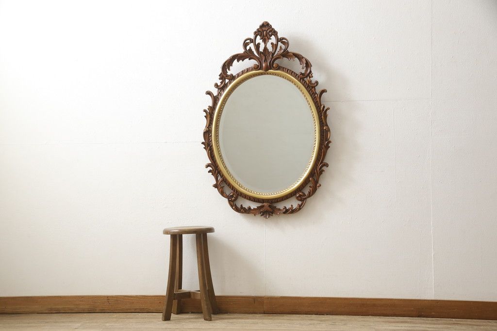鏡 > 中古 美品 イタリア輸入家具 透かし彫りが素晴らしい!美術品のようなウォールミラー(壁掛け鏡)(R-051484)