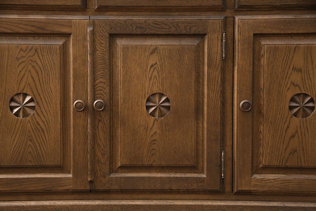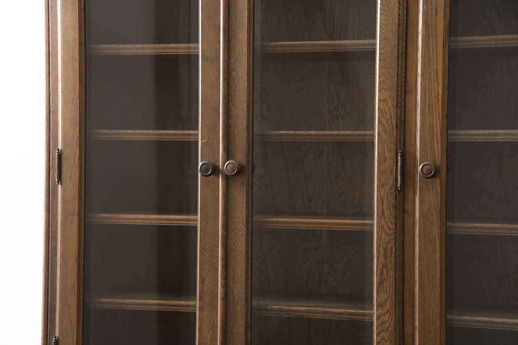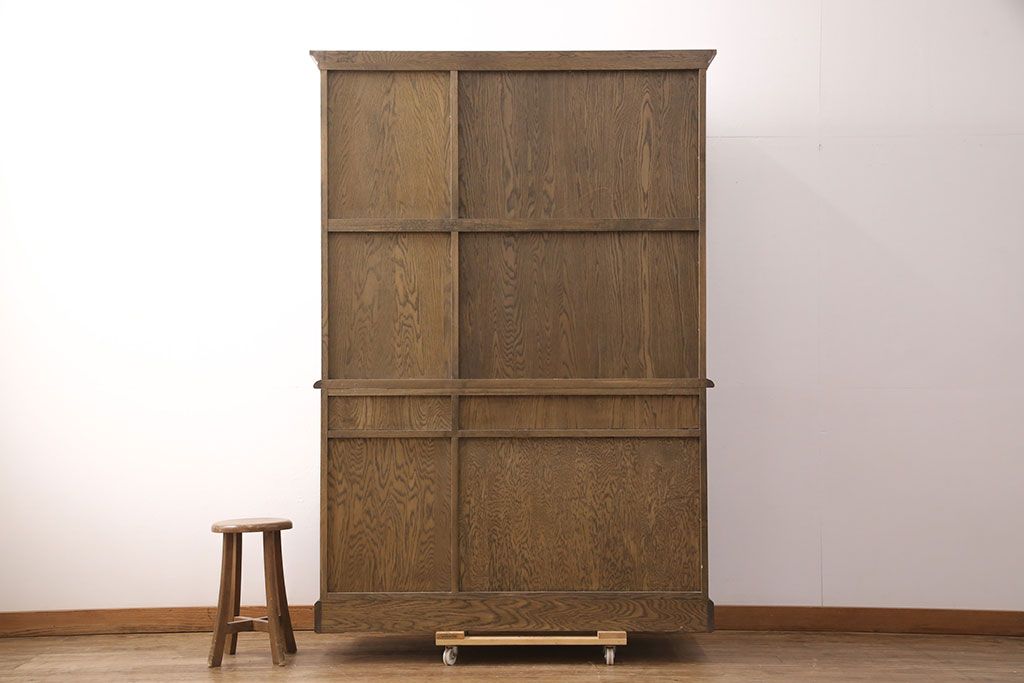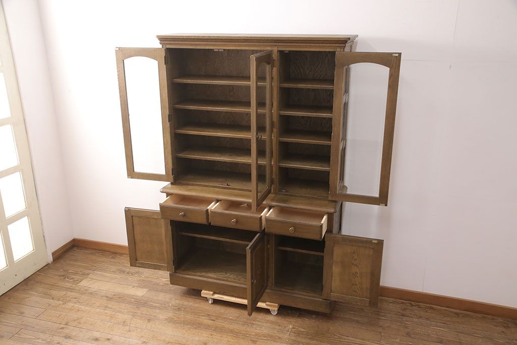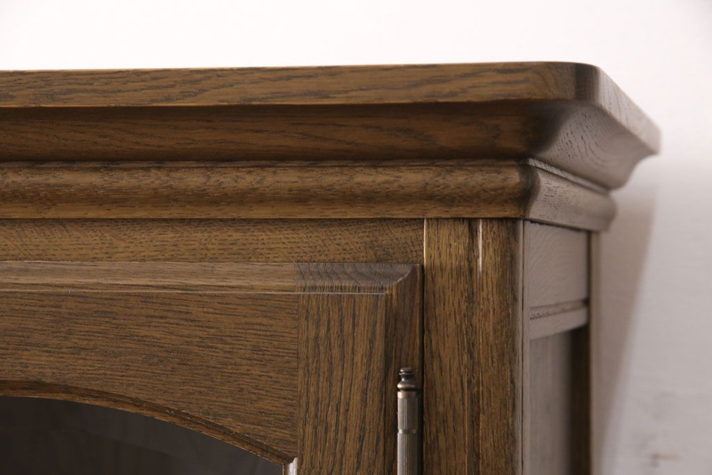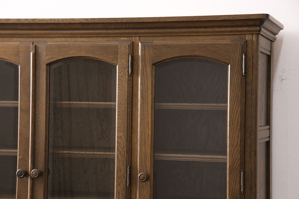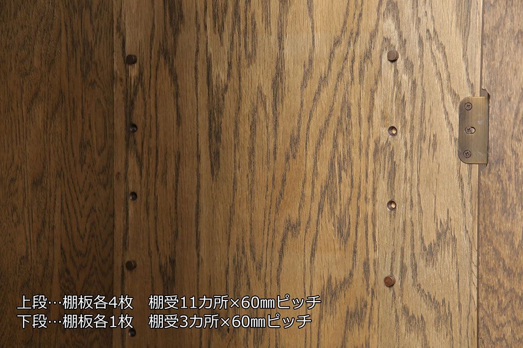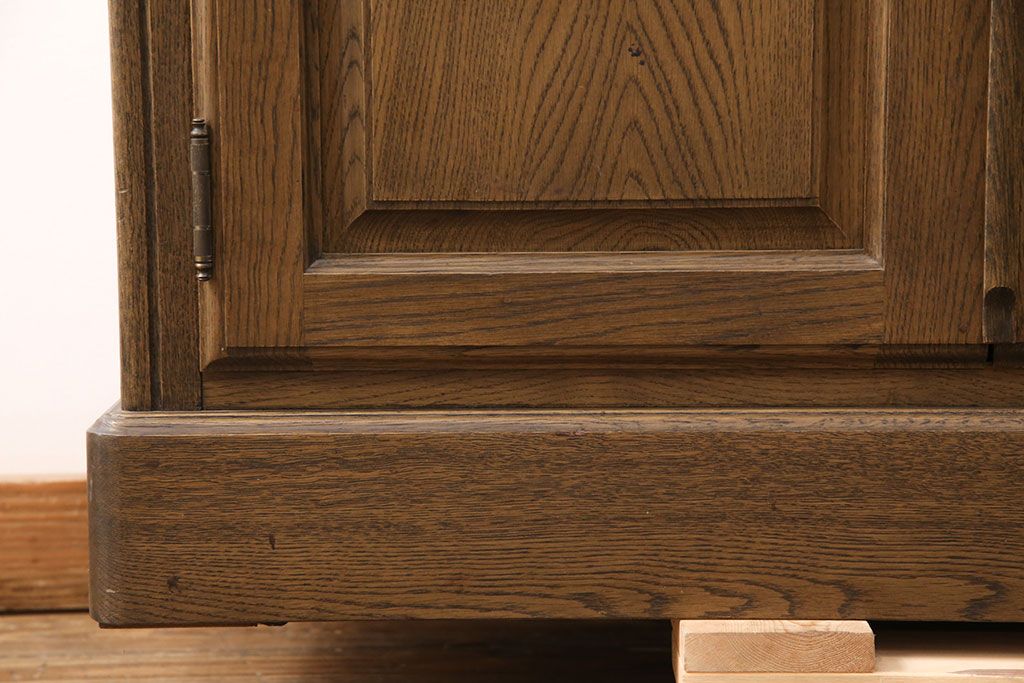 中古 美品 北海道旭川家具 和光 オークハウスシリーズ 絶版品!扉の装飾が目を惹くオーク材製のキャビネット(食器棚、収納棚、陳列棚、カップボード)(R-051446)